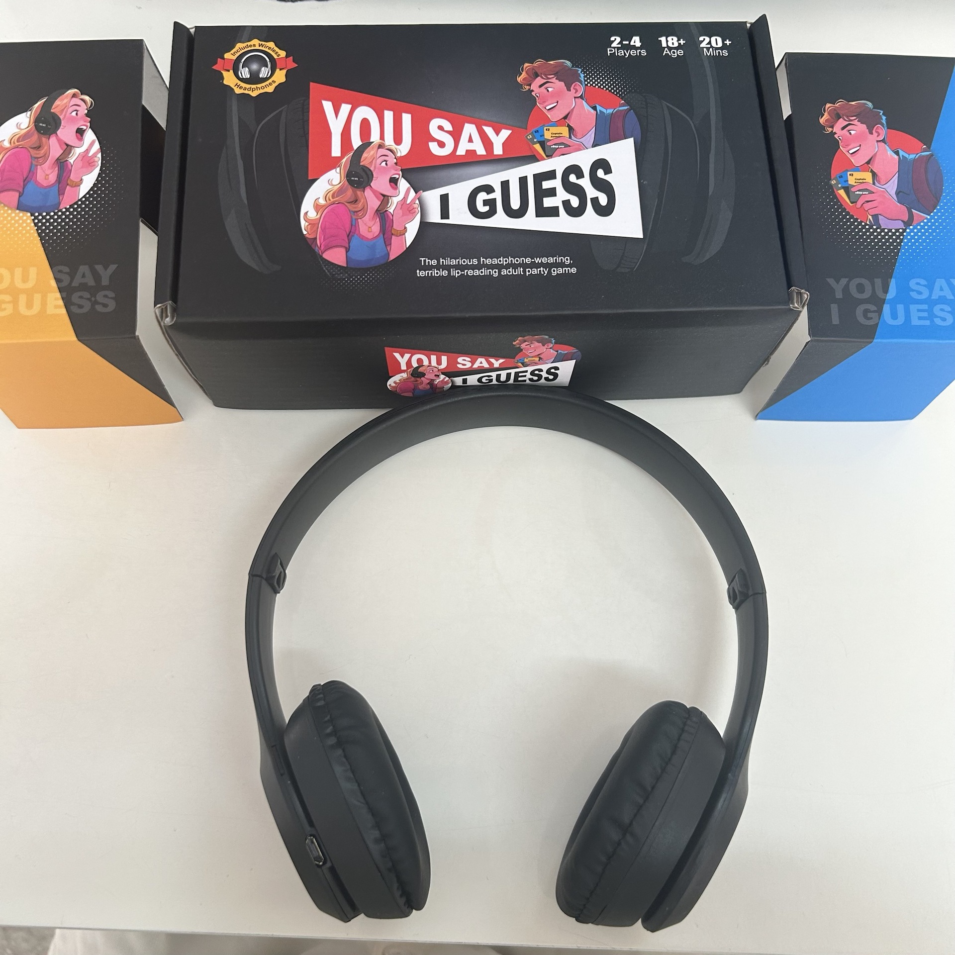 Nuevo producto de Amazon, dice que supongo, auriculares, fiesta de mesa, desafío de tarjetas, Tume, juegos interactivos de puzzle, juguetes