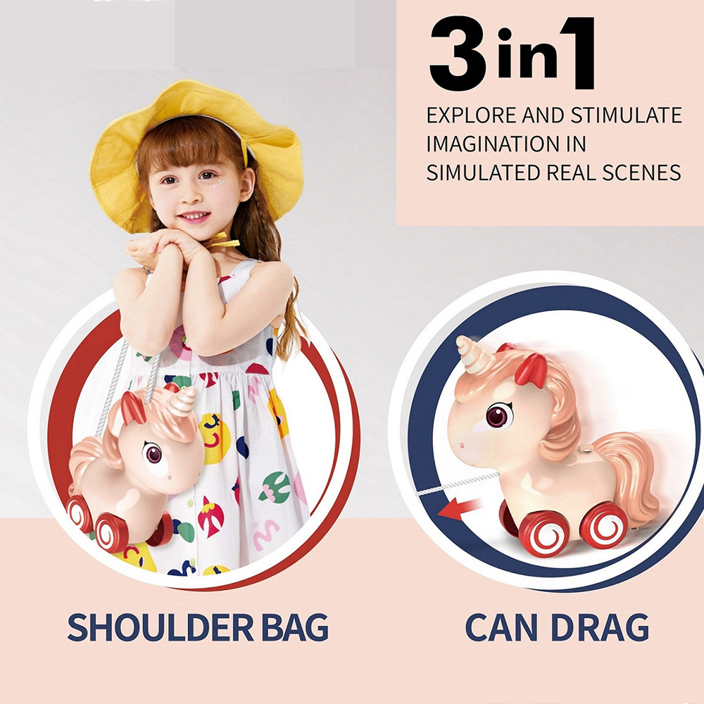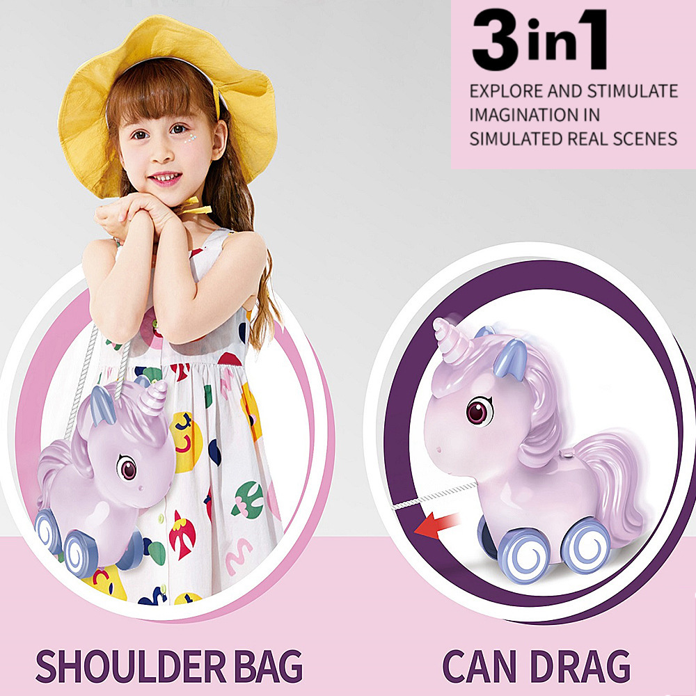 Fábrica personalizada para el juego de simulación pony de dibujos animados unicornio espalda hombro juguetes interactivos multifuncionales