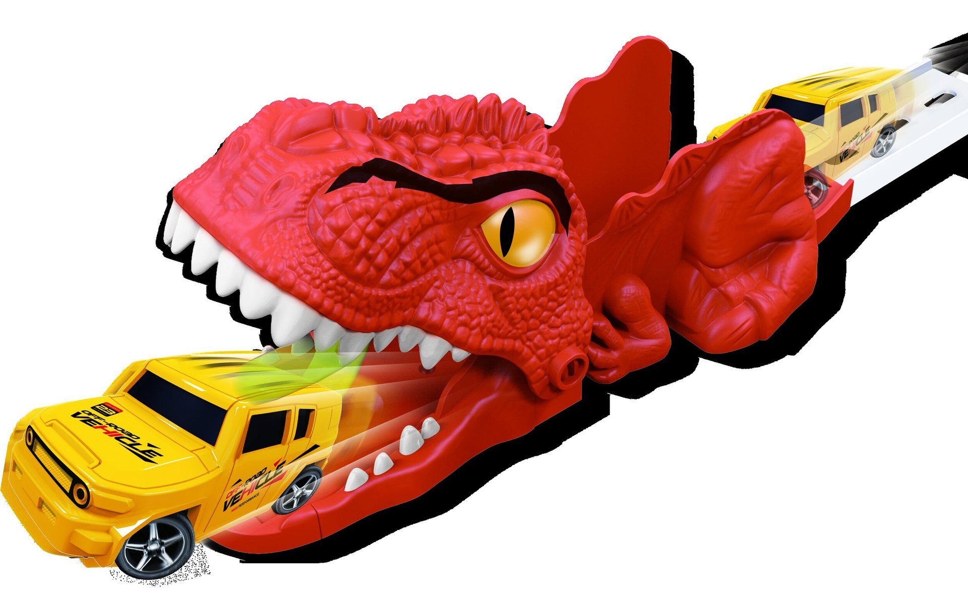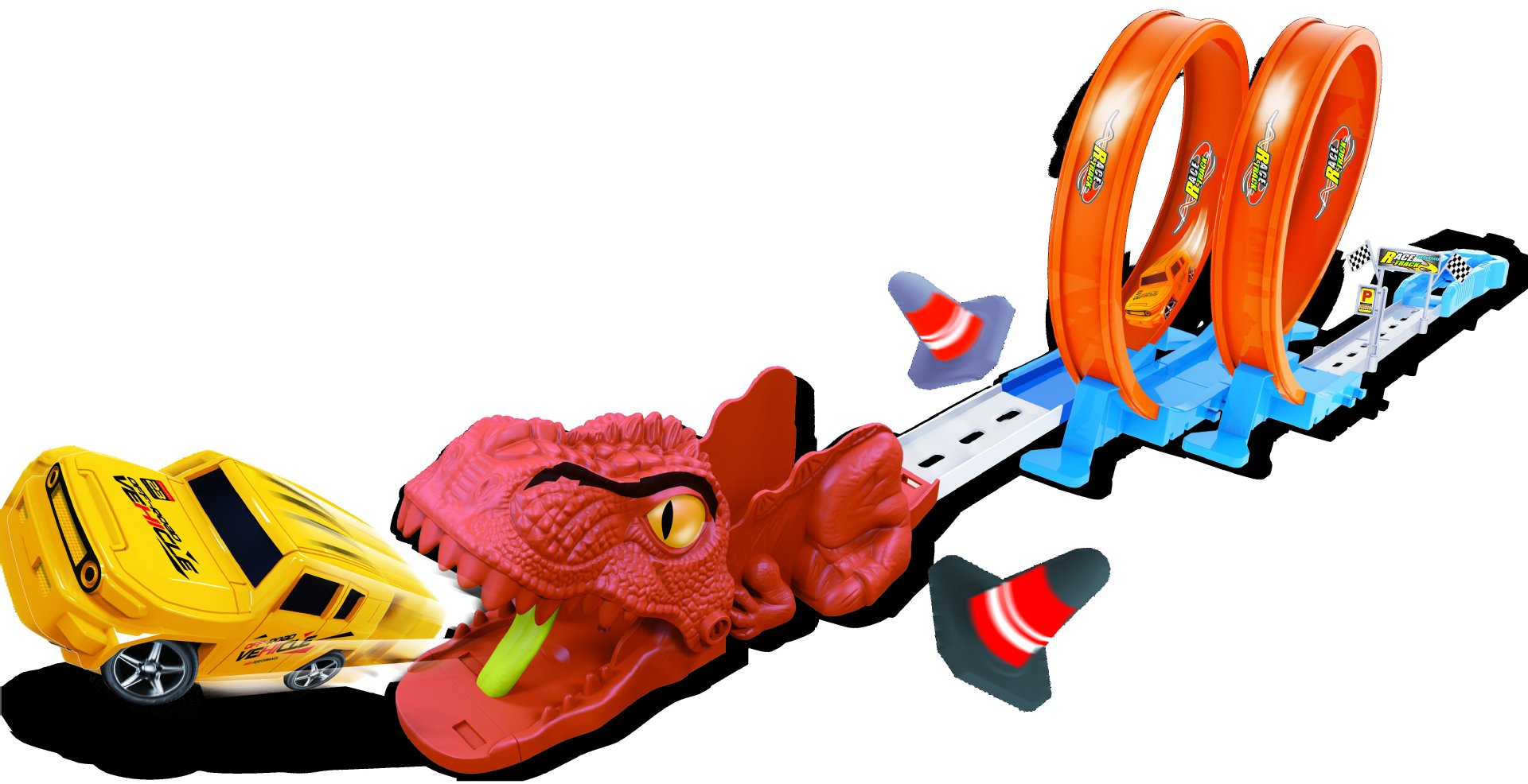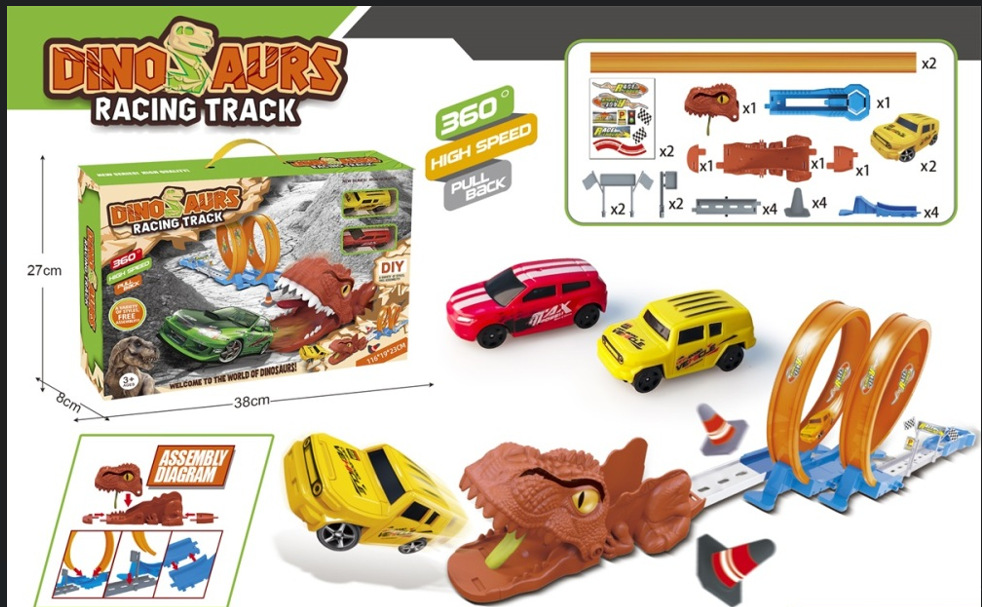 Coches de aleación transfronterizos dinosaurios empalmados coche de carreras Temu volcado montaña rusa coche de catapulta coche juguete coche elástico
