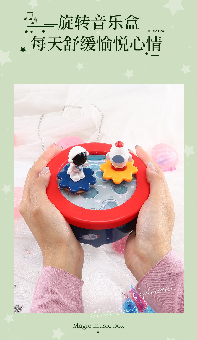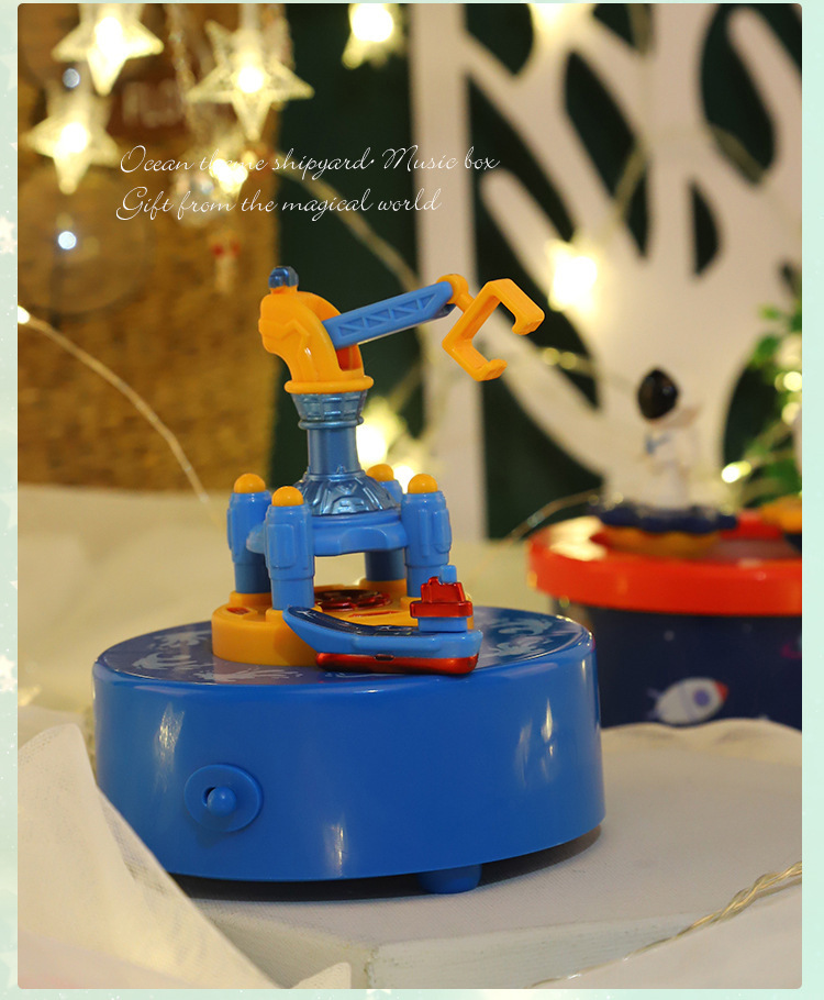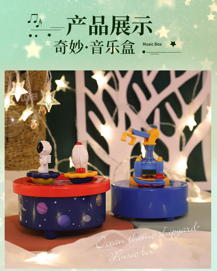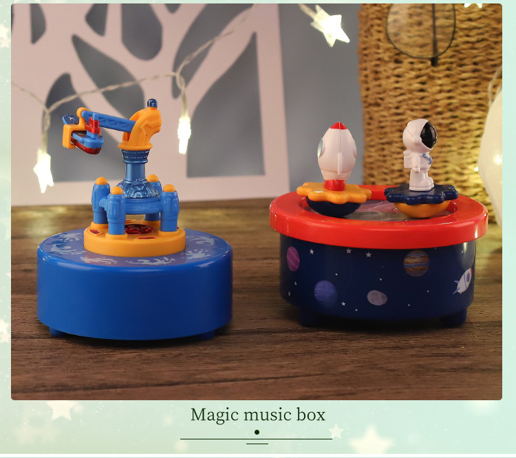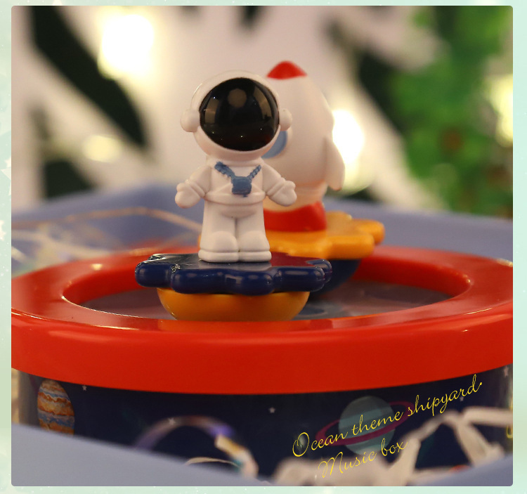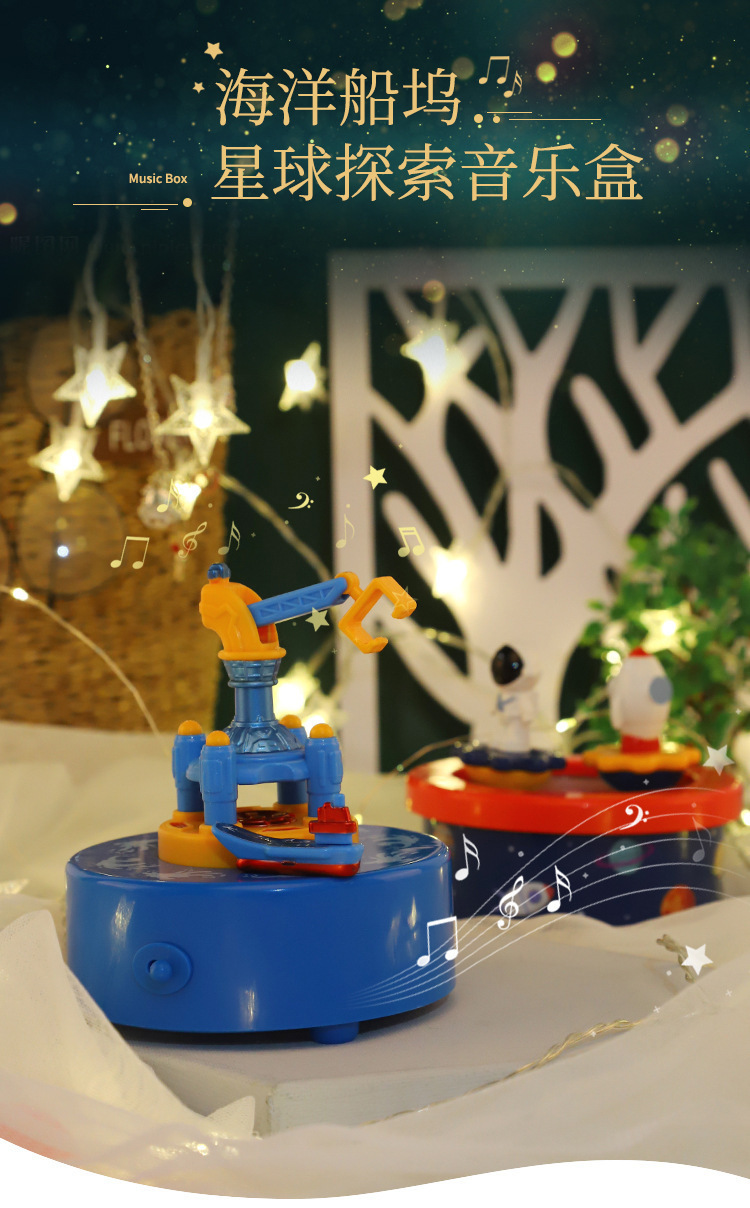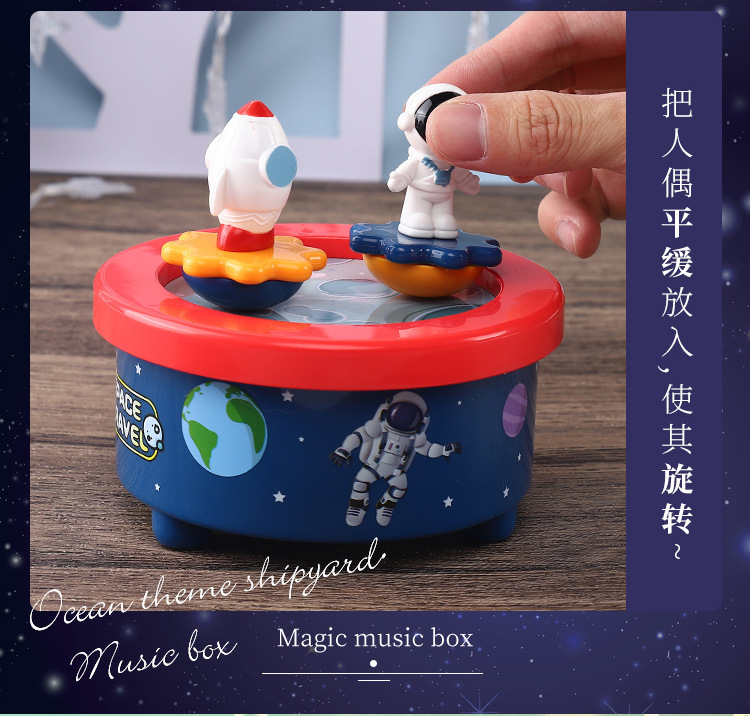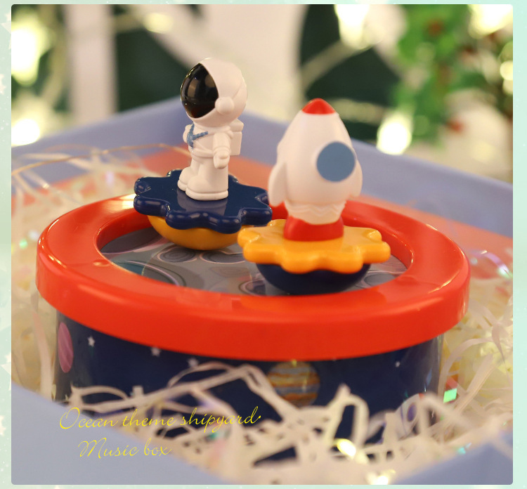 Base naval de dibujos animados amazonos niños caja de música pianos astronautas girando planetas explorando cajas de octeto