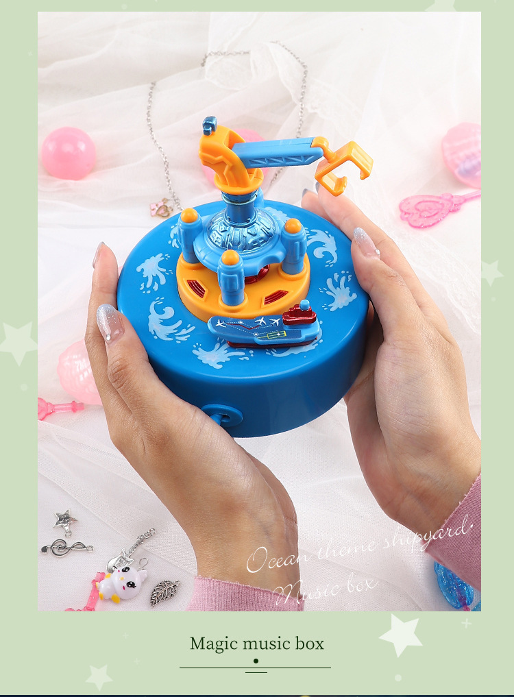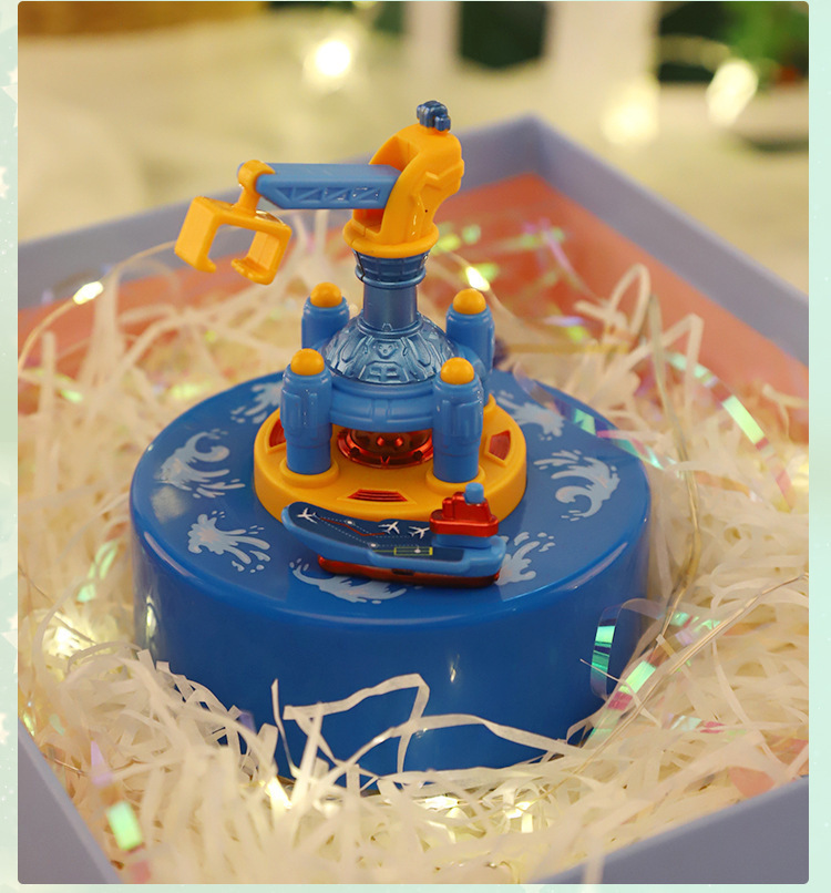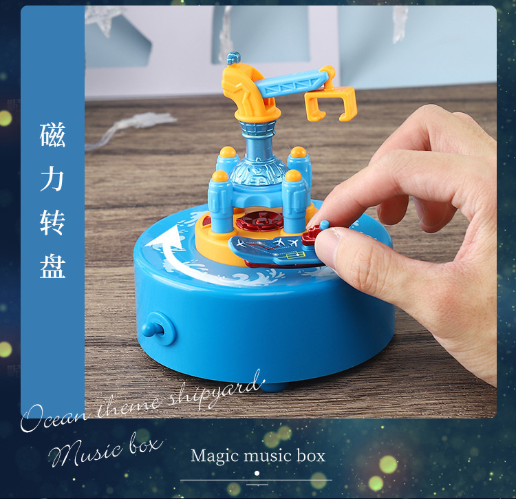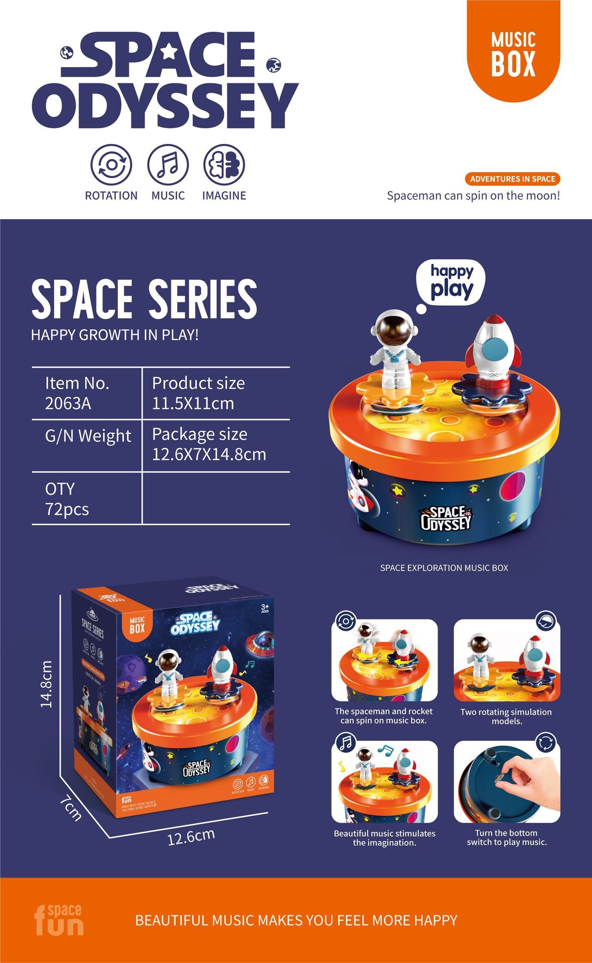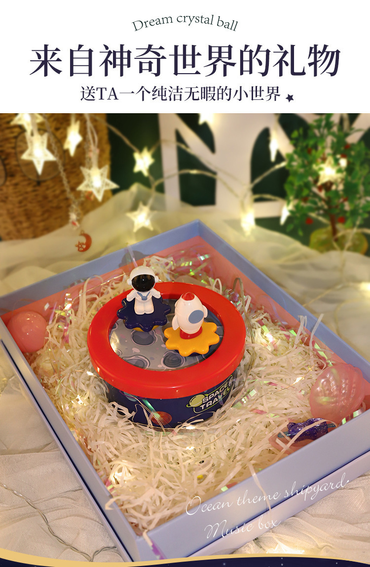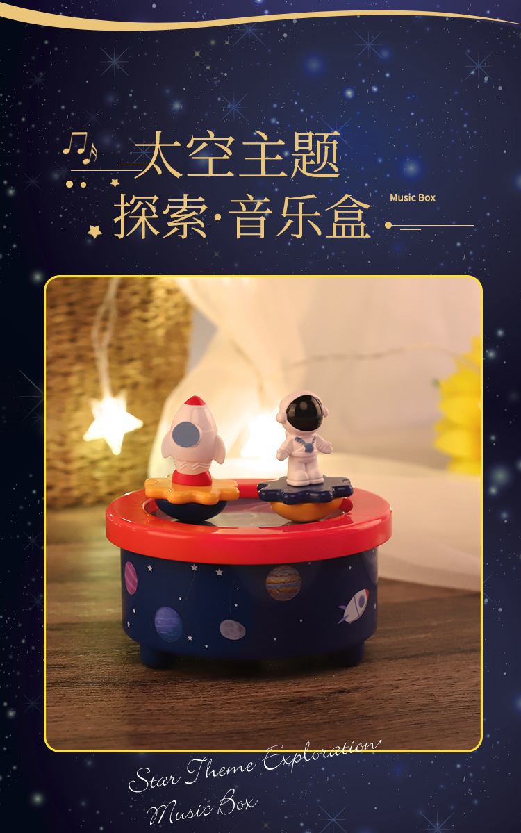 Base naval de dibujos animados amazonos niños caja de música pianos astronautas girando planetas explorando cajas de octeto