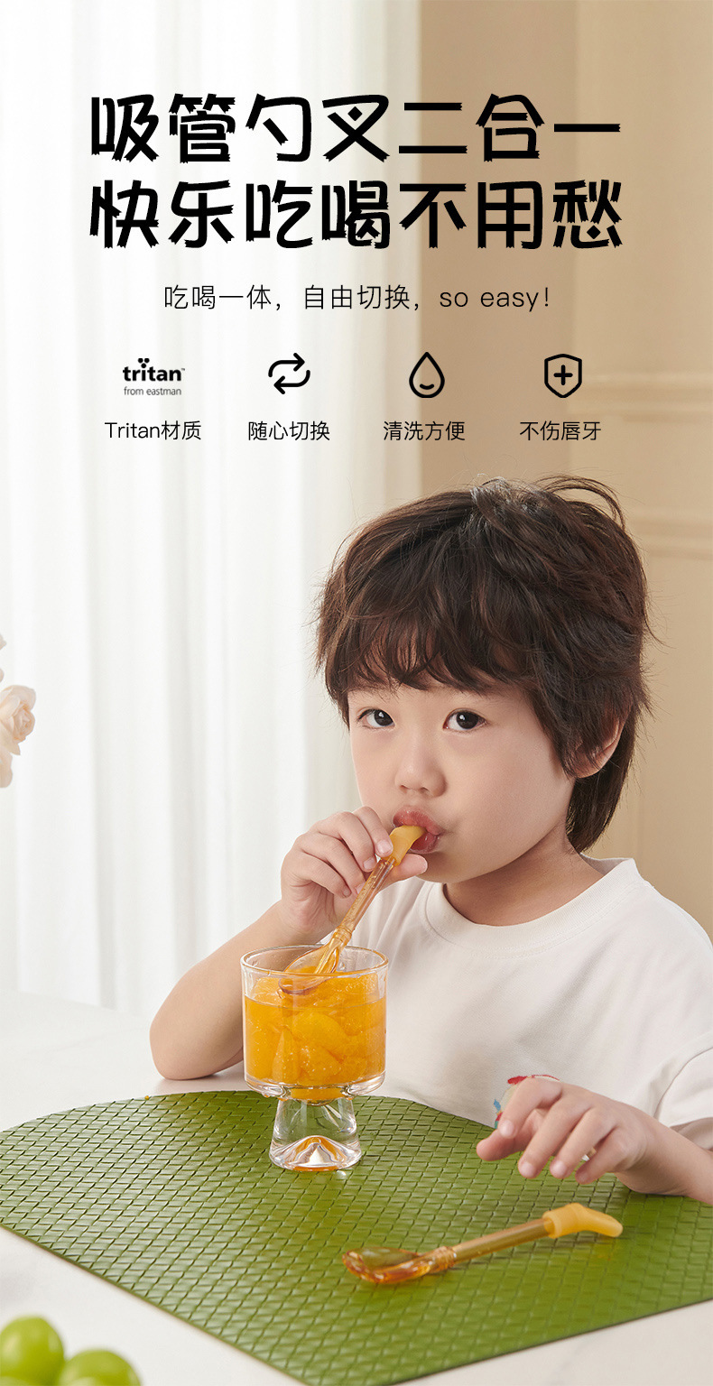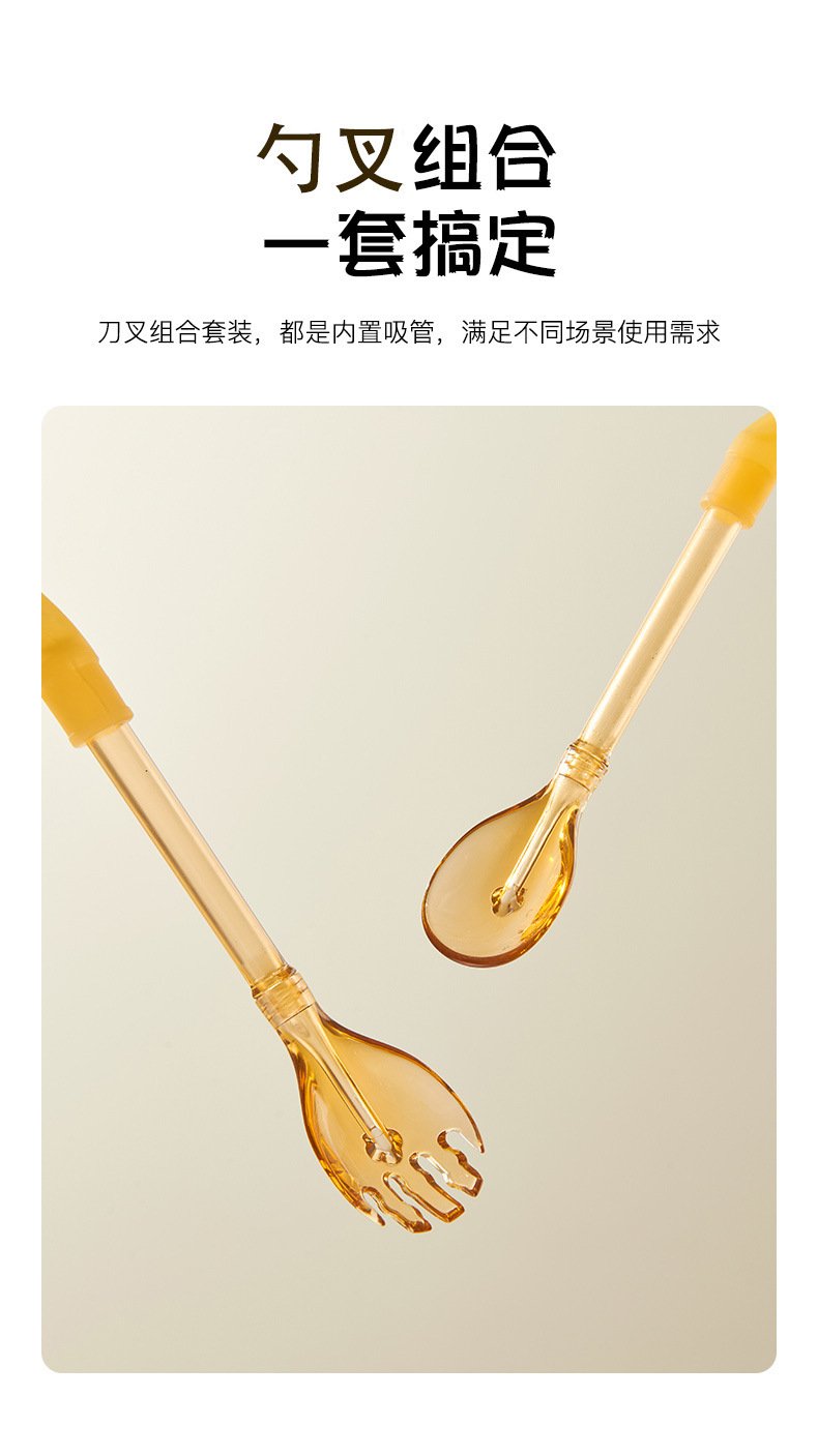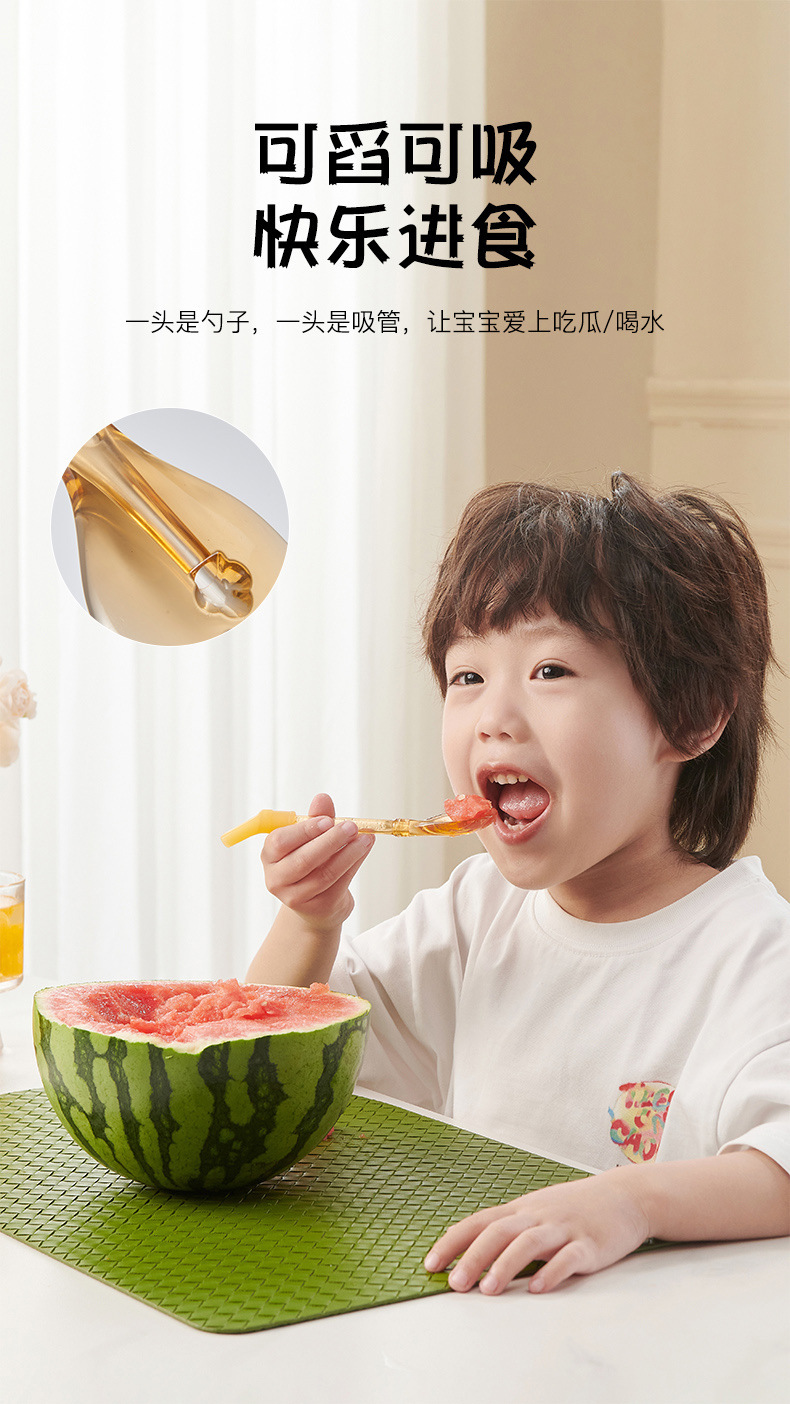 cubiertos para bebés cucharas de paja de mango largo 2 - en - 1 cucharas de paja de sopa para niños que comen por sí mismos