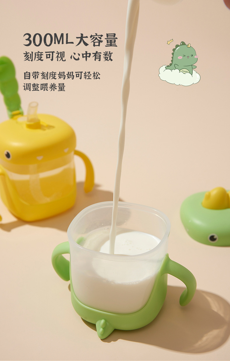 Taza de leche para niños con escalas de paja Taza de agua resistente a caídas Taza de plástico doméstica para bebés