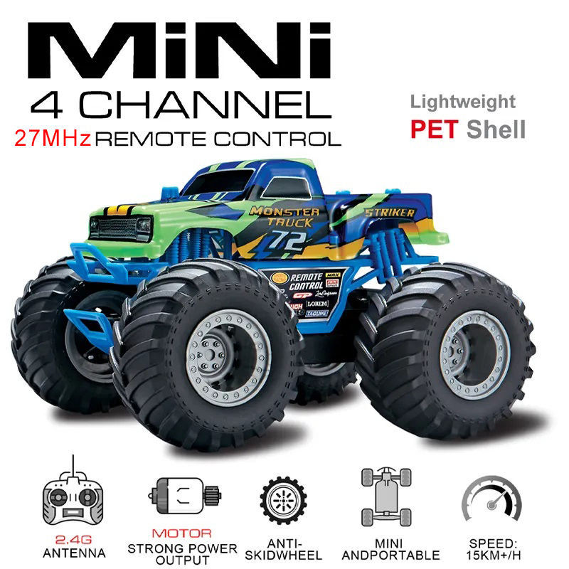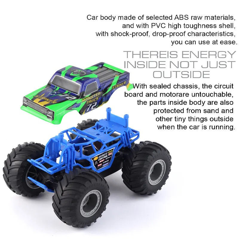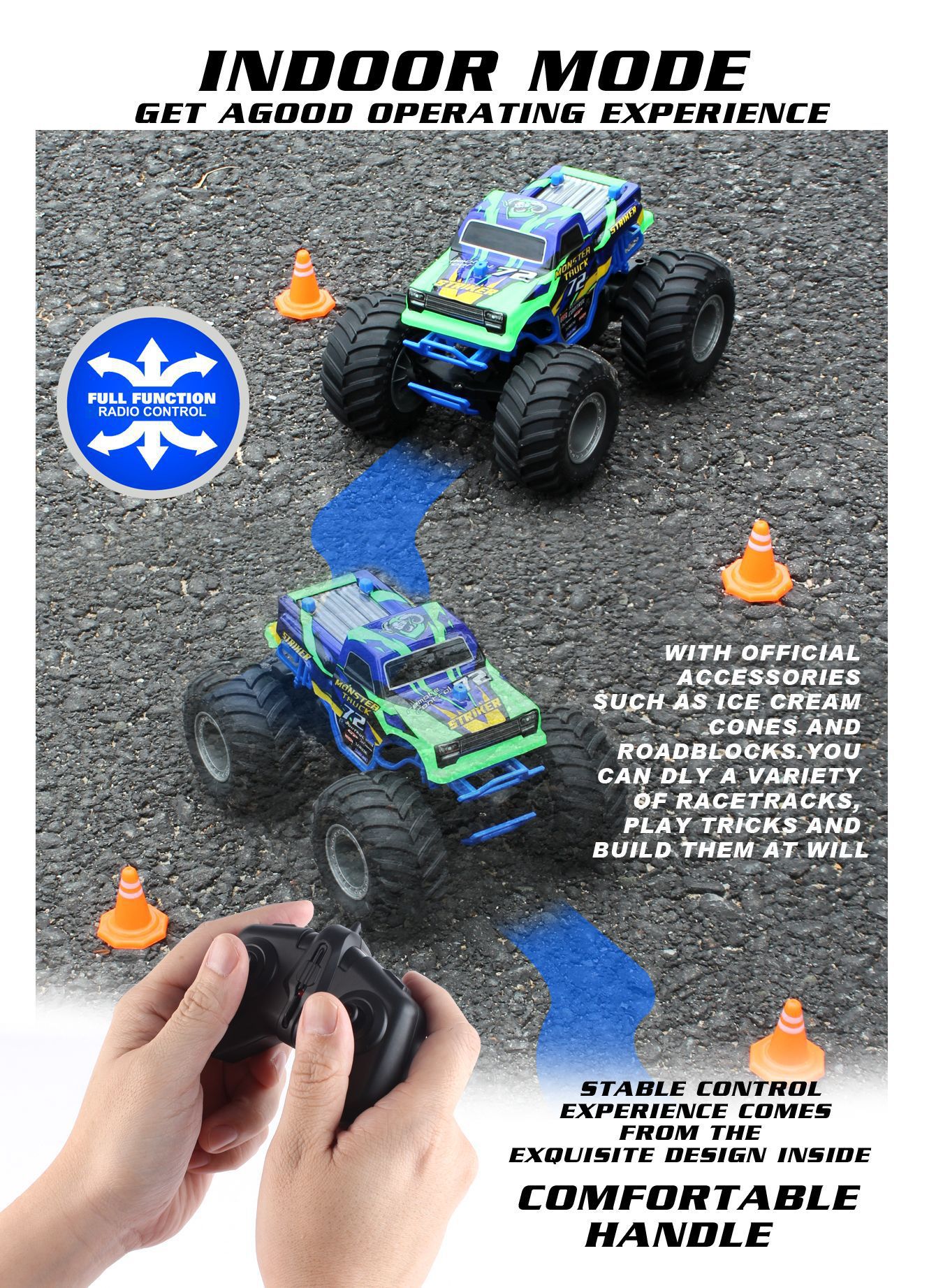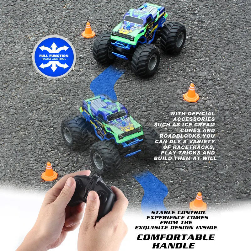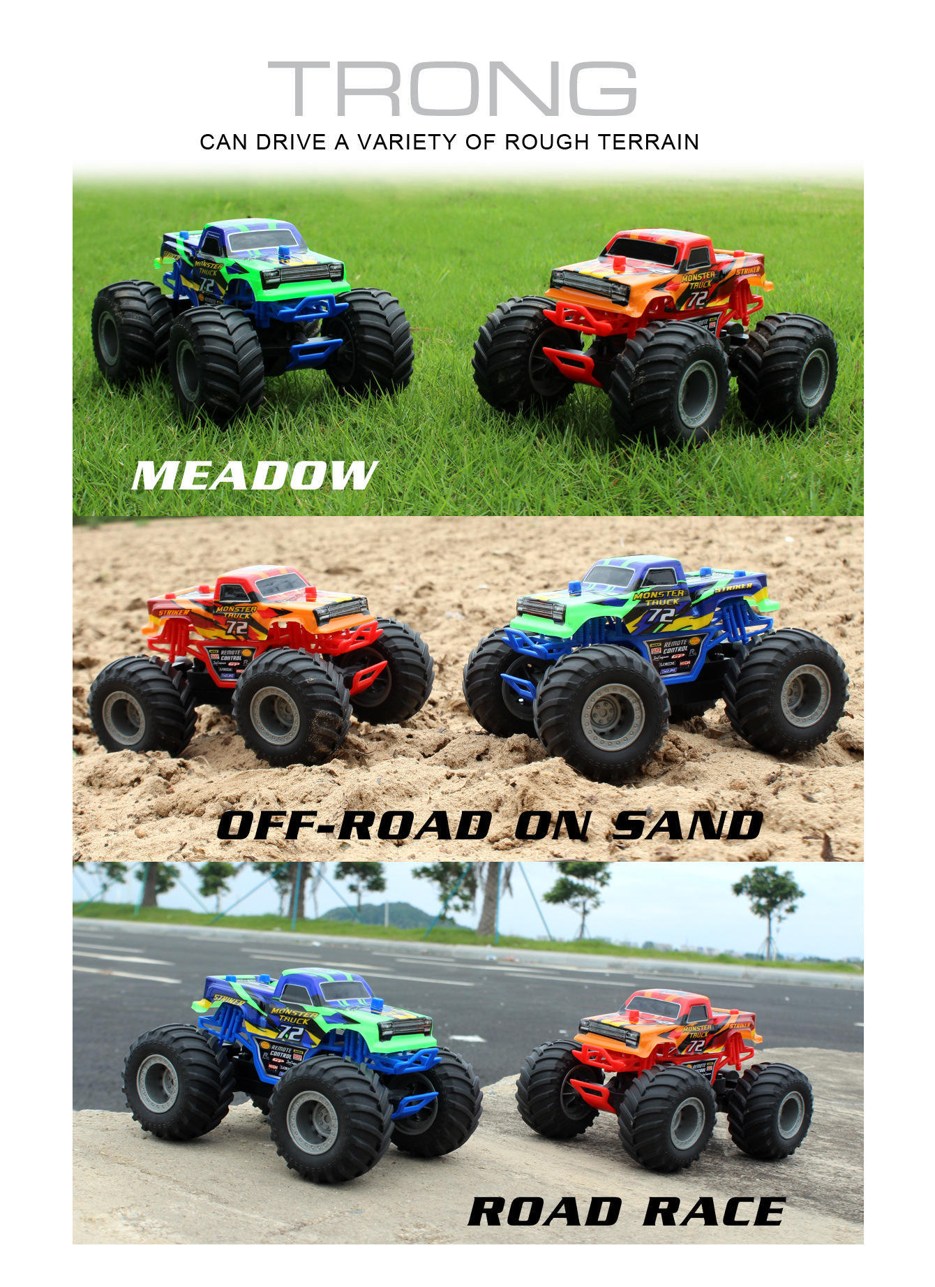 Transfronterizo 1: 28 cuatro vehículos controlados remotamente cuatro ruedas amortiguadores Bigfoot vehículo todoterreno modelo eléctrico para niños coche de carreras