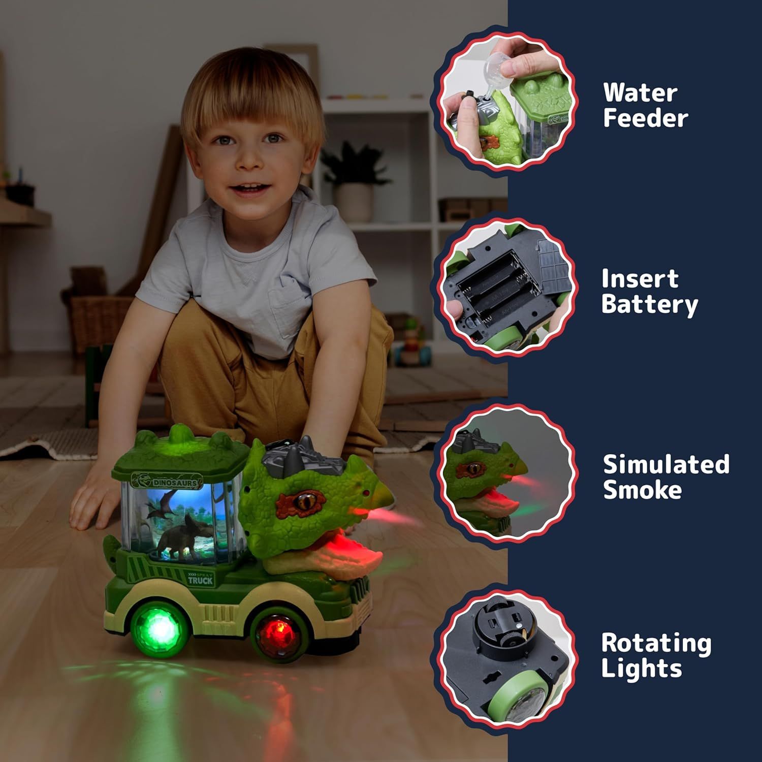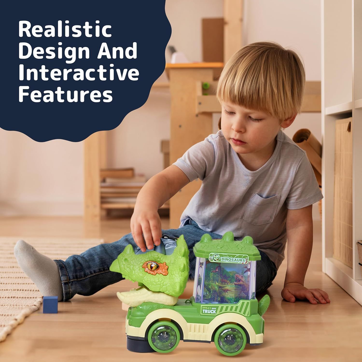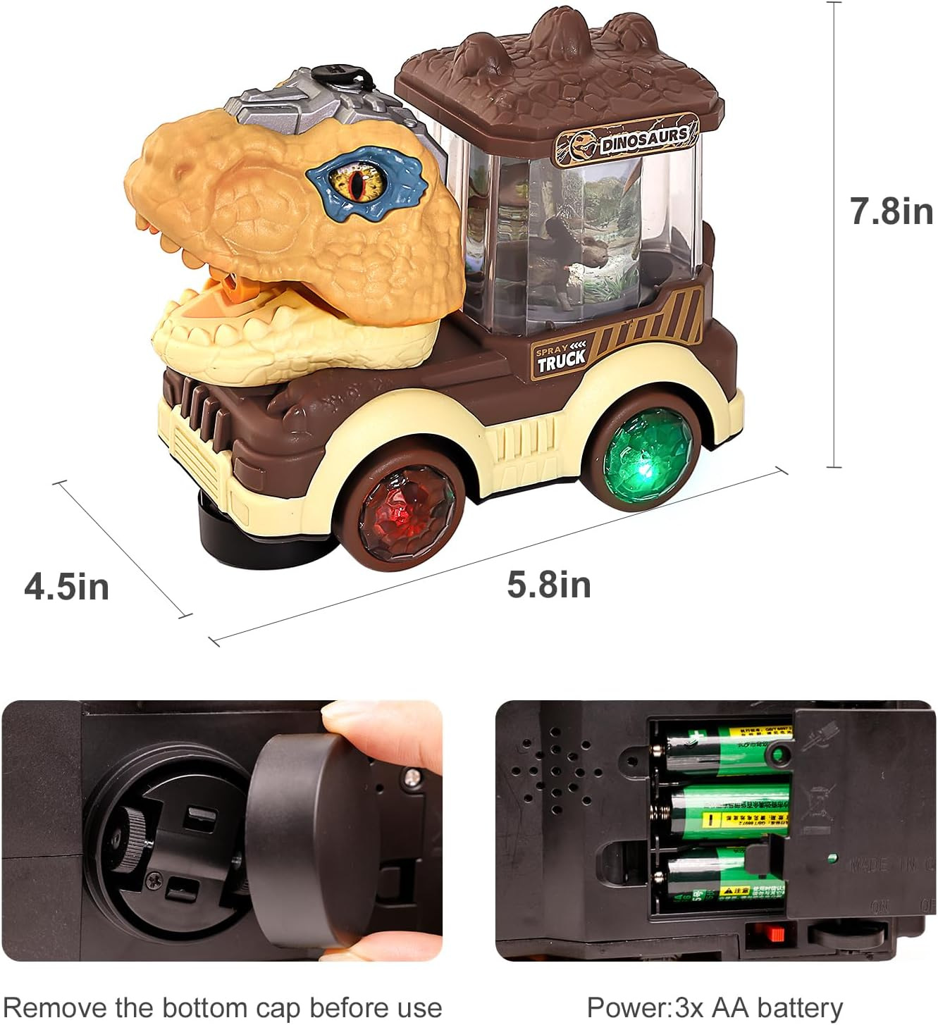 Transfronterizo de dibujos animados para niños coche eléctrico universal spray dinosaurio coche de ingeniería Tyrannosaurus Rex juguetes para niños de 3 - 6 años