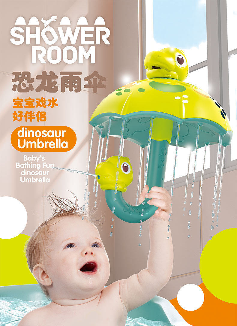 Transfronterizo Amazonas dinosaurio paraguas divertida ducha de agua de Navidad rociador baño girar juguetes de baño interactivo padre-hijo