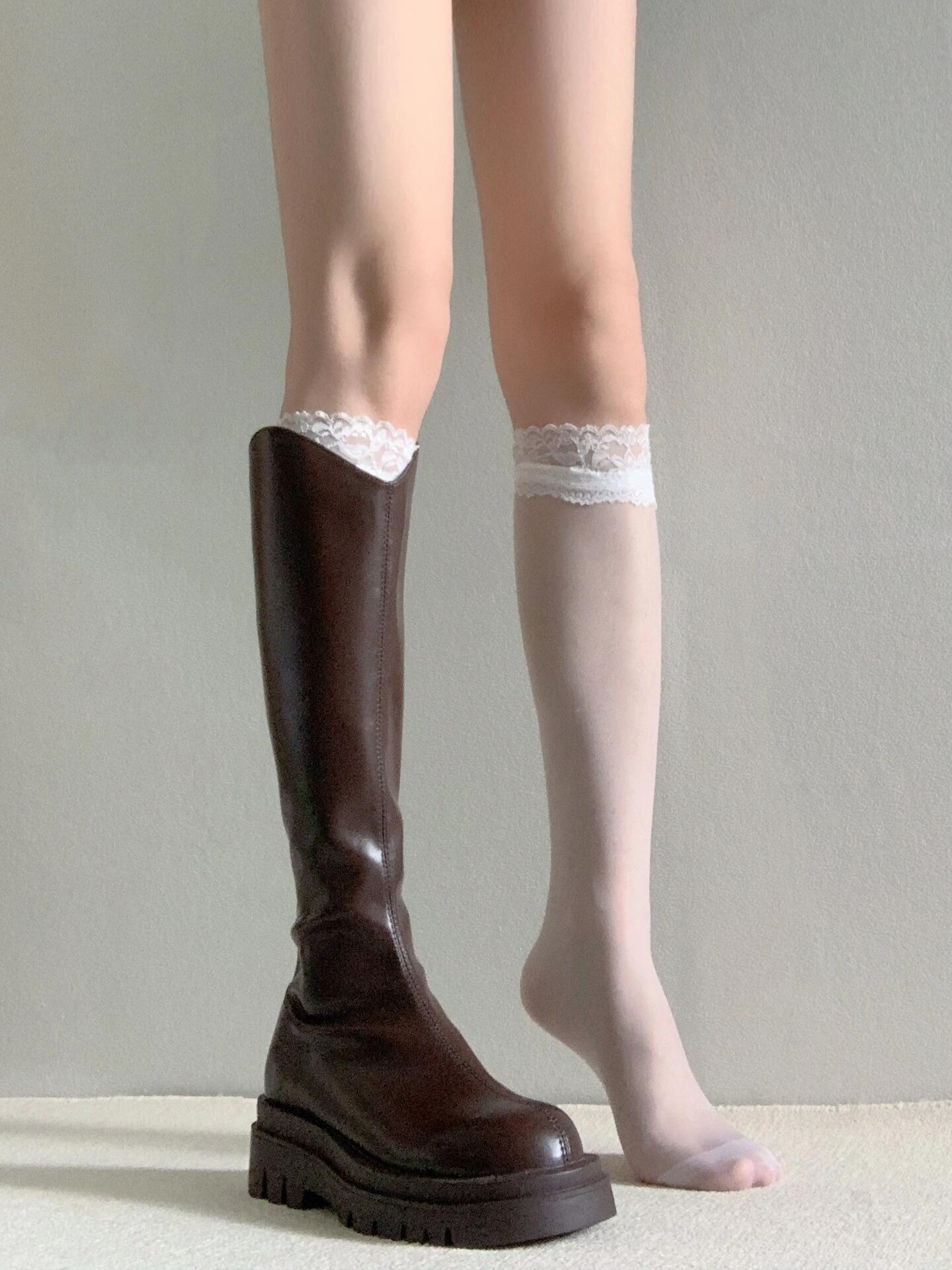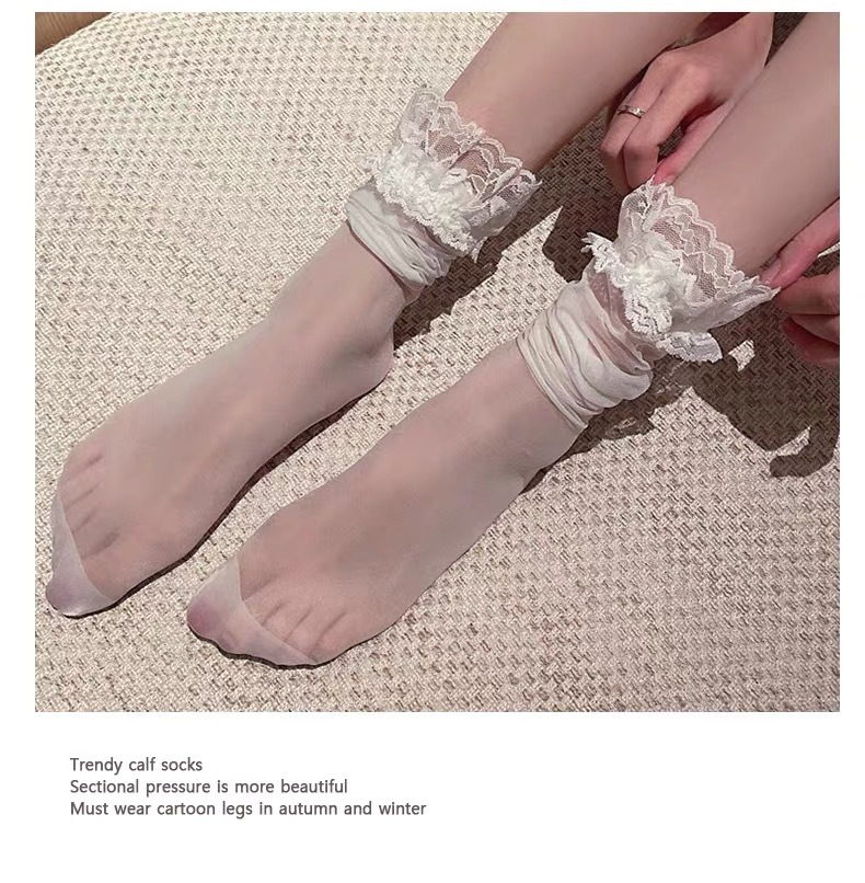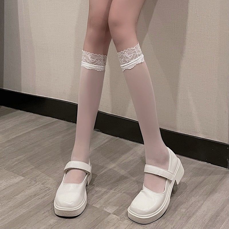 Cordón arco calcetines de pantorrilla mujer verano blanco dulce jk niñas rodillas medias medias pilas Lolita