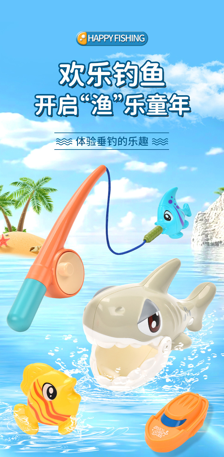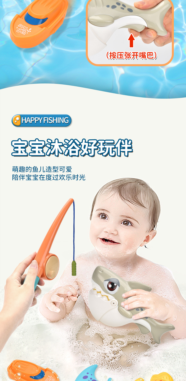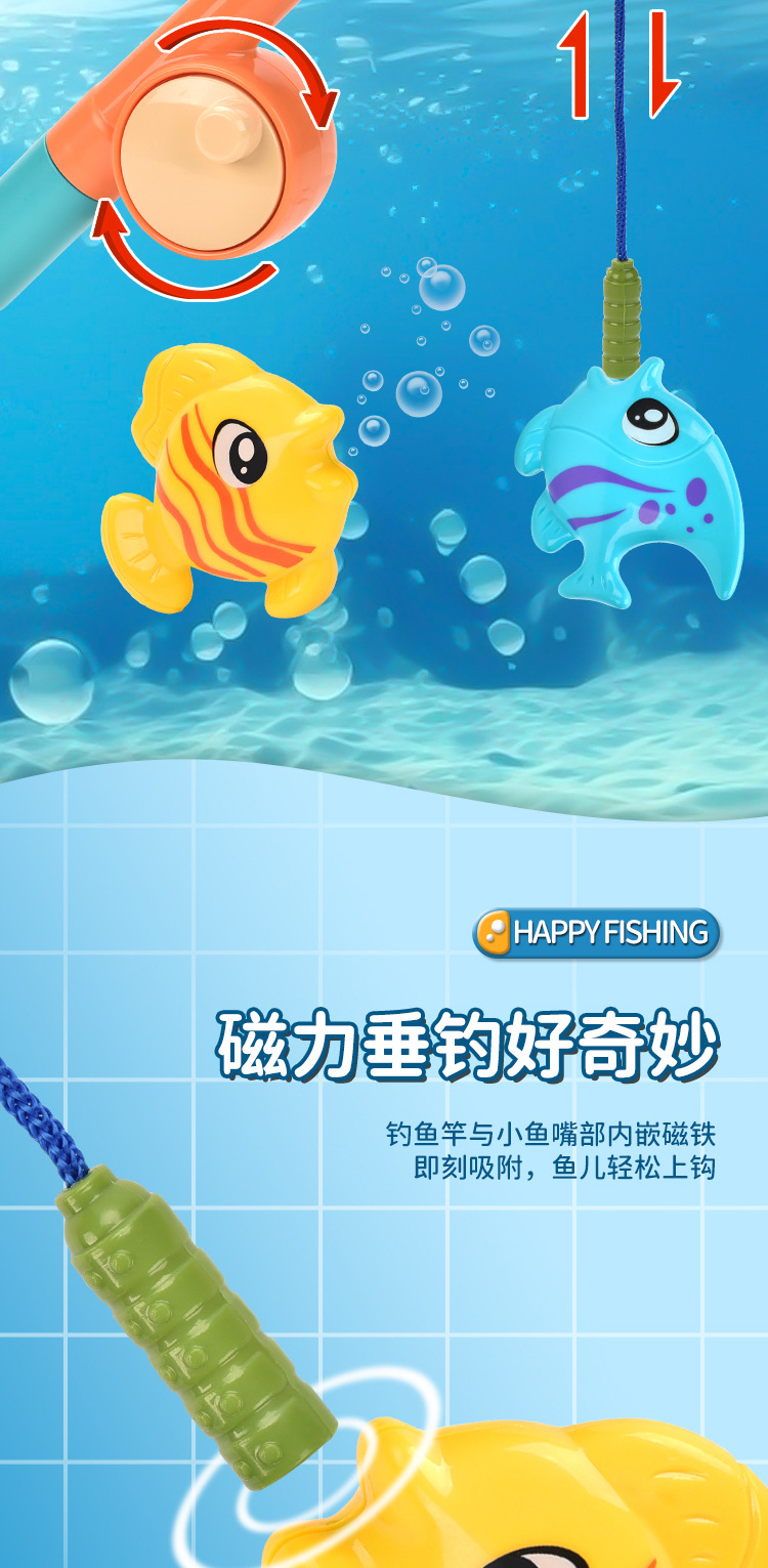 Juguetes de caña de pesca alegre de Amazon simulación transfronteriza caña de pesca infantil de 1 - 3 años de baño juguetes de agua