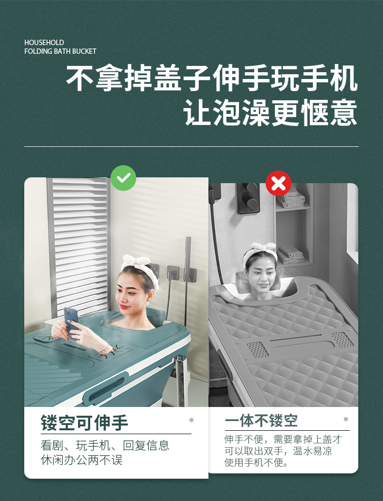 Cubo de baño plegable adulto baño cubo hogar cubo baño espesado cuerpo completo de plástico adulto bañera grande bañera