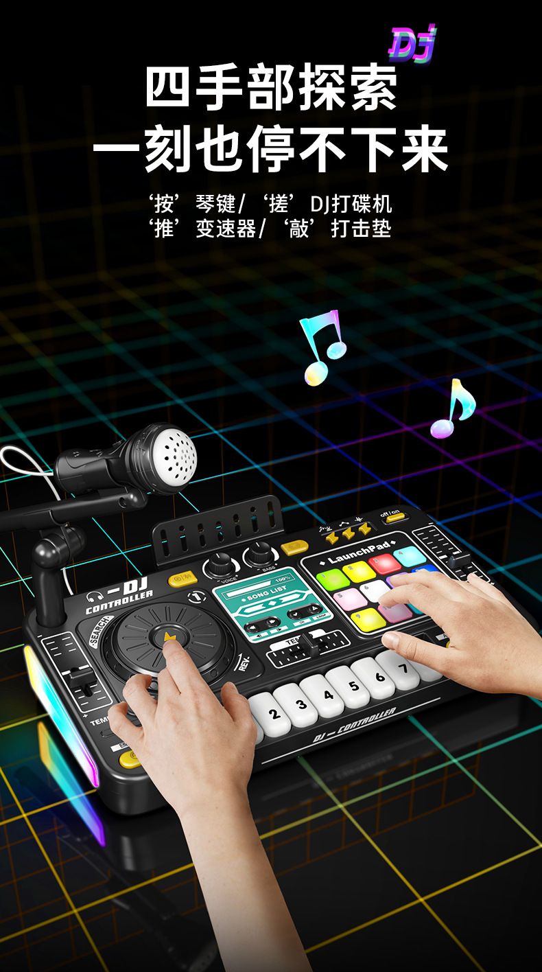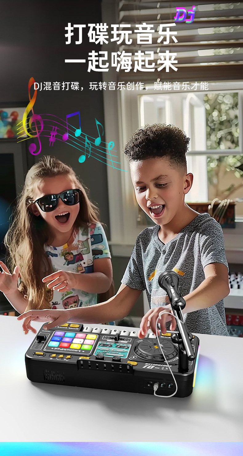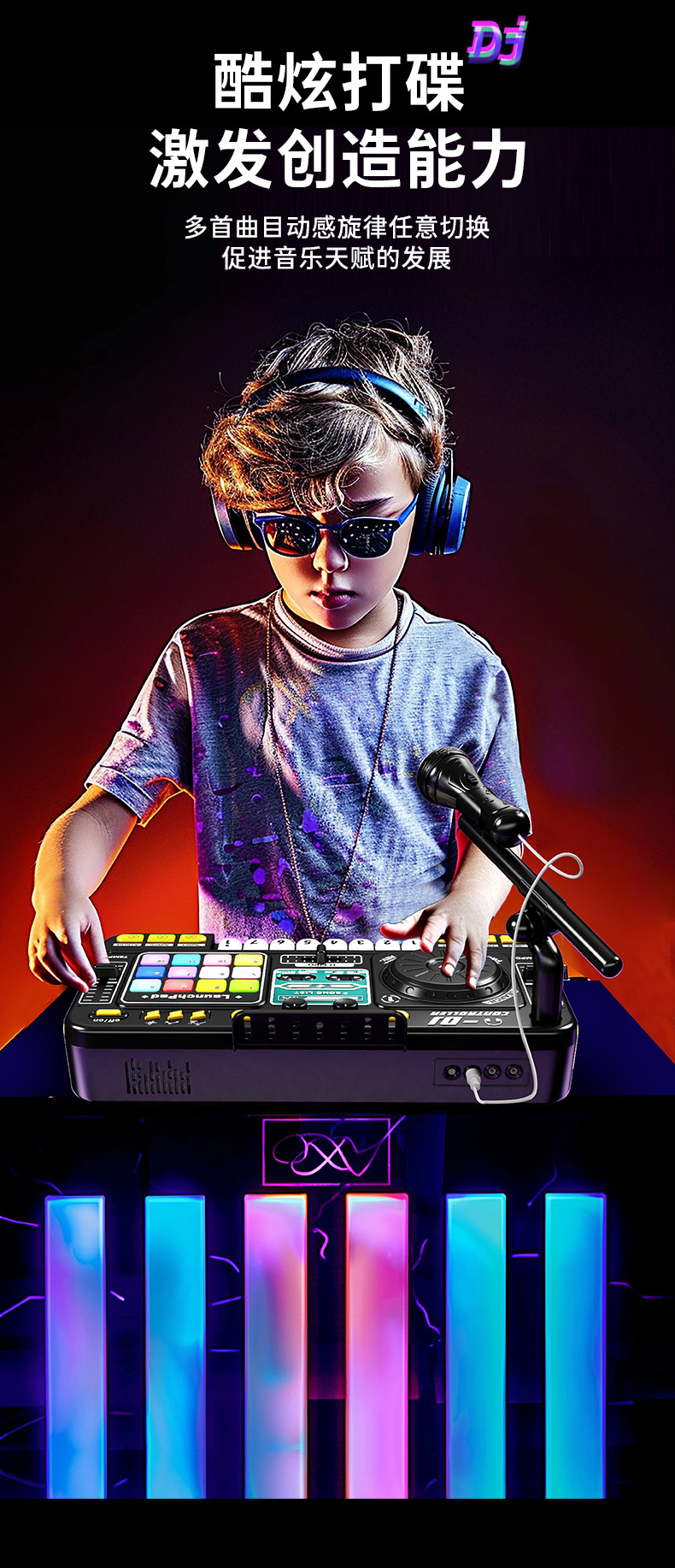 Transfronterizo multifuncional Bluetooth DJ reproductor de discos para niños simulación para principiantes instrumentos musicales juguetes para niños