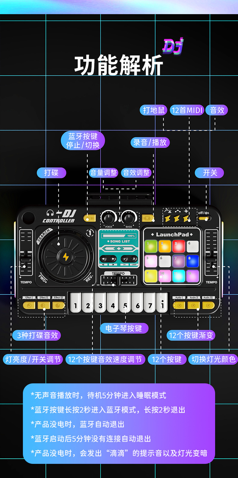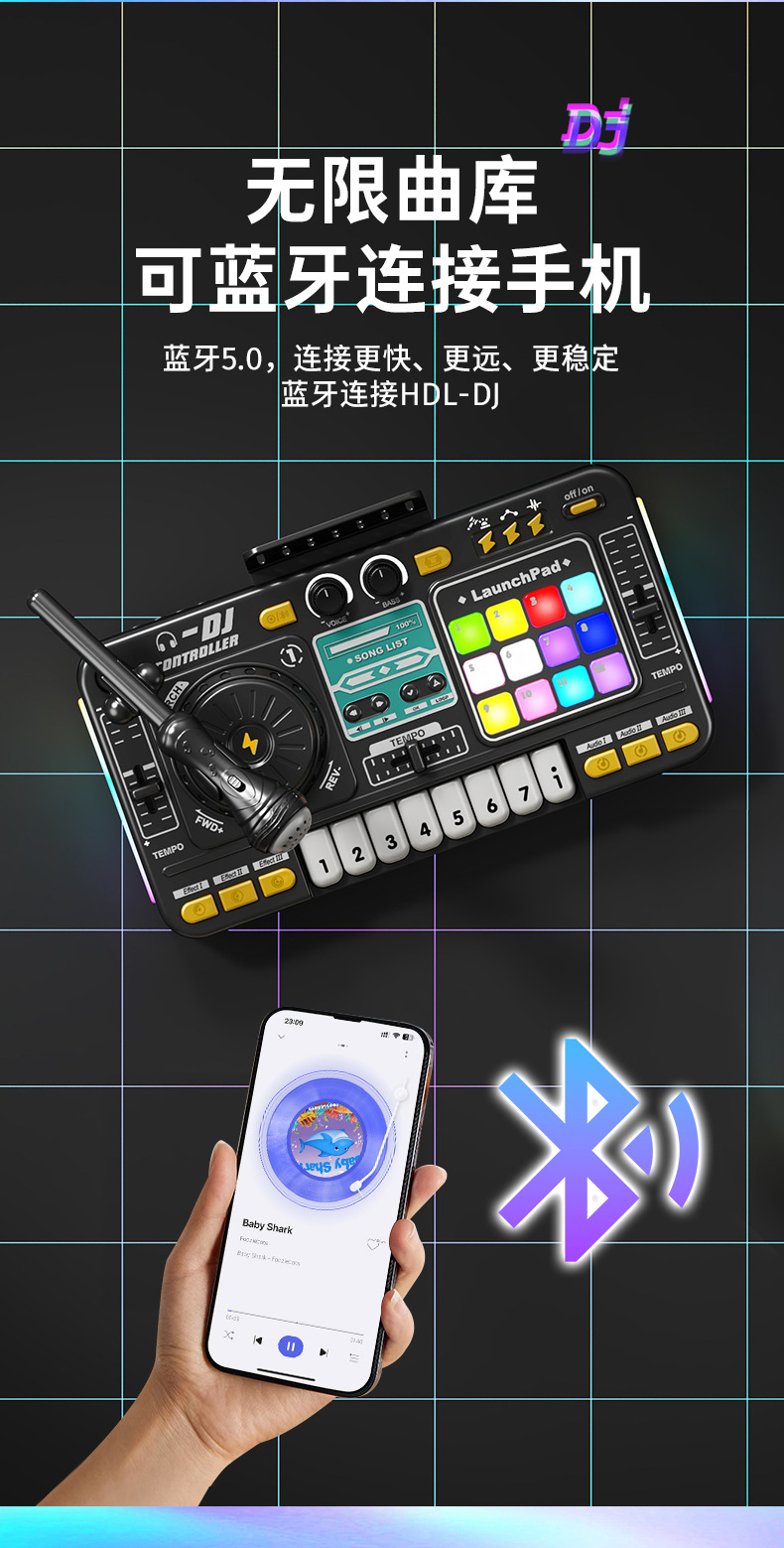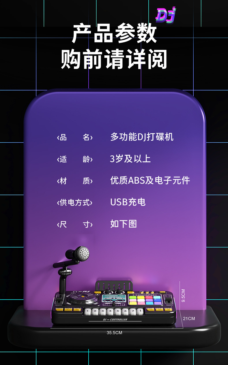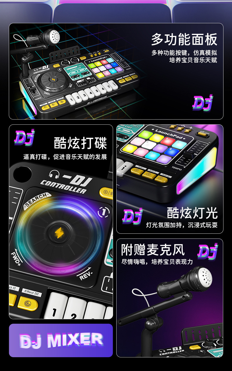 Transfronterizo multifuncional Bluetooth DJ reproductor de discos para niños simulación para principiantes instrumentos musicales juguetes para niños