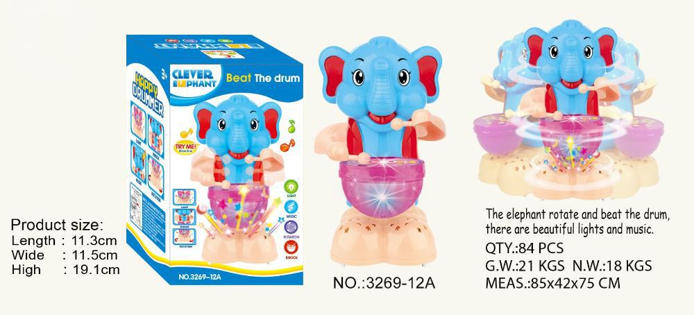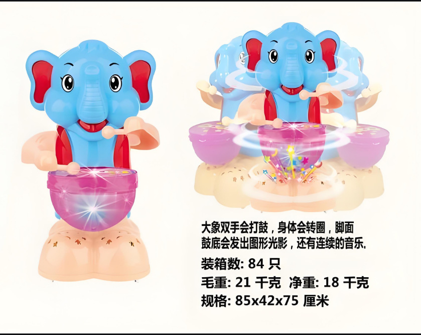 Elefante eléctrico universal tambor juguete Amazon girará luces brillantes juguetes interactivos divertidos para niños