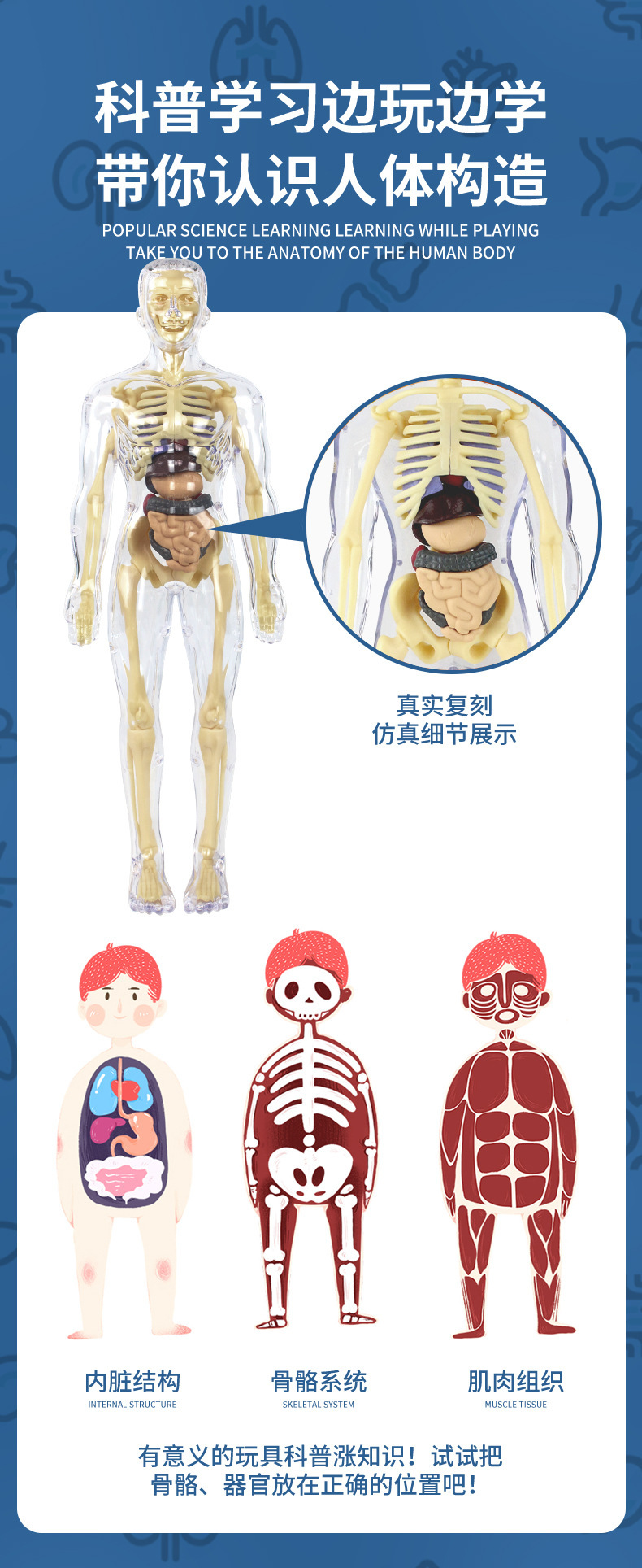 Transfronterizo pequeño modelo de esqueleto humano Amazonas esqueleto de cuerpo completo DIY infantil educación temprana juguetes de maniquí humano