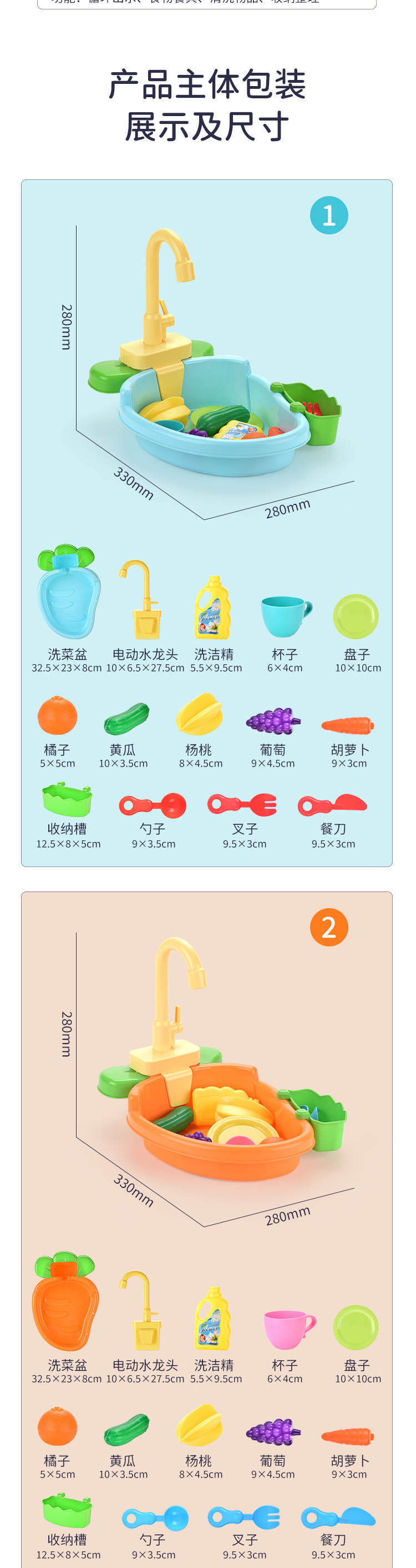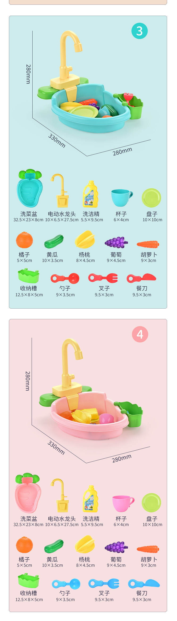 | Color | Fun lavavajillas rosa, Fun lavavajillas azul |
