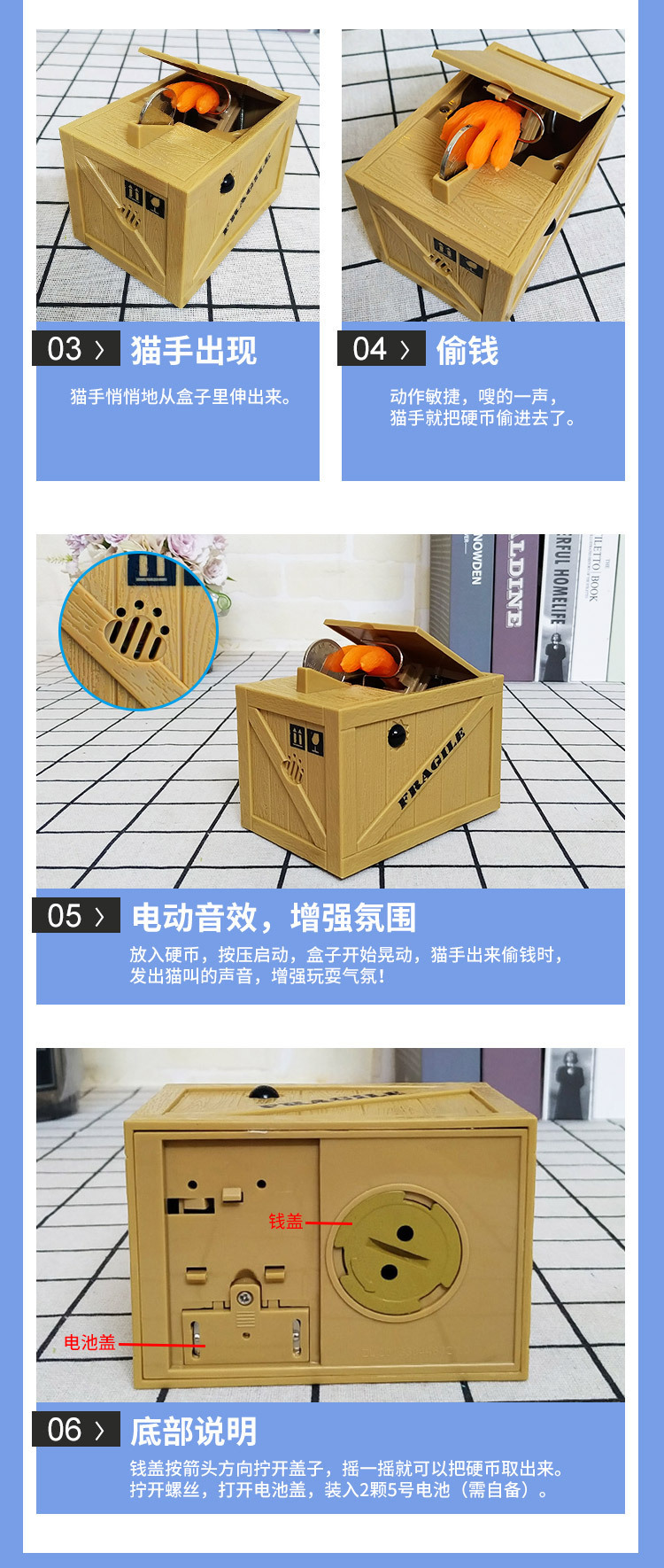 Creativo y extraño para robar dinero garra de gato para niños Walmart regalo infantil dibujos animados adornos para el hogar lata de ahorro