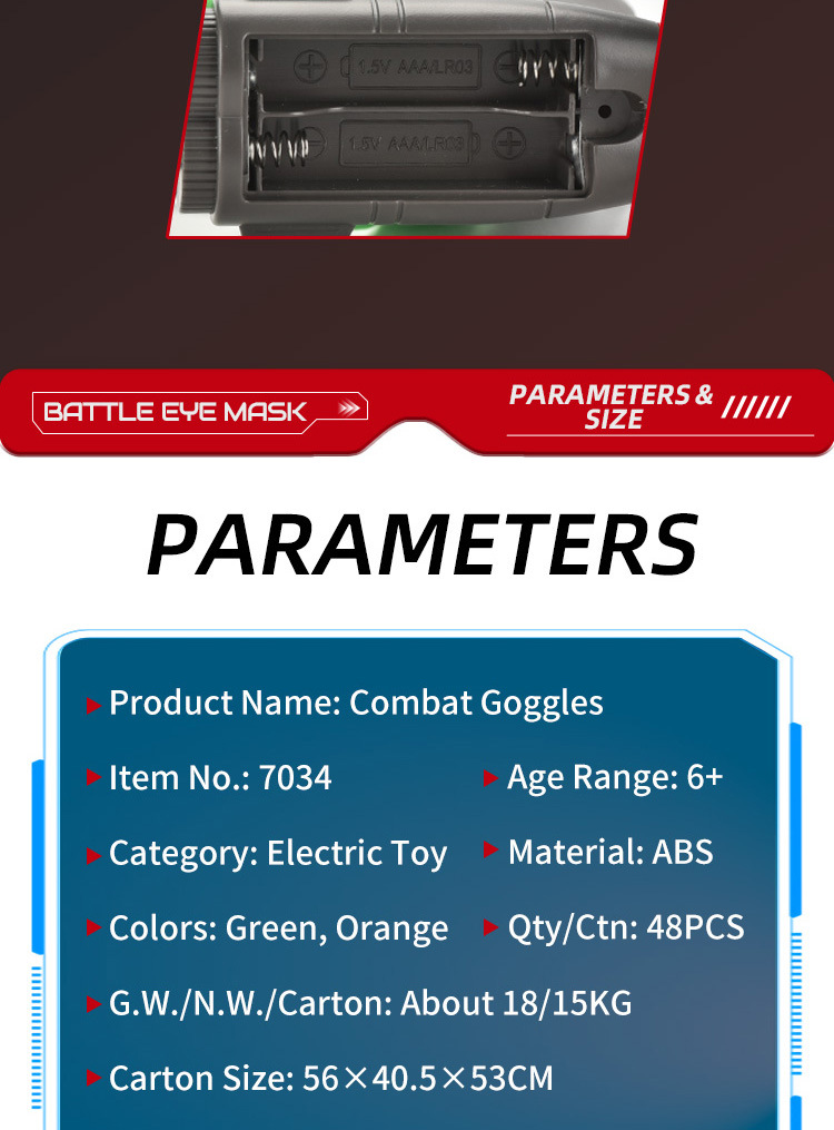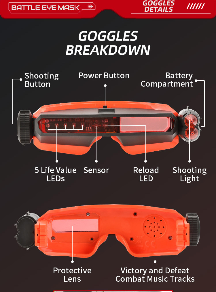 | Color | Ojos de combate naranja, ojos de combate verde |