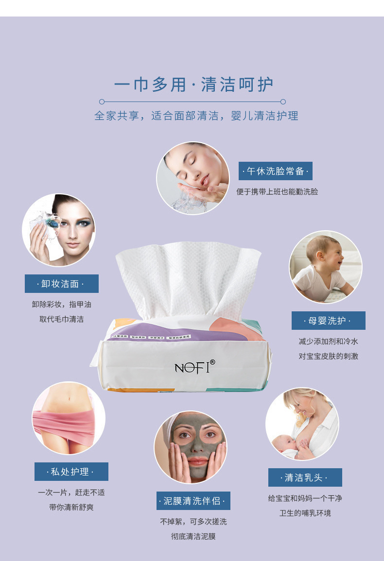 NOFI toallas de lavado de la cara desechables espesar toallas de algodón húmedo y seco para limpieza de la cara doméstica cabello liso