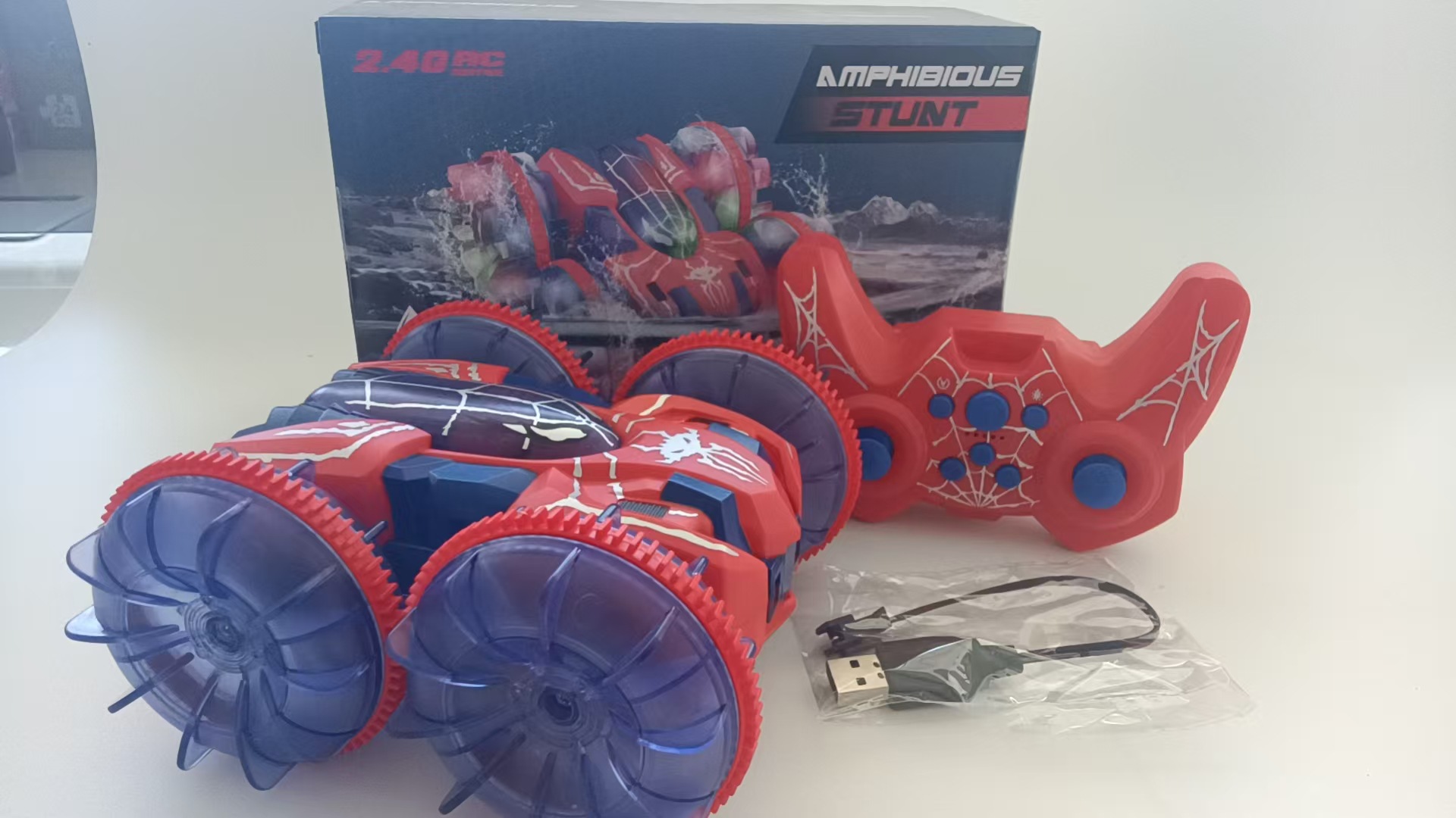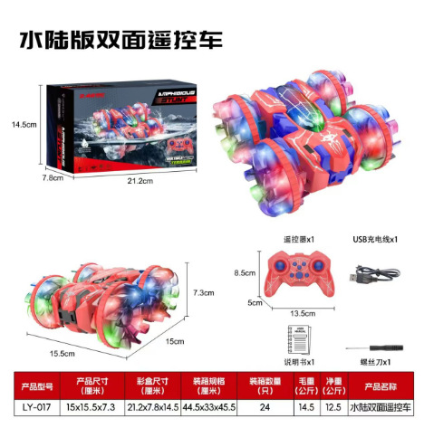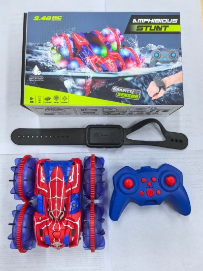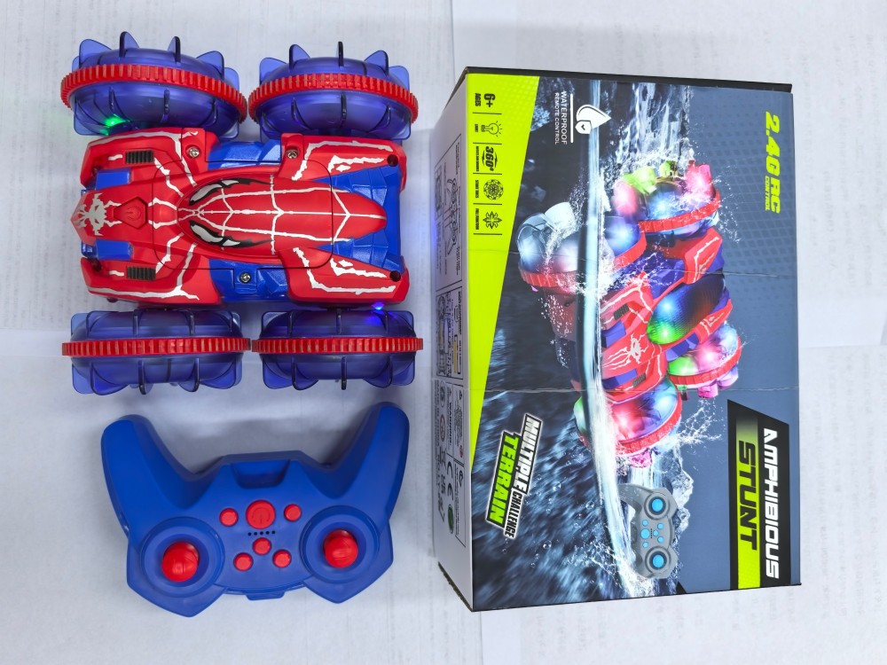 Coche teledirigido transfronterizo de doble modo (acuático y terrestre) Amazon 2.4G con luces, rotación de 360 grados, coche eléctrico de doble modo para niños