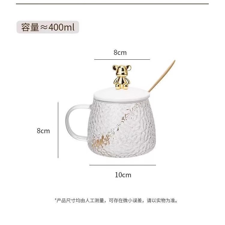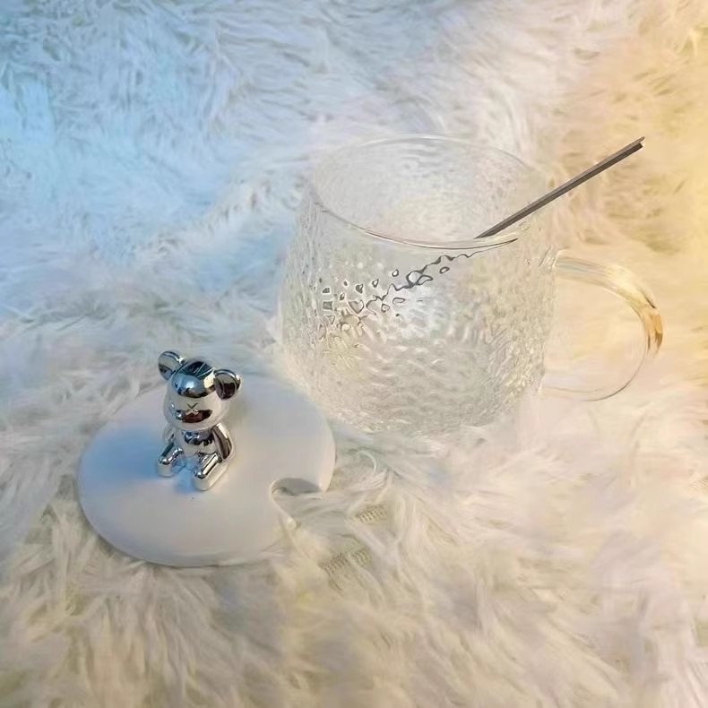 Taza de vidrio de oso de dibujos animados japonés taza de agua con mango taza de menú de desayuno estudiante taza de café de leche