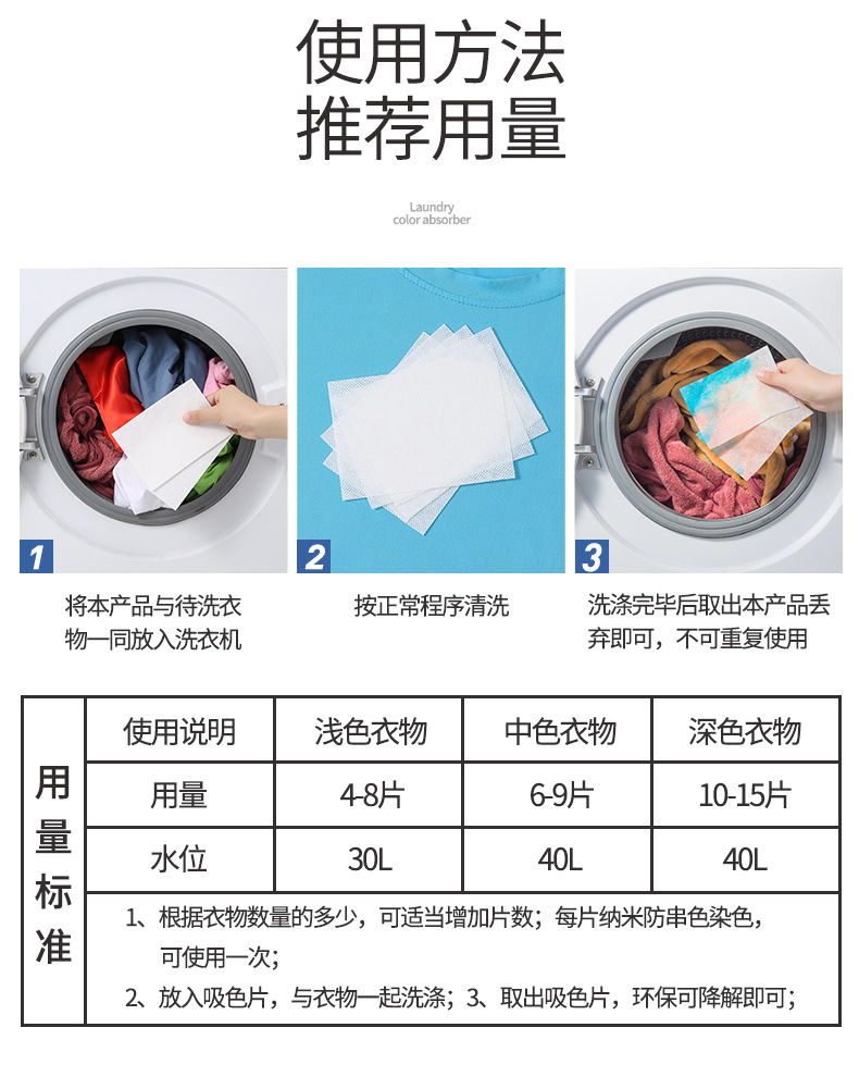 Tabletas de lavandería anti-cadena de colores Papel absorbente Lavadora Tabletas de absorbente de color anti-teñido Ropa mezclada y lavada Tabletas de lavandería anti-teñido y absorbente de color