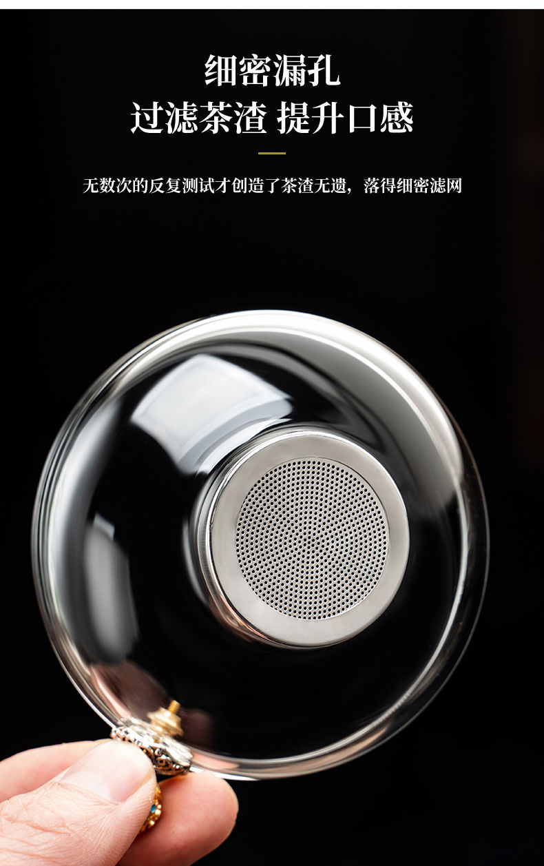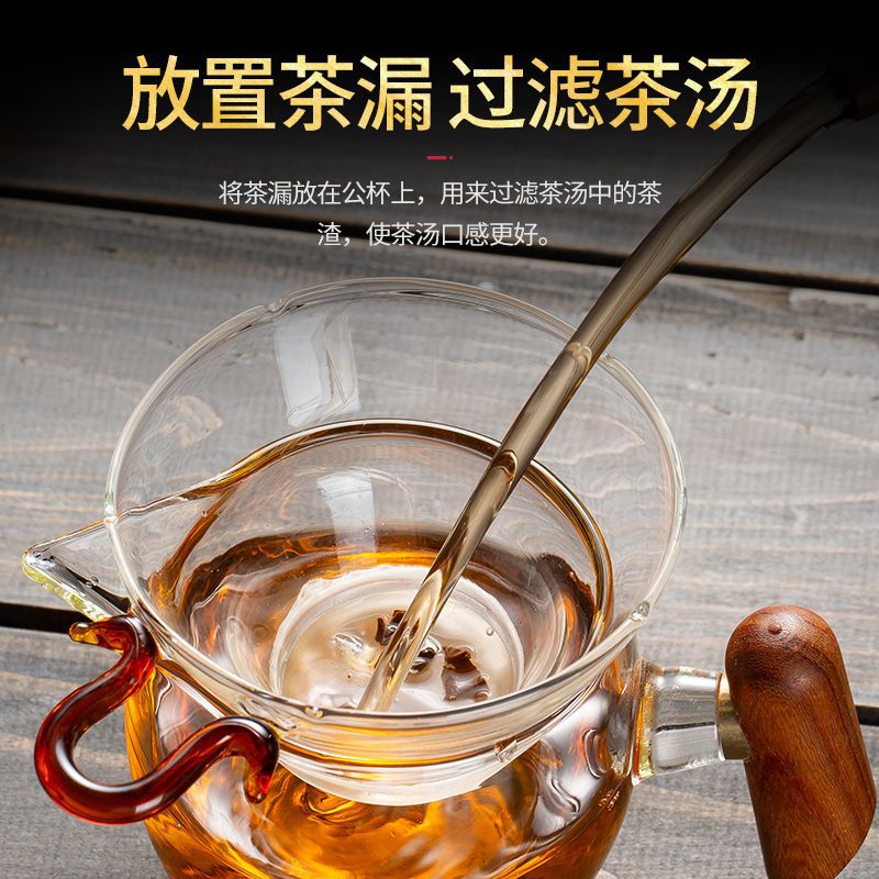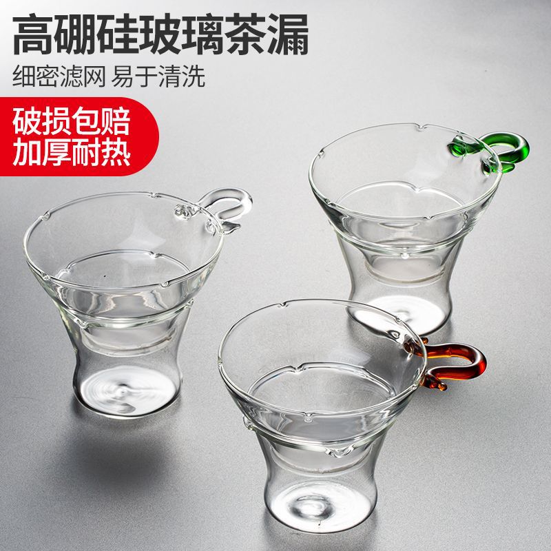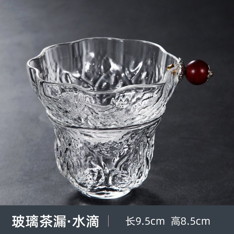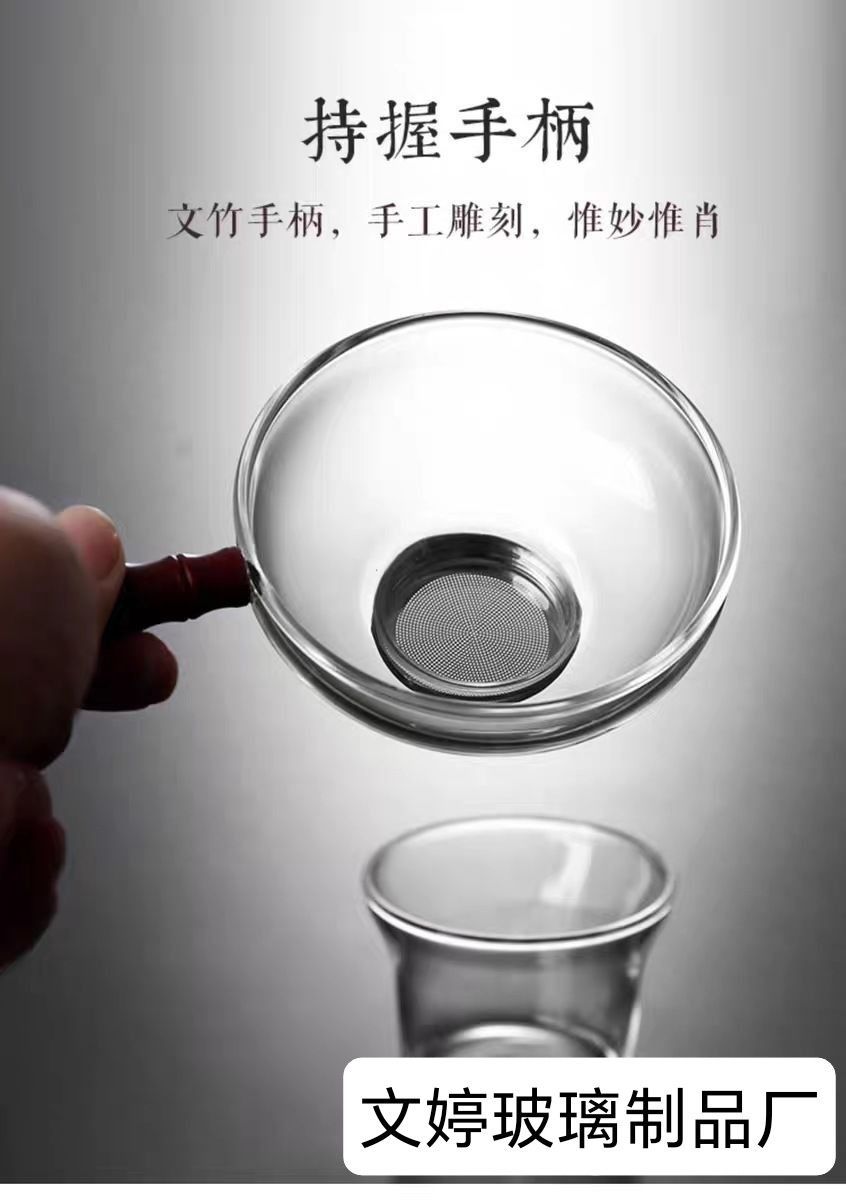 Filtro de té de vidrio transparente de alta borosilicona grueso resistente al calor de acero inoxidable para el hogar de bambú y madera accesorios de filtro de kung fu