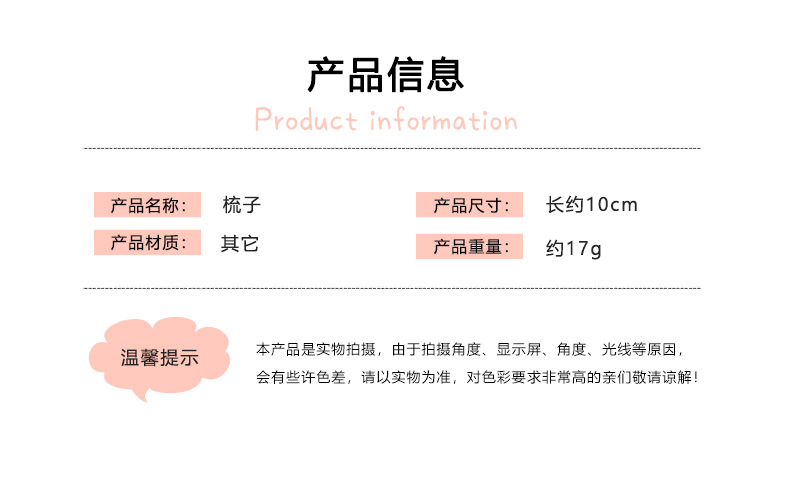 | Color | 1 # púrpura, 2 # rosa, 3 # amarillo, 4 # naranja, 1 # espejo redondo + peine (pelo aleatorio) |