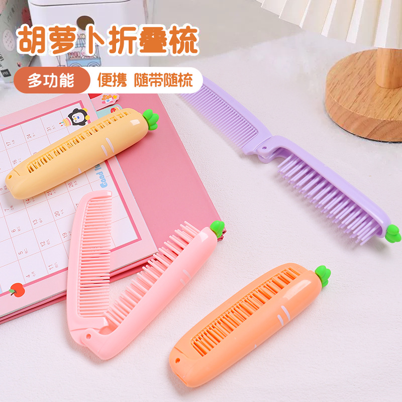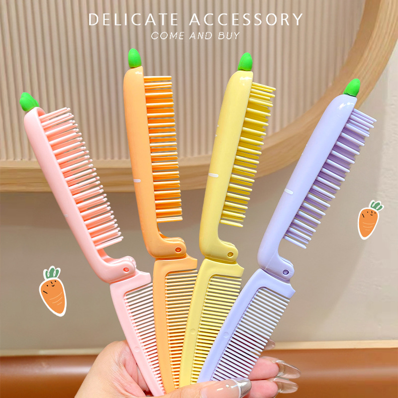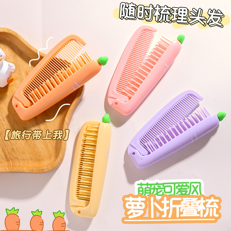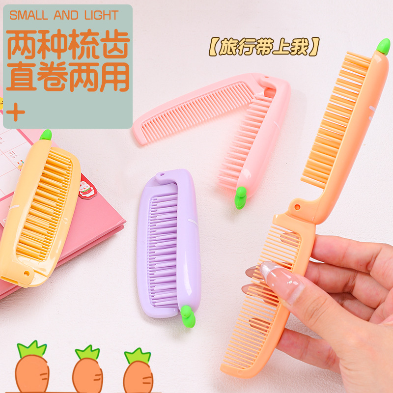 Pequeña niña estudiante cabello largo portátil recto doble uso peine de niños lindos peines plegables de zanahoria nuevo