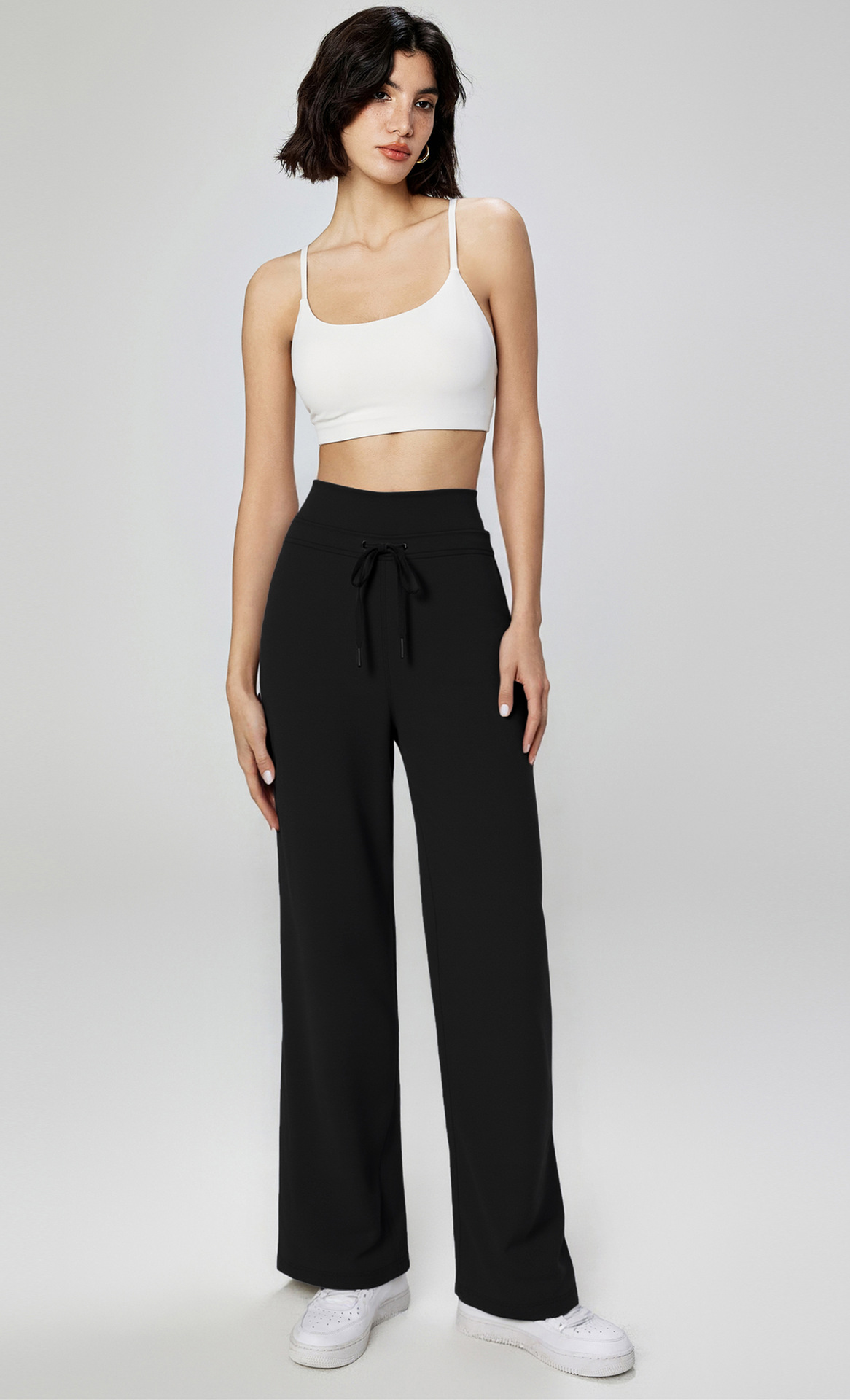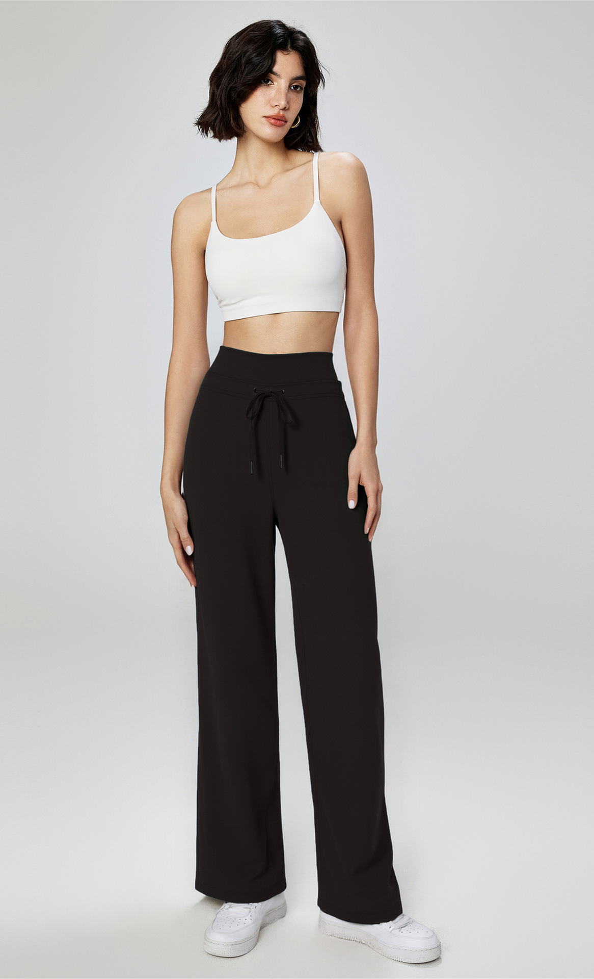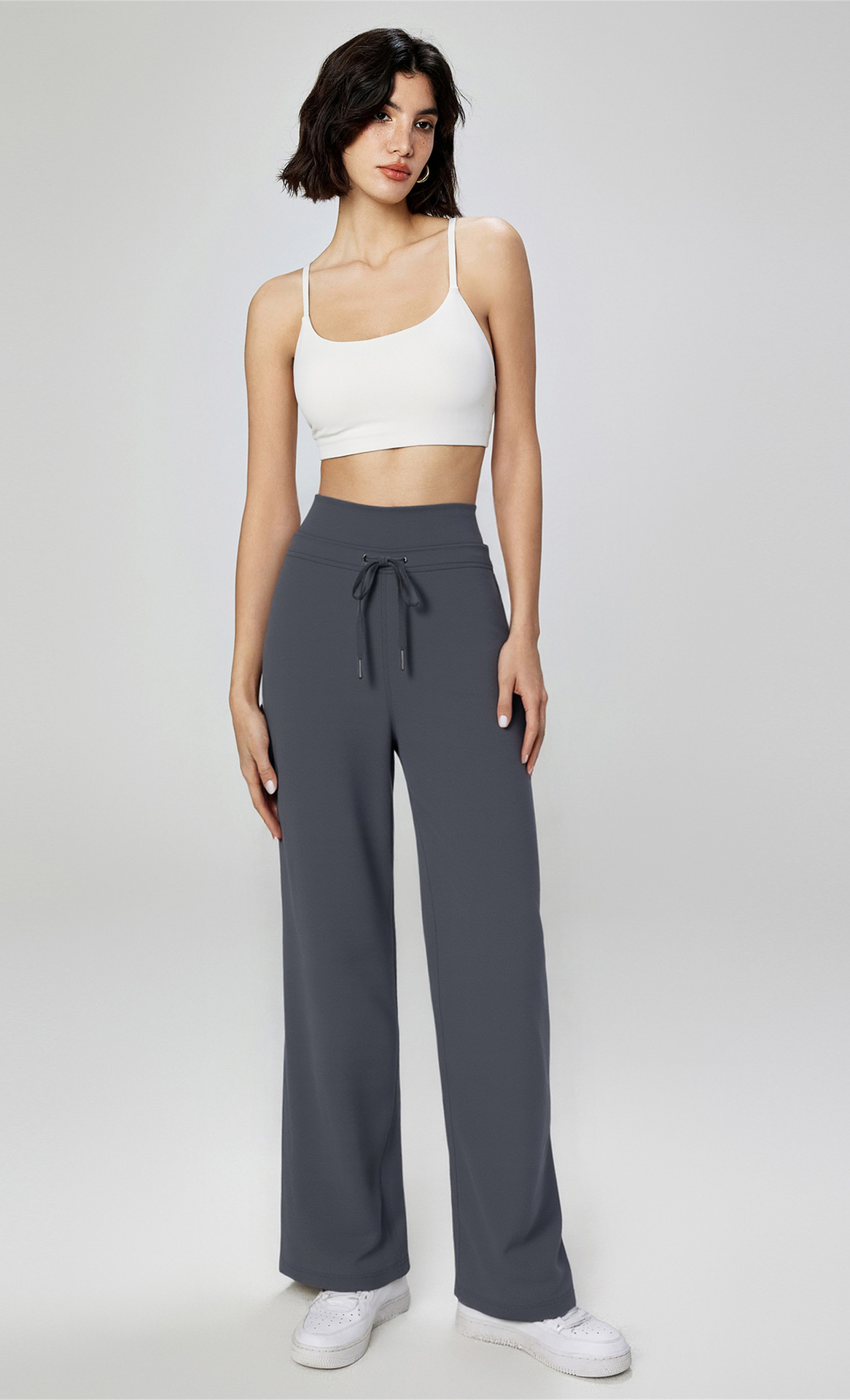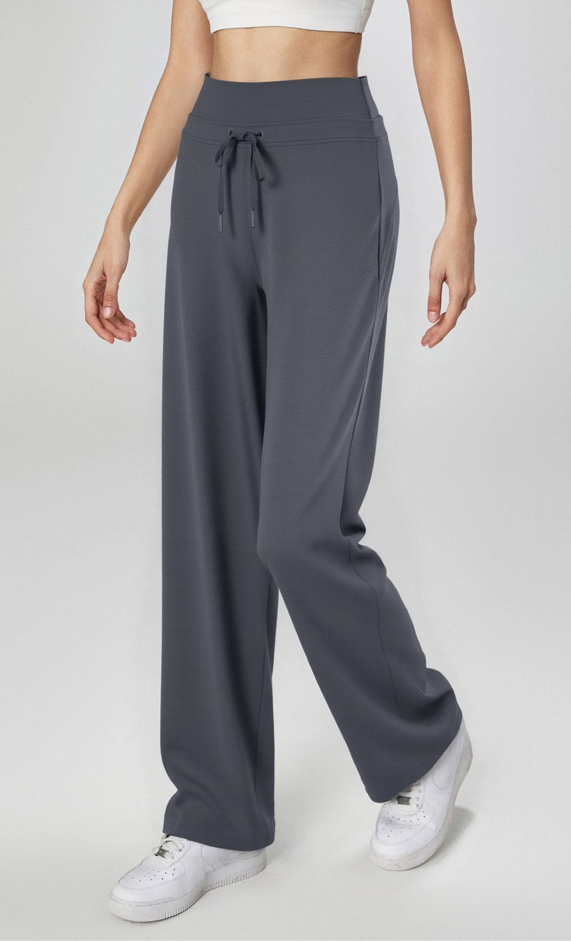 Otoño y invierno nuevos pantalones de piernas anchas, pantalones casuales deportivos de doble cintura, pantalones rectos, NULS, sensación de desnudez.