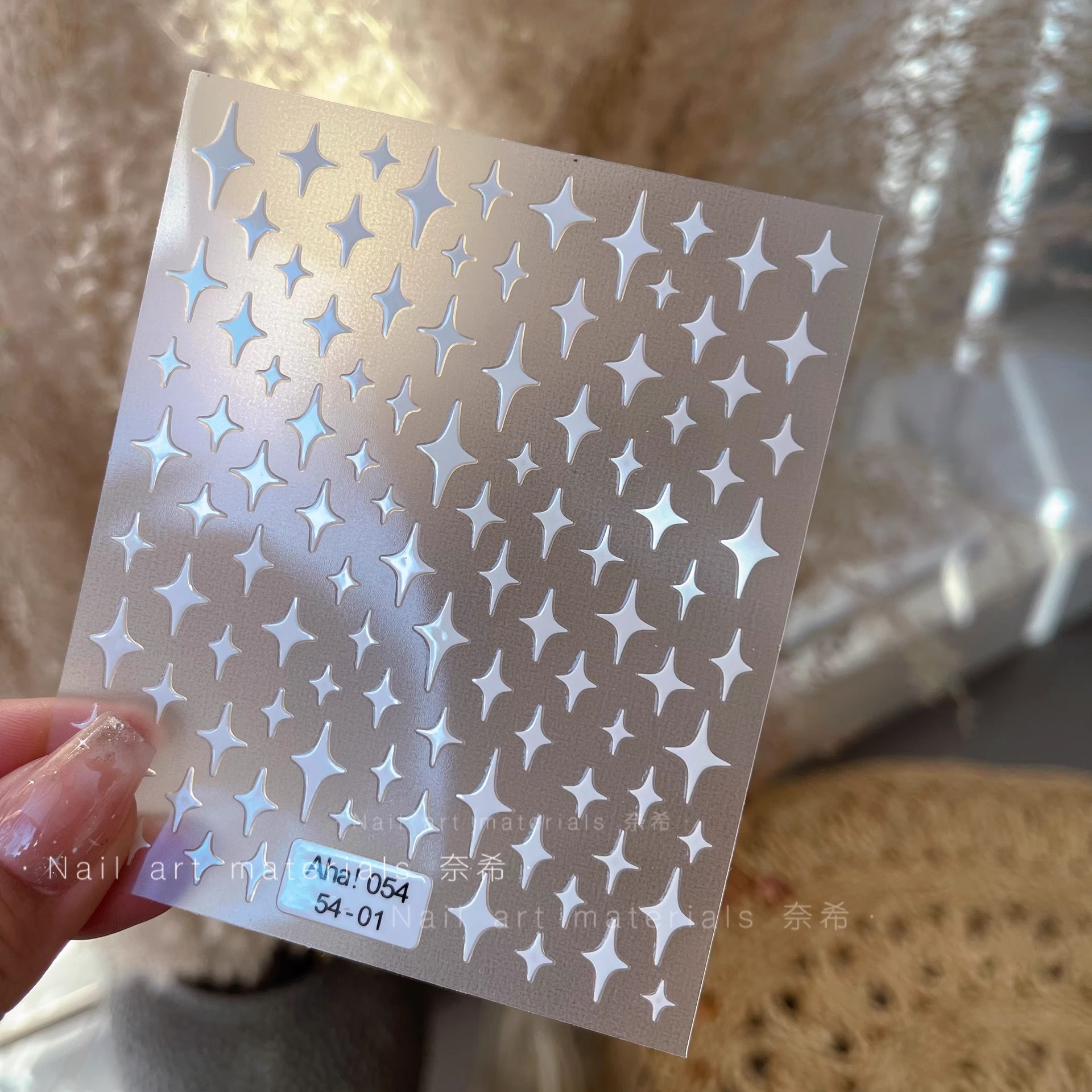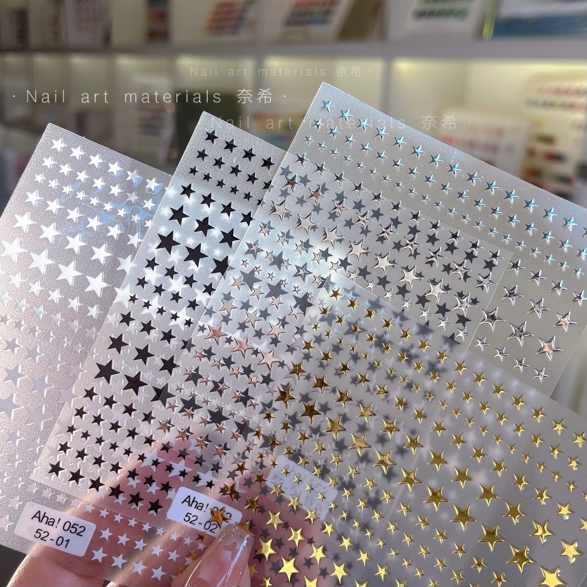 Red estrella de uñas pegatinas de espalda pegatinas de uñas 3D estampado de plata estrella mini papel decoración pegatinas de media luna pentagonal
