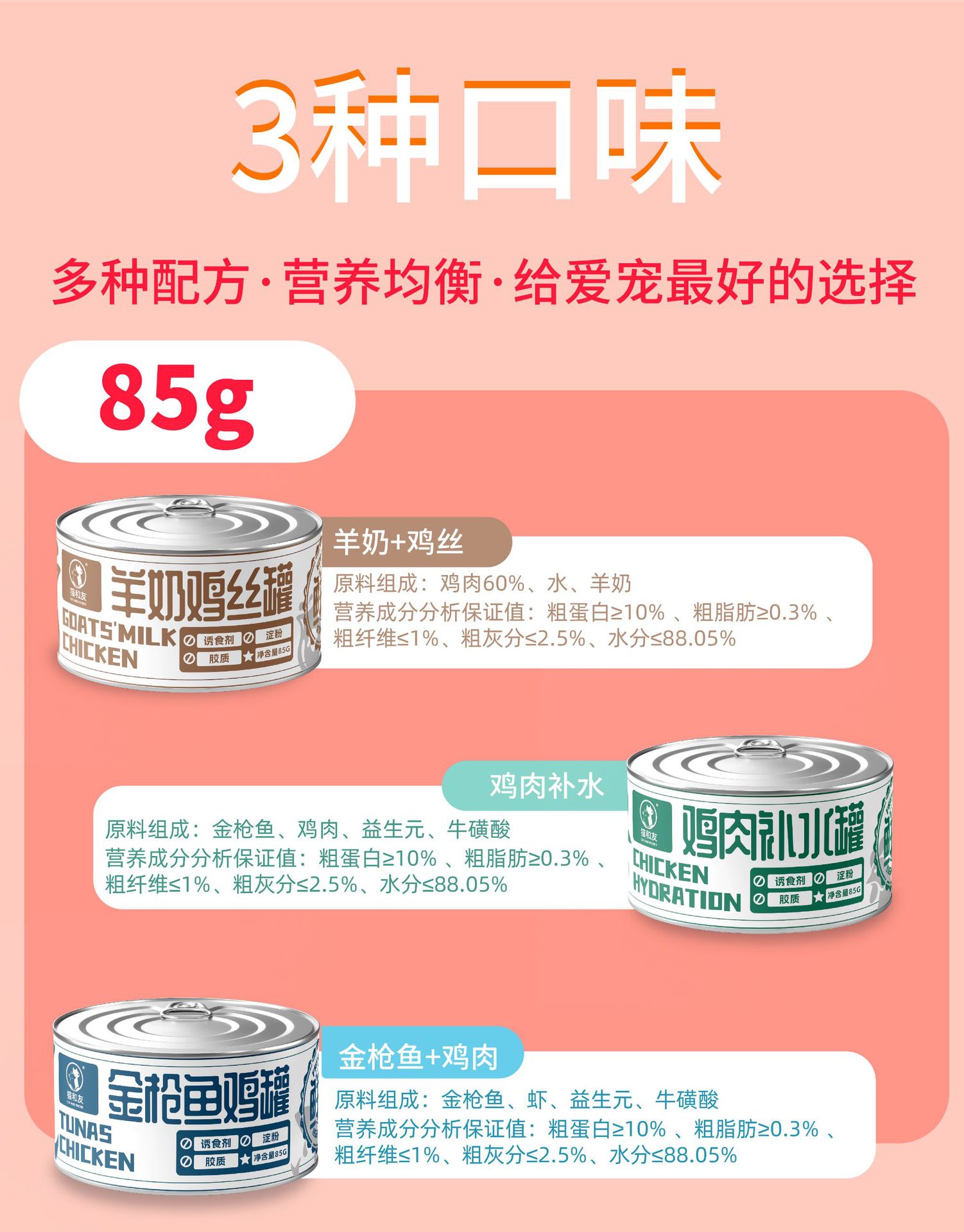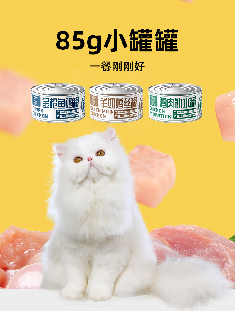 Gato y amigos pollo enlatado 85g, bocadillos para gatos adultos, alimento húmedo para gatos jóvenes, suplemento nutricional, bocadillos de sopa
