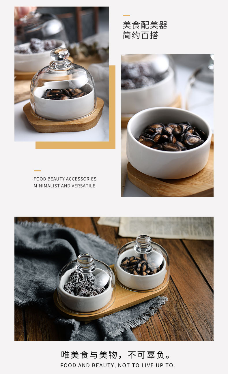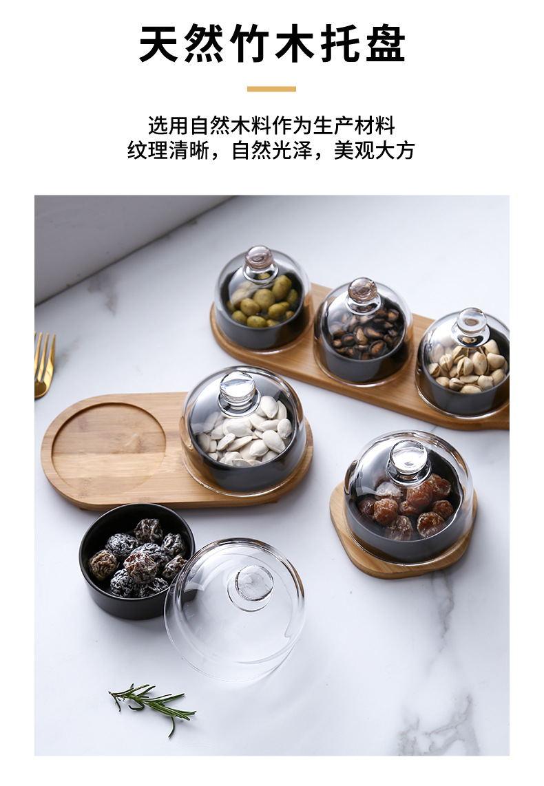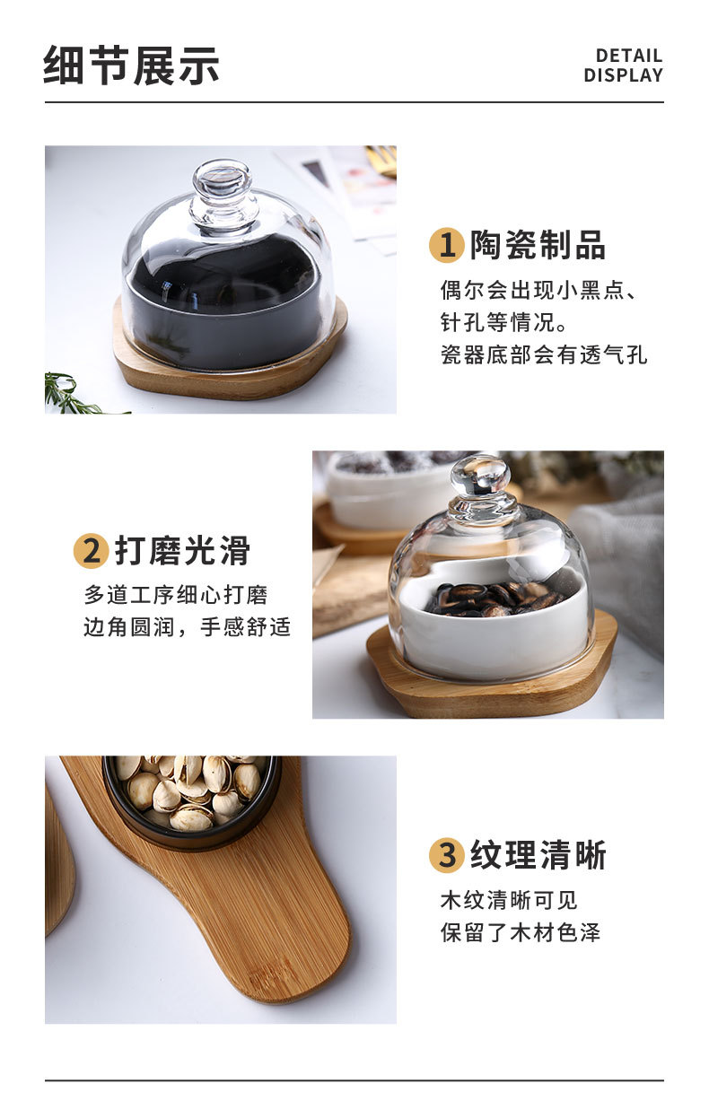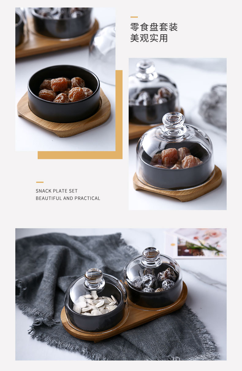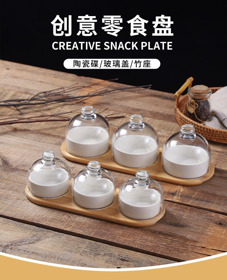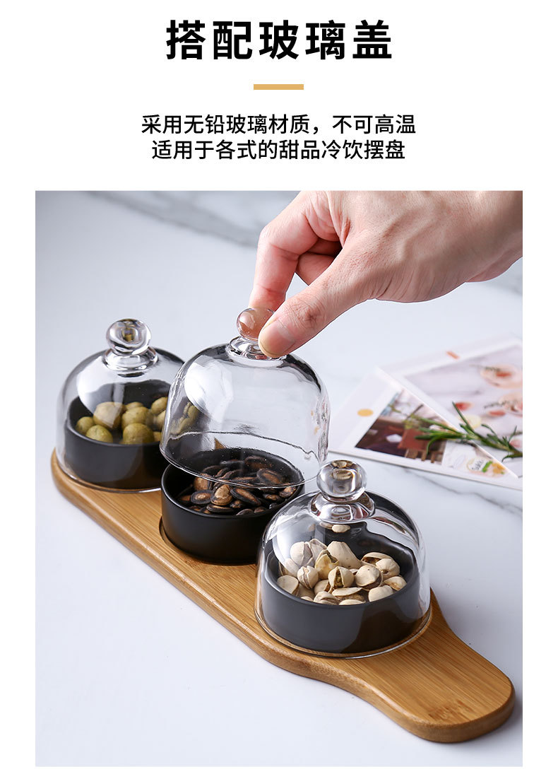 Plato de bocadillos de cerámica creativo con cubierta de vidrio, té de la tarde, postre, tazón de horneado, plato de refrigerio casero, plato de fruta seca
