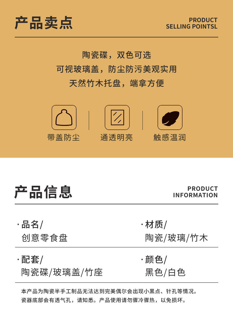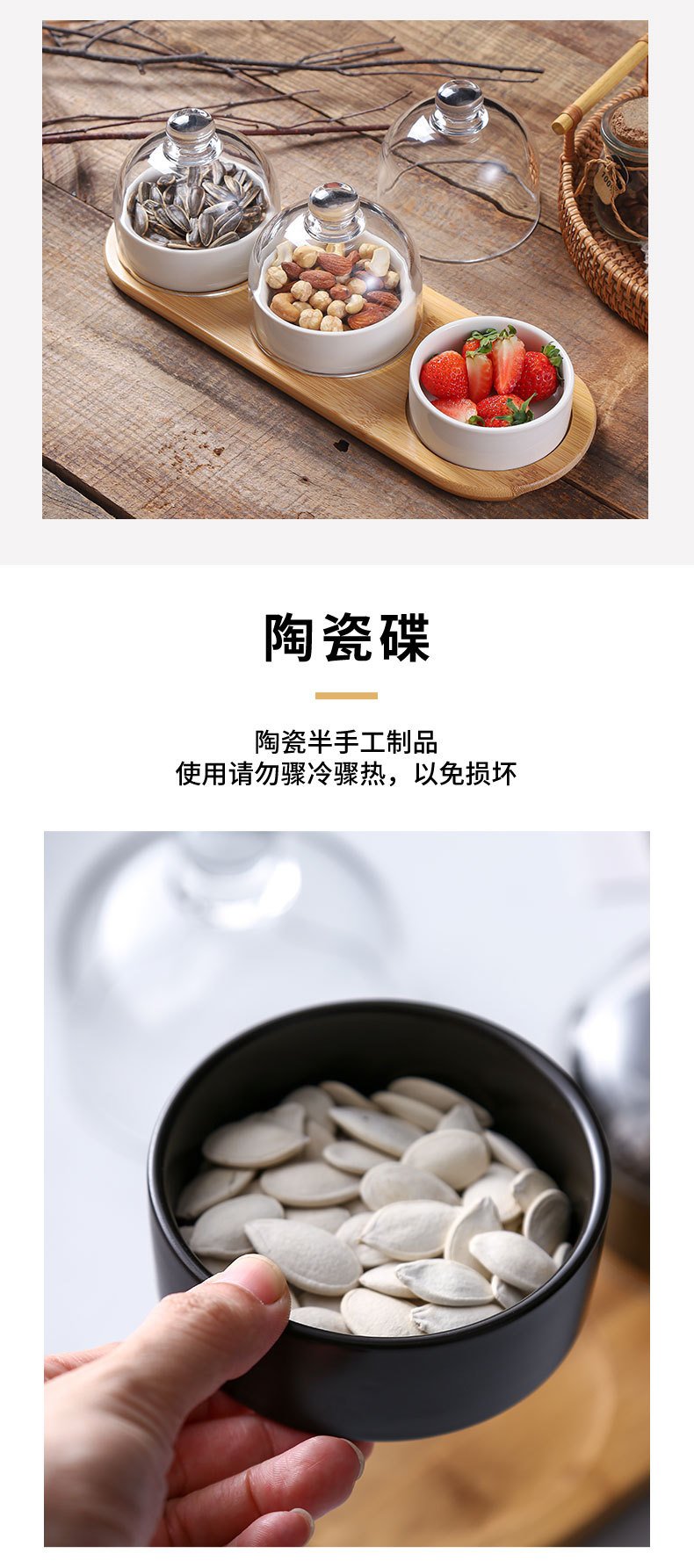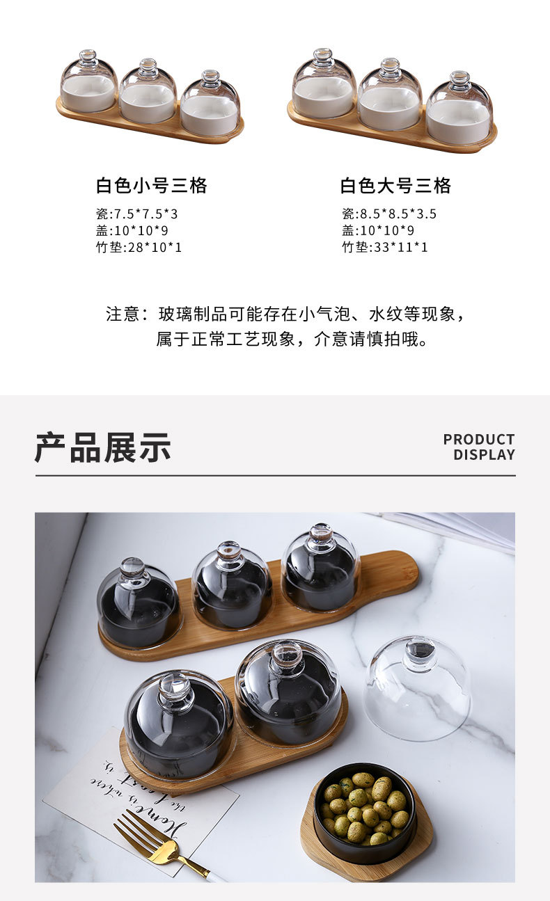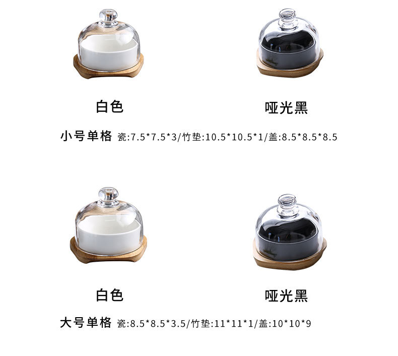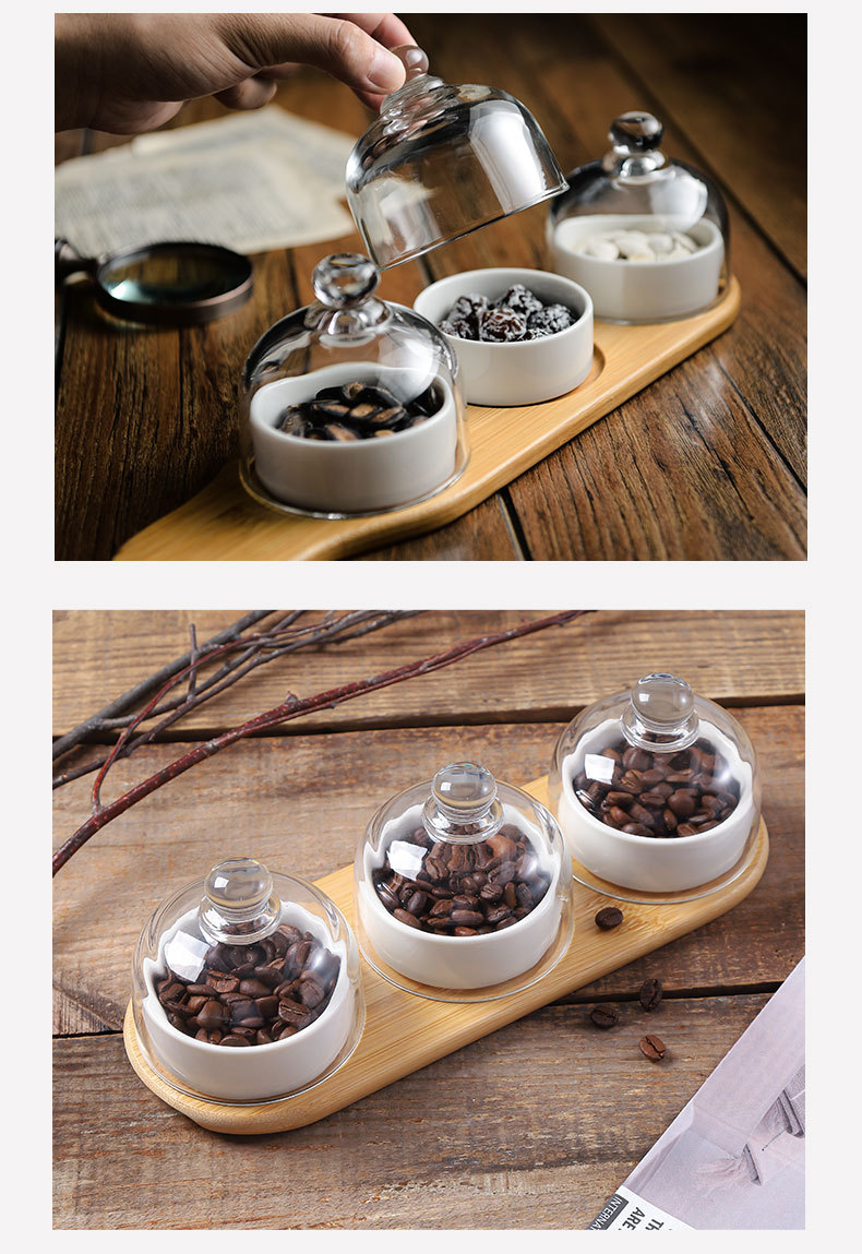Plato de bocadillos de cerámica creativo con cubierta de vidrio, té de la tarde, postre, tazón de horneado, plato de refrigerio casero, plato de fruta seca