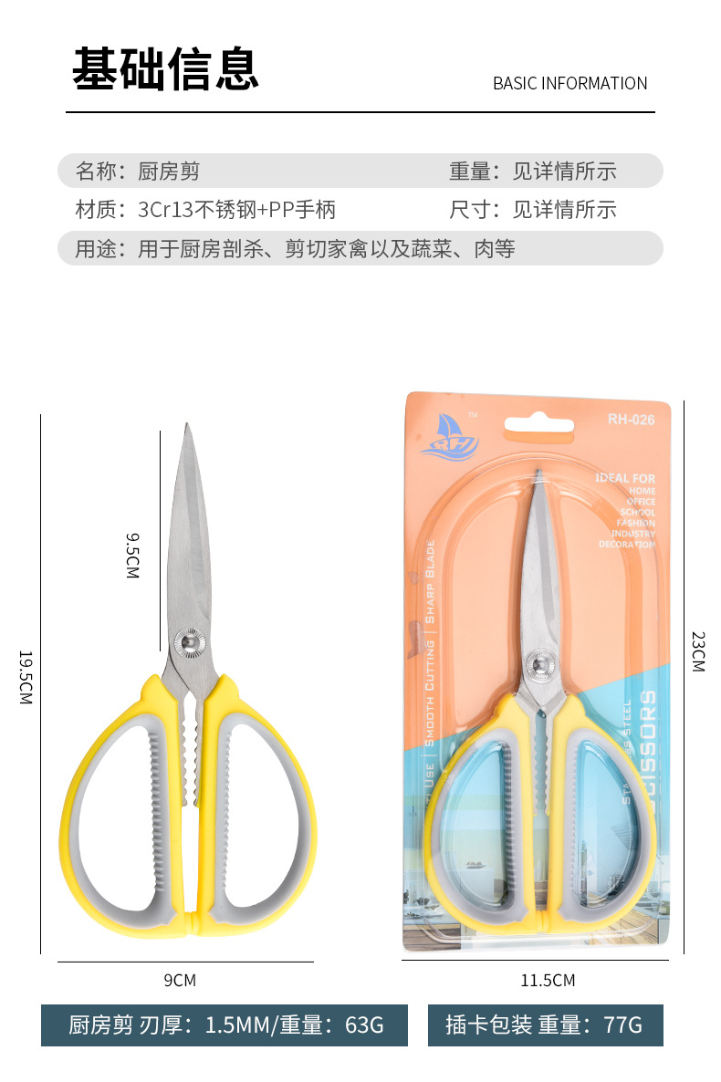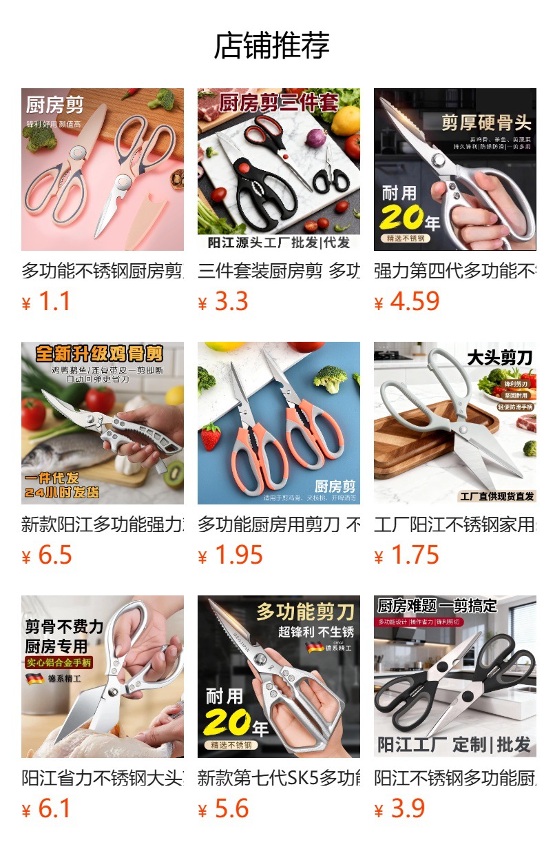 Tijeras multifuncionales de acero inoxidable de dos colores, tijeras de corte de carne multifuncionales, tijeras de corte de sartoria hechas a mano, tijeras de cocina de arte
