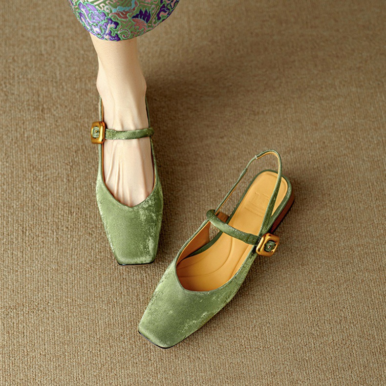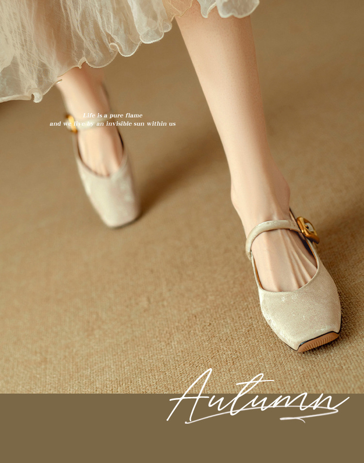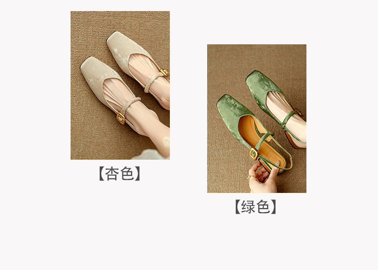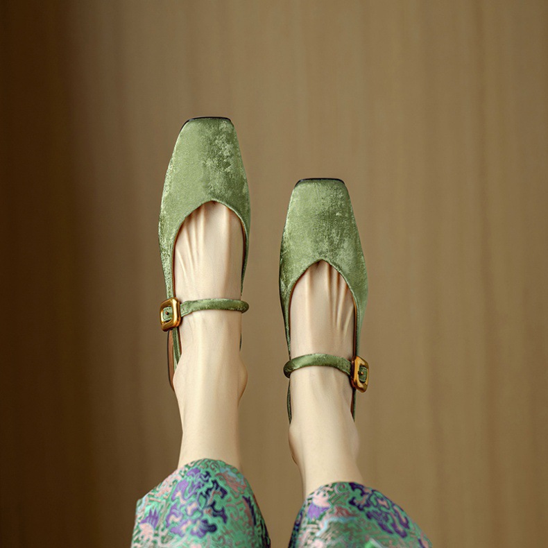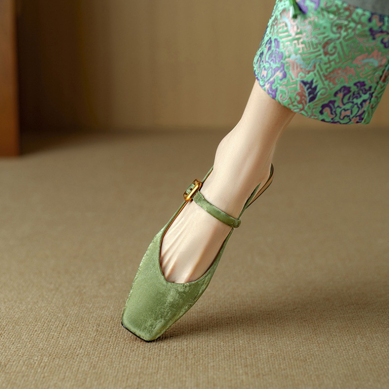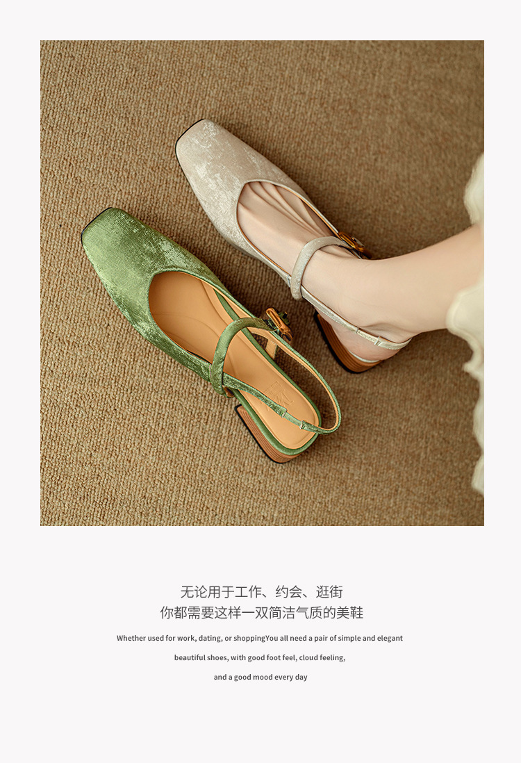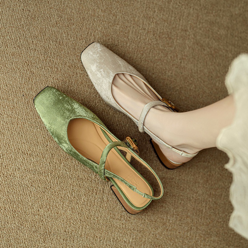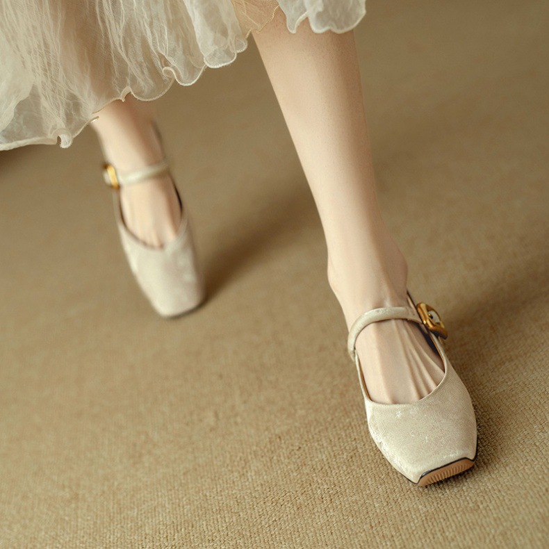 Guofeng cabeza cuadrada gruesa sandalias de talón alto de boca poco profunda para mujeres de verano nueva hebilla francesa no se cansa zapatos de talón bajo