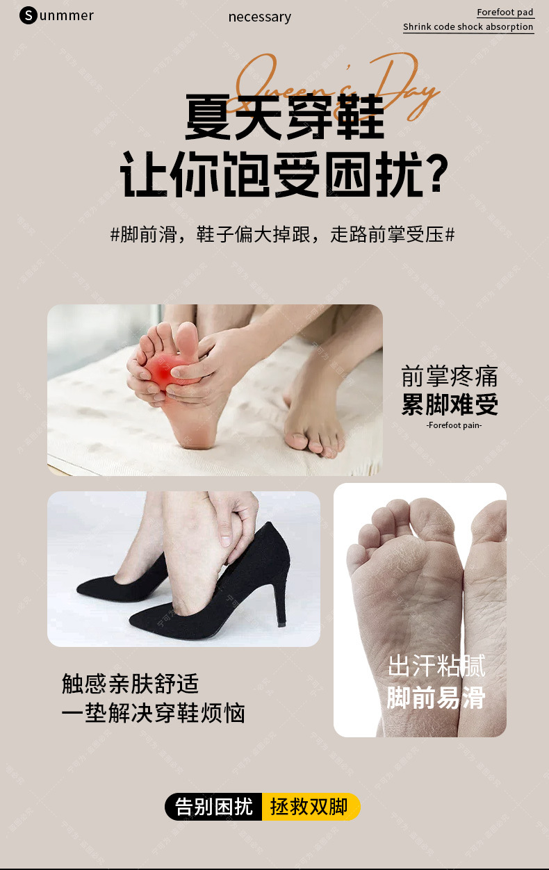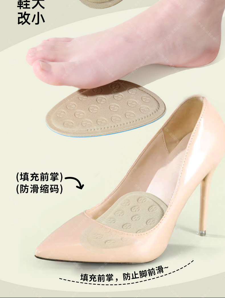 Anti-deslizante y anti-dolor almohadilla esponja almohadilla delantera espesa almohadilla delantera zapatos de tacón alto zapatos de mujer almohadilla de medio tamaño más pequeña