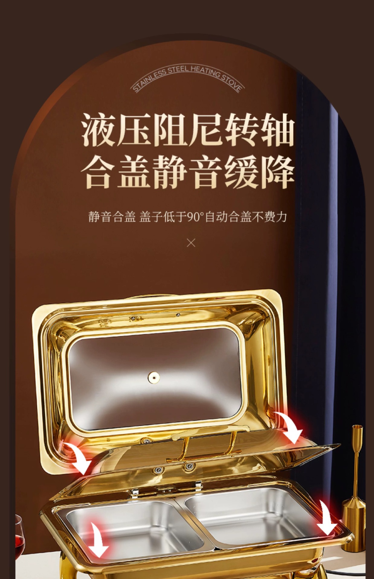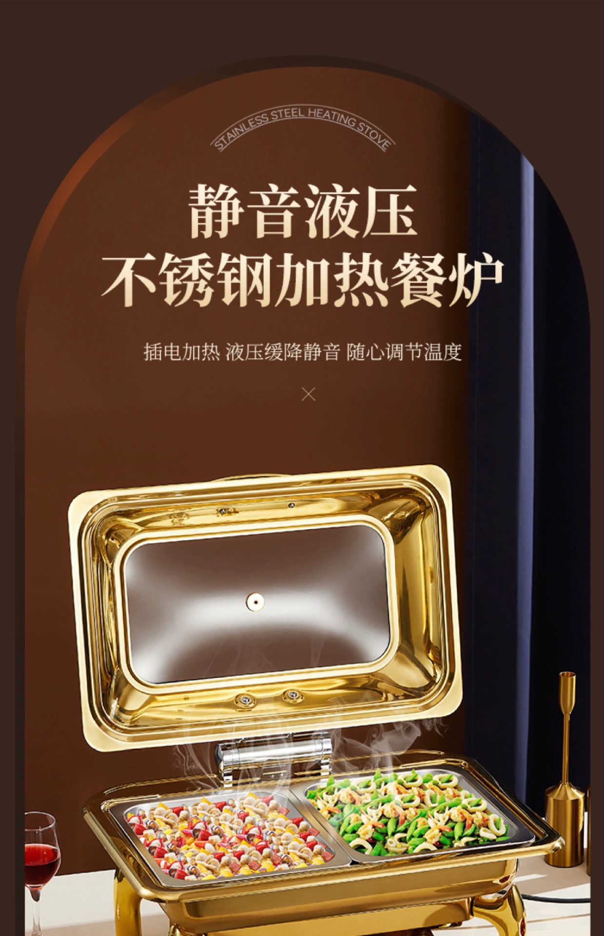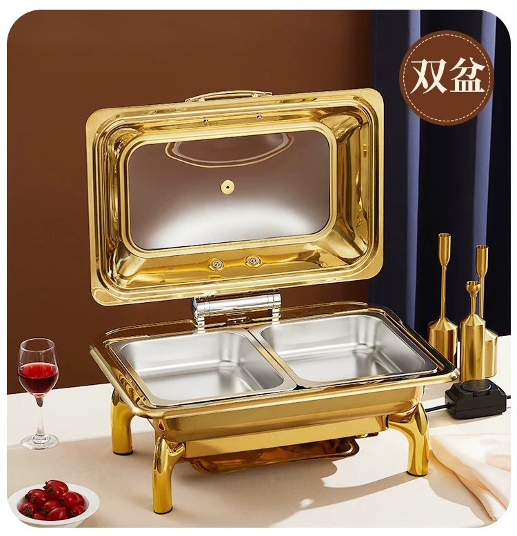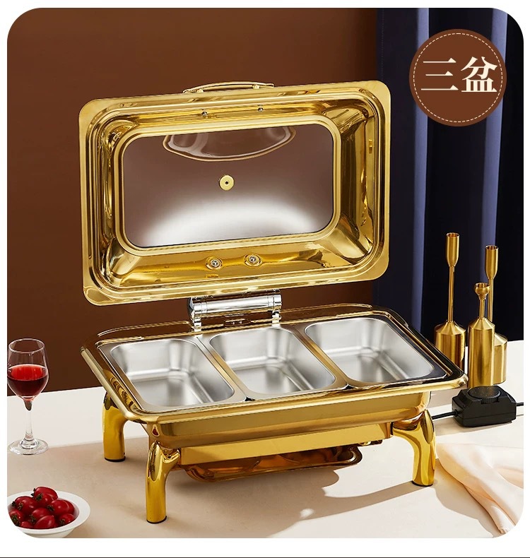 Horno de comedor de aislamiento visual de acero inoxidable chapado en oro, calefacción eléctrica, horno de flip hidráulico, horno de autoservicio de lujo, olla de aislamiento