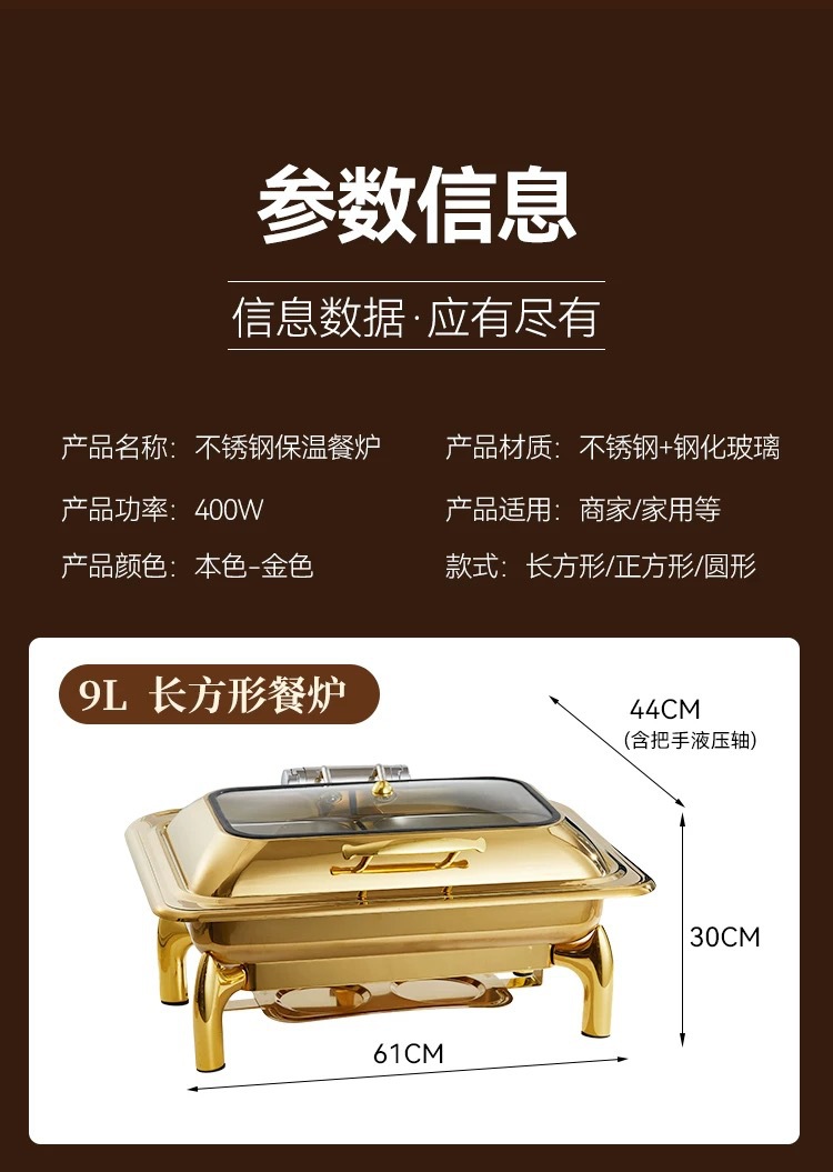 | Colores | Horno de comedor rectangular dorado-rejilla única,Horno de comedor rectangular dorado-doble rejilla,Horno de comedor rectangular dorado-tres compartillas,Horno de comedor cuadrado dorado-rejilla única,Horno de comedor redondo dorado-rejilla única |