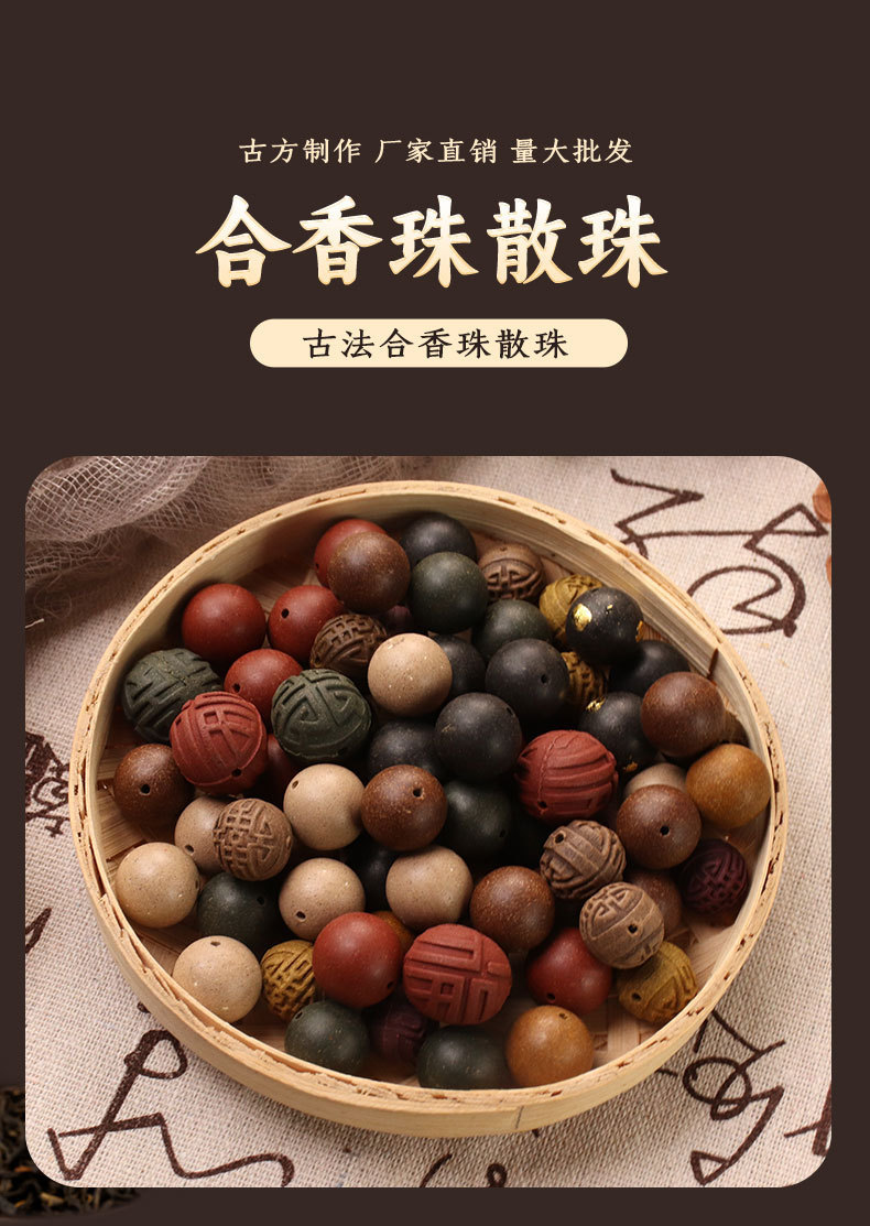 Cinco elementos de perlas de perlas de fragancia medicinales chinas de mano Wen Jue perlas de Buda rosario de perlas dispersas de la corte heredado la fuente de la antigua ley de fabricación