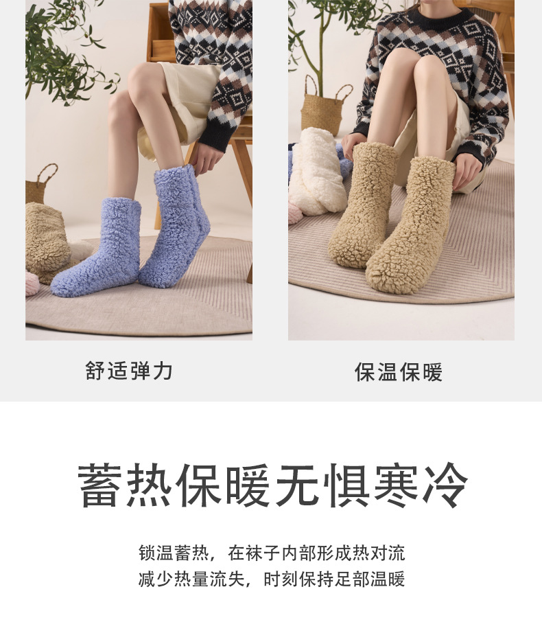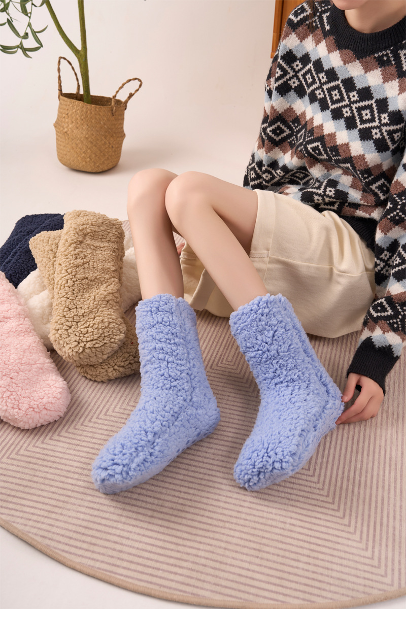 Calcetines de cordero de cachemira ultra gruesas calcetines de cama medianos casuales calcetines de piso de peluche antideslizante