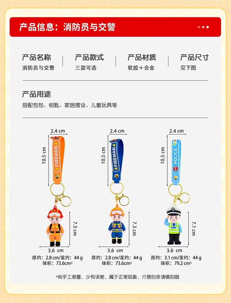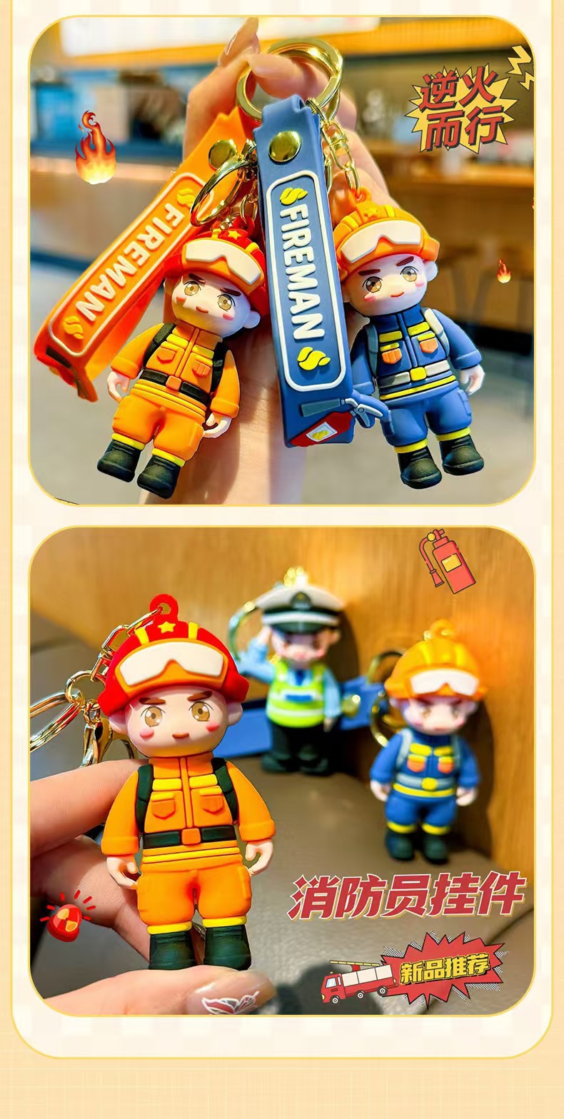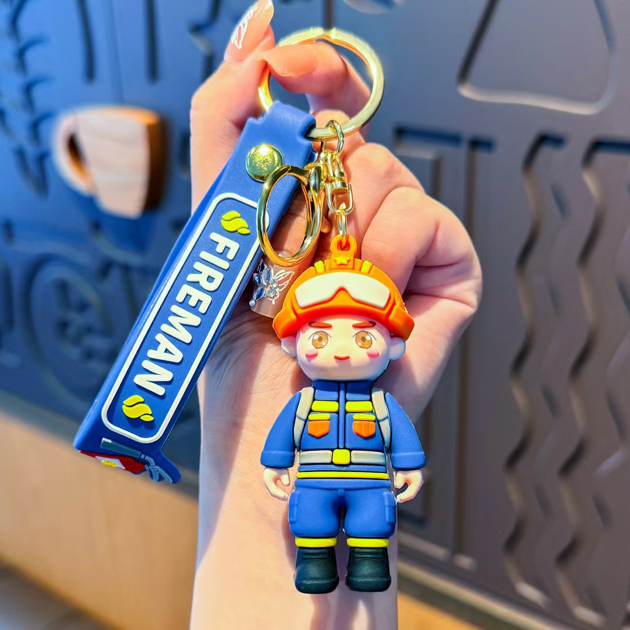 Policía de tráfico de dibujos animados llaveros muñecas bomberos bolsas de oso coche colgar muñecas regalo pequeño