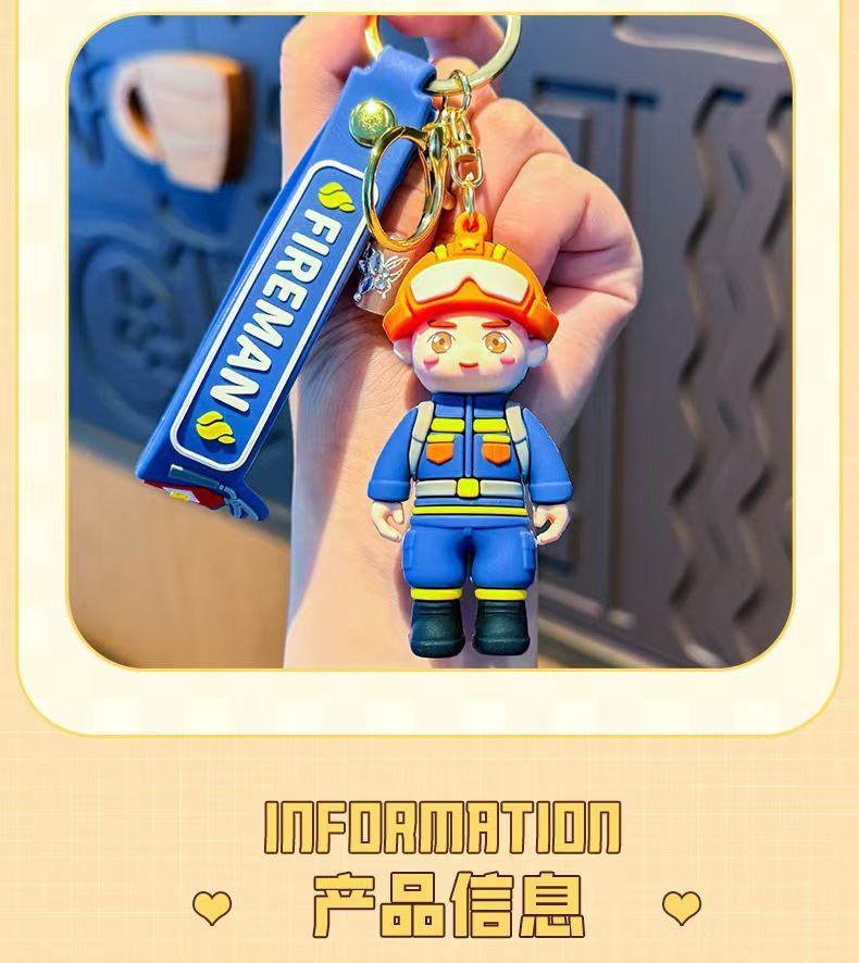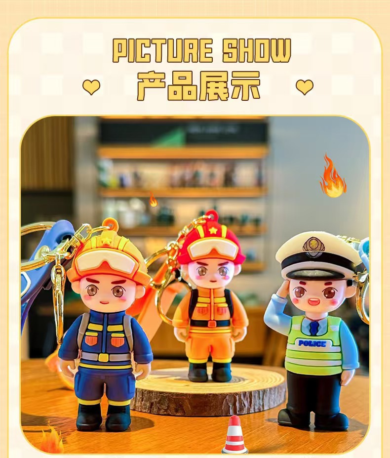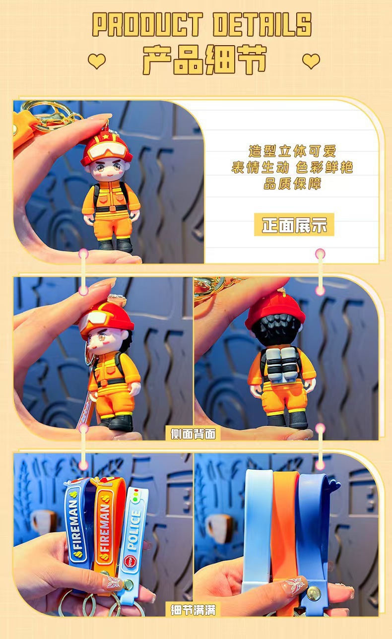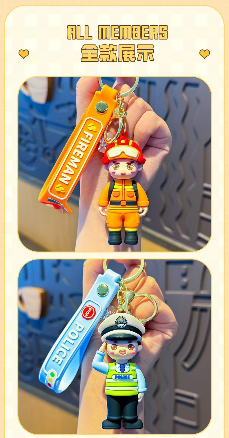 Policía de tráfico de dibujos animados llaveros muñecas bomberos bolsas de oso coche colgar muñecas regalo pequeño