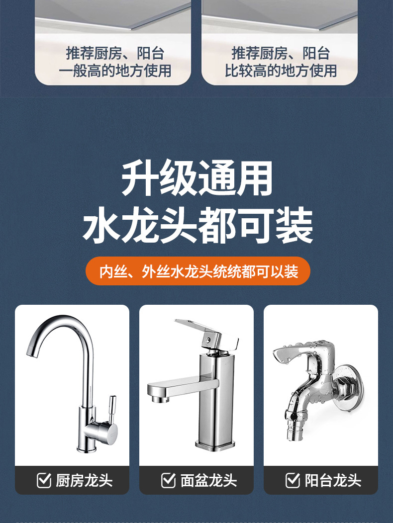 | Especificaciones | [Interfaz de cobre completo] Agua a prueba de salpicaduras presurizada de tres etapas (tipo corto), [tipo largo] Agua a prueba de salpicaduras presurizada de tres etapas |