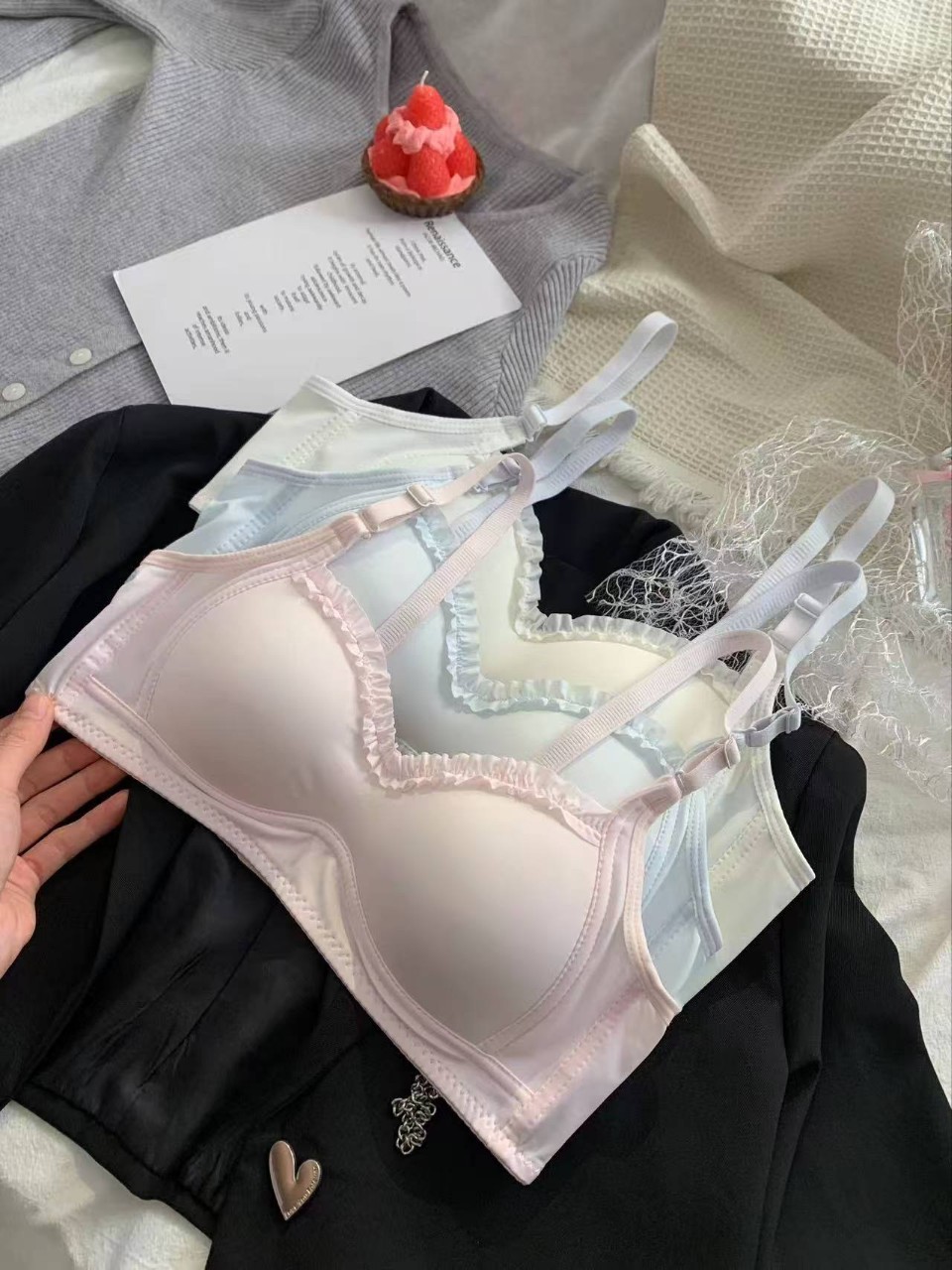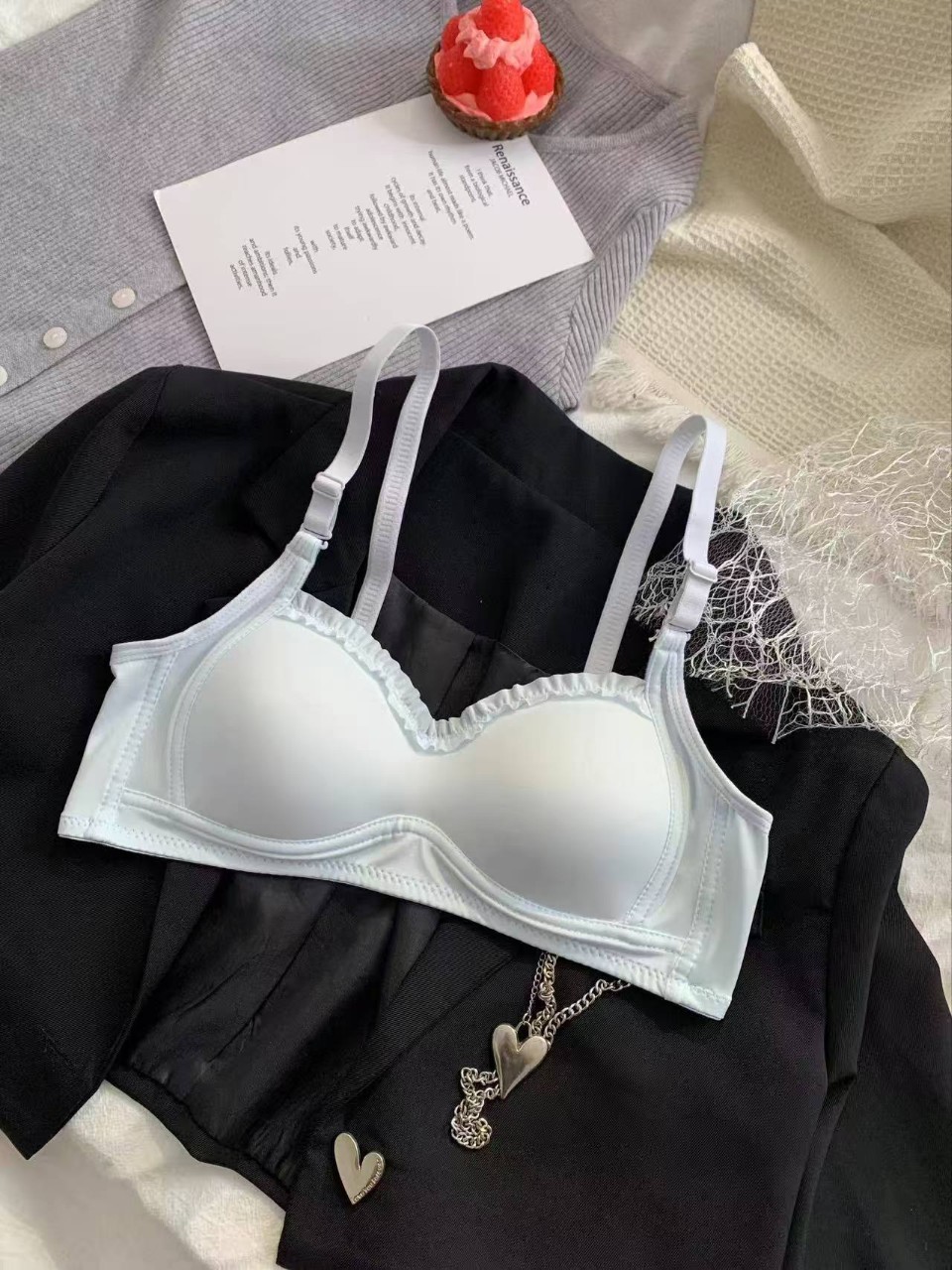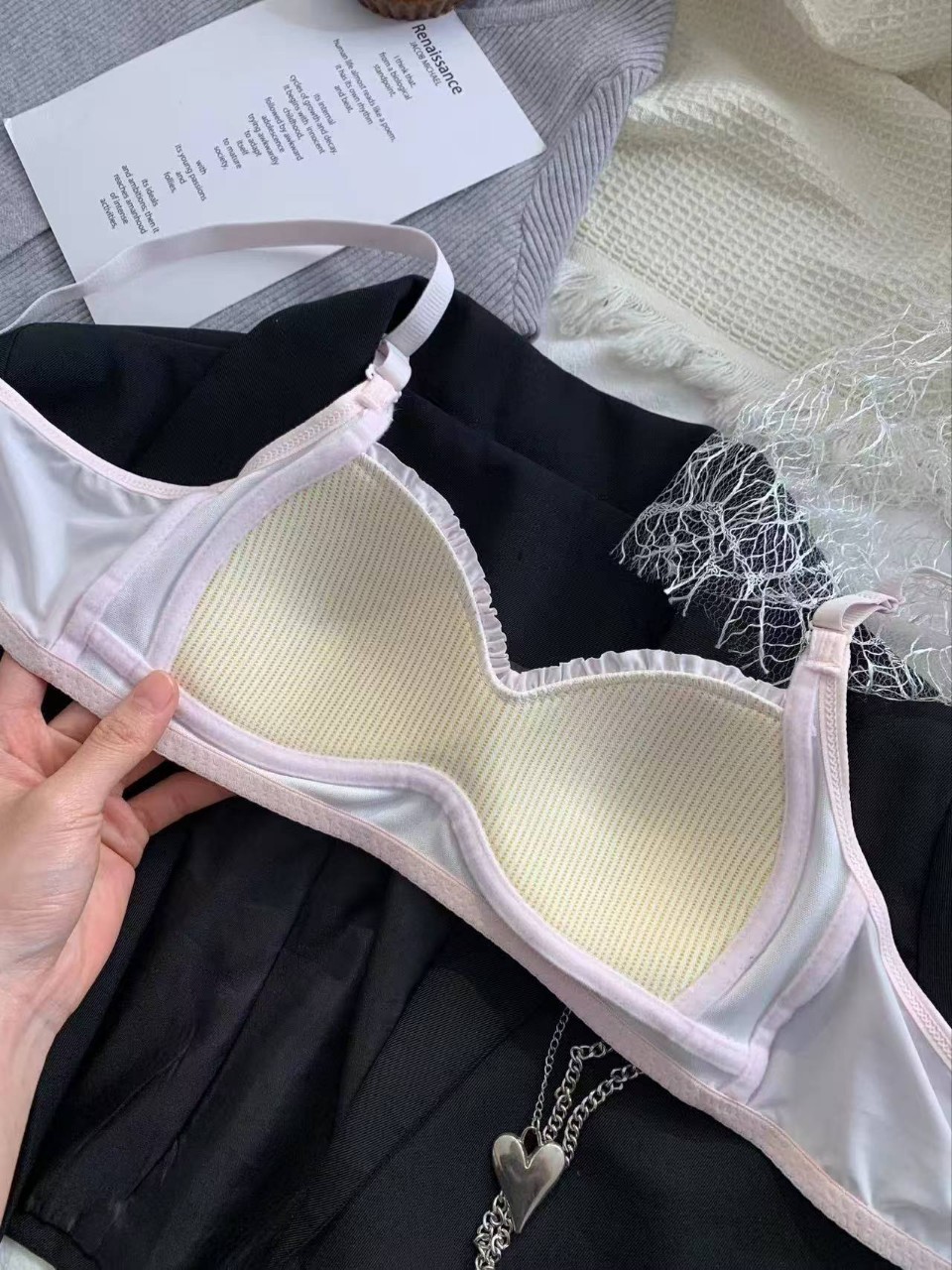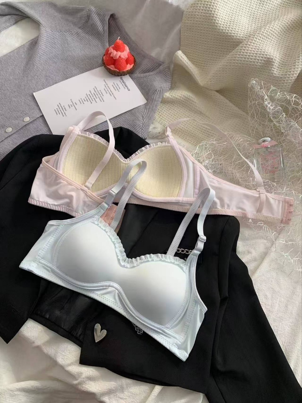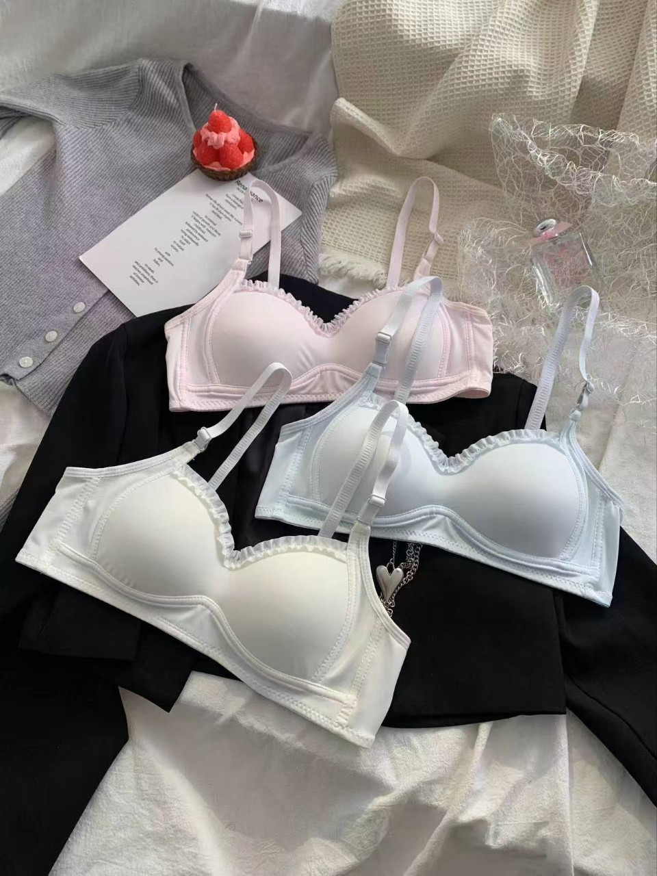Ropa interior para niñas, estudiantes de secundaria, estudiantes de secundaria, estudiantes de secundaria, niños grandes, pecho pequeño, sujetador delgado sin anillo de acero