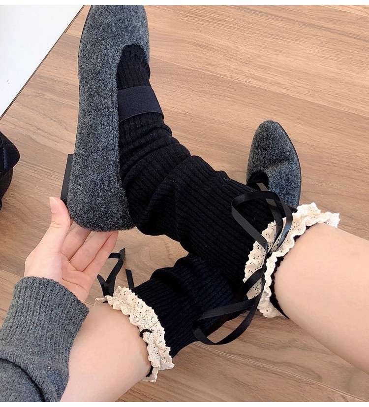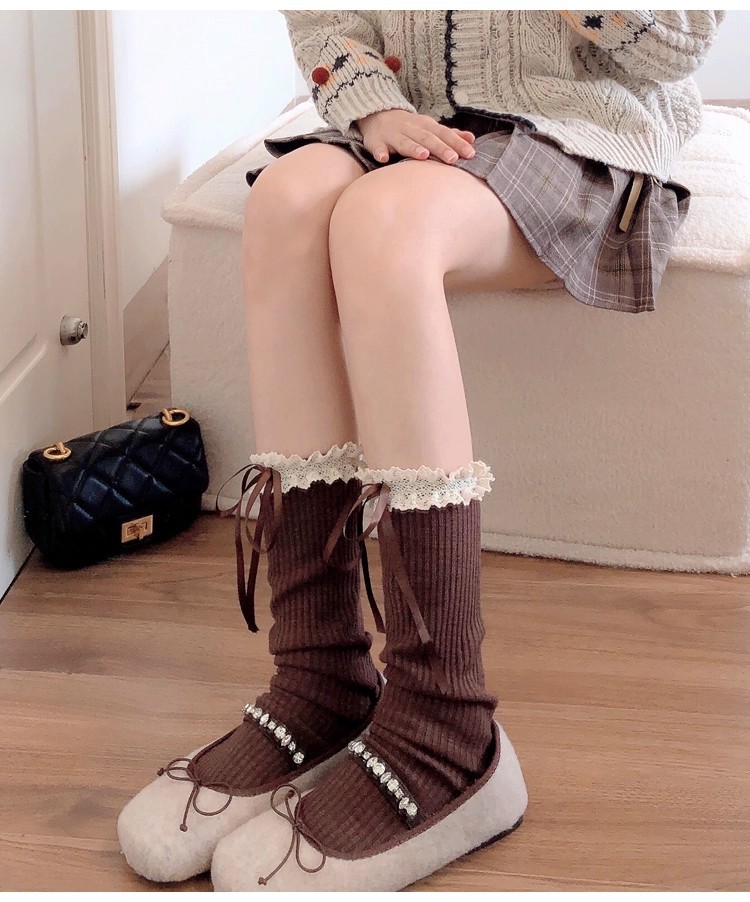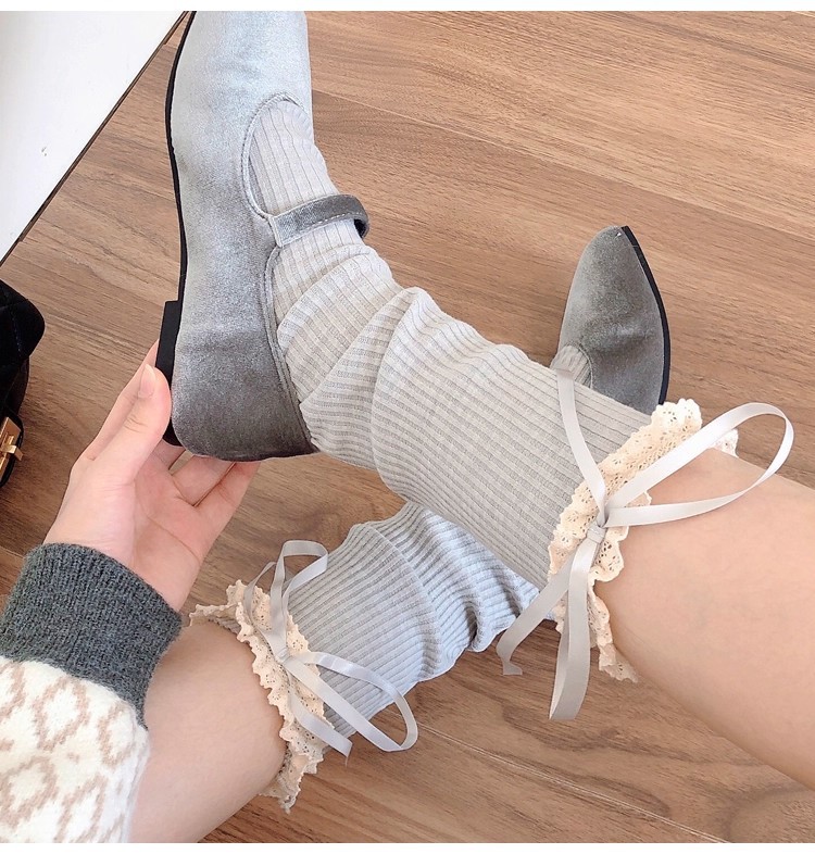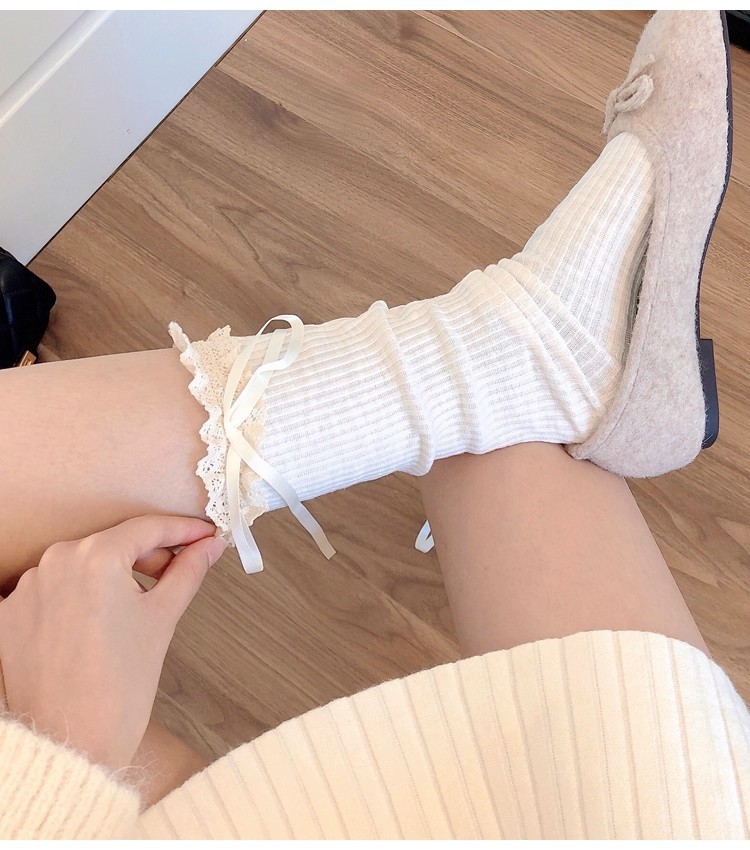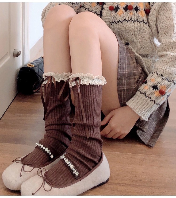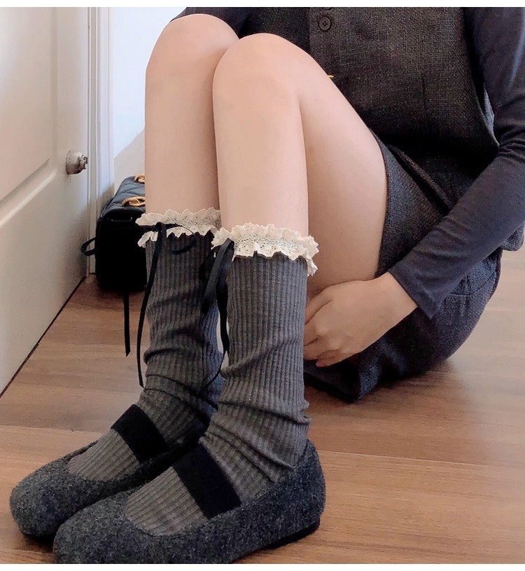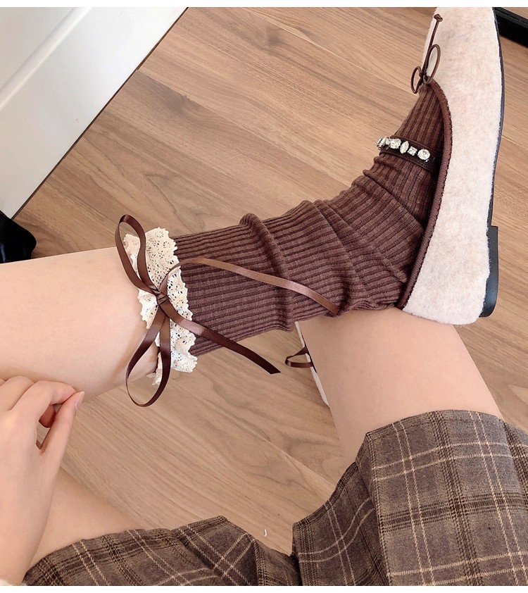 Calcetines de pantorrilla de encaje blanco para mujeres otoño y invierno gruesas calcetines de pila gris mediana calcetines de arco marrón