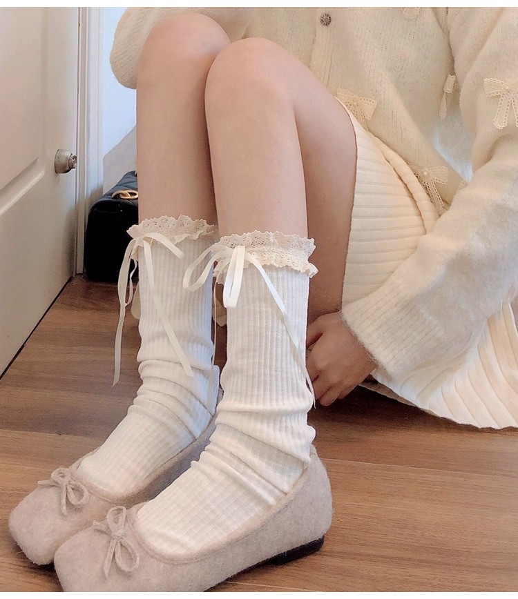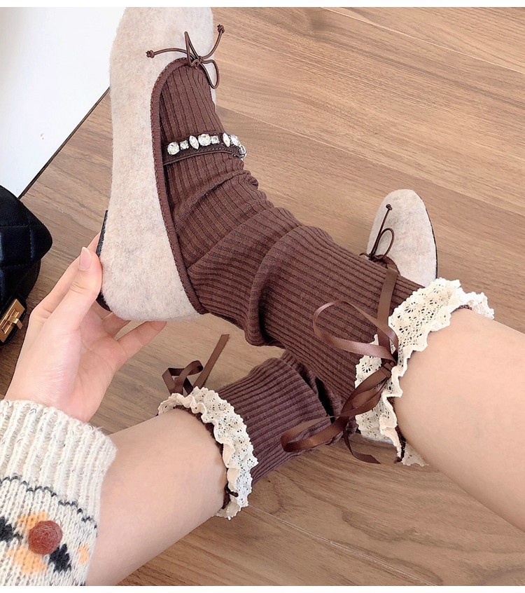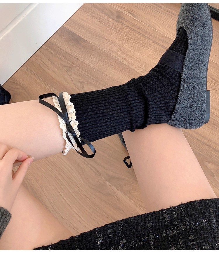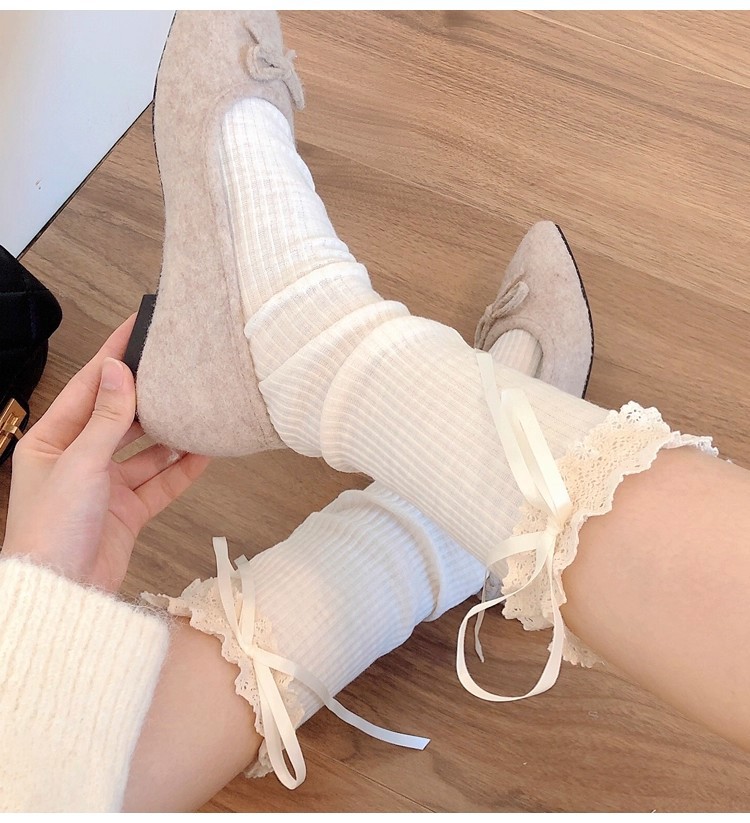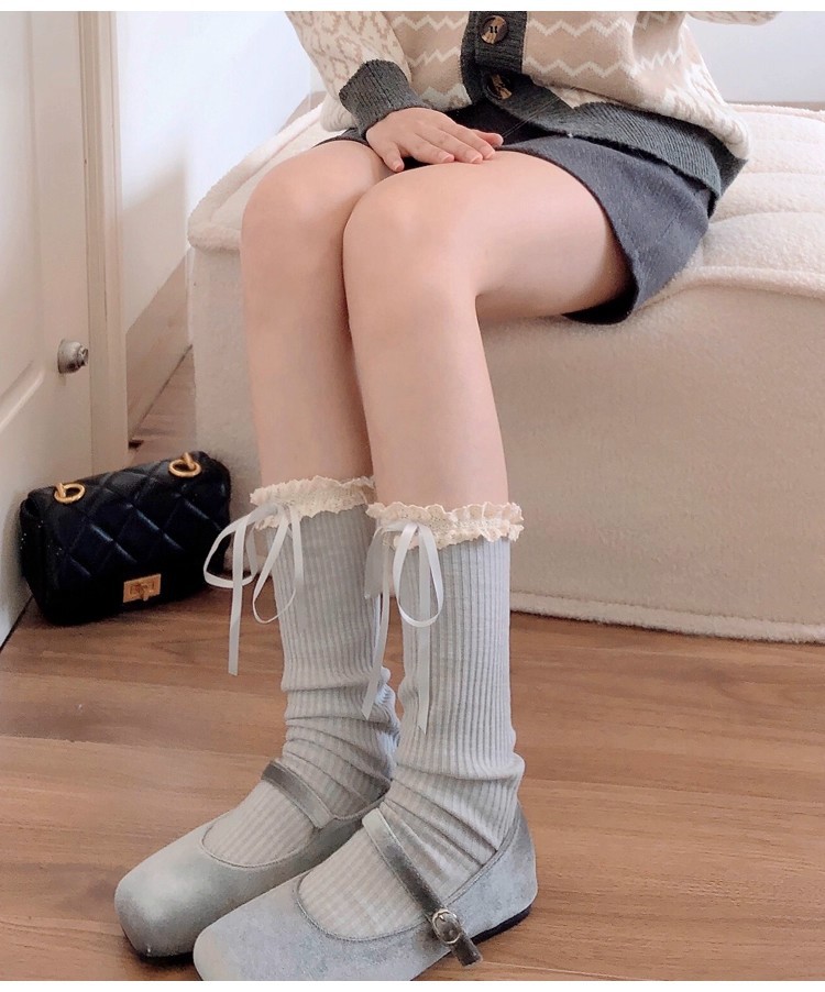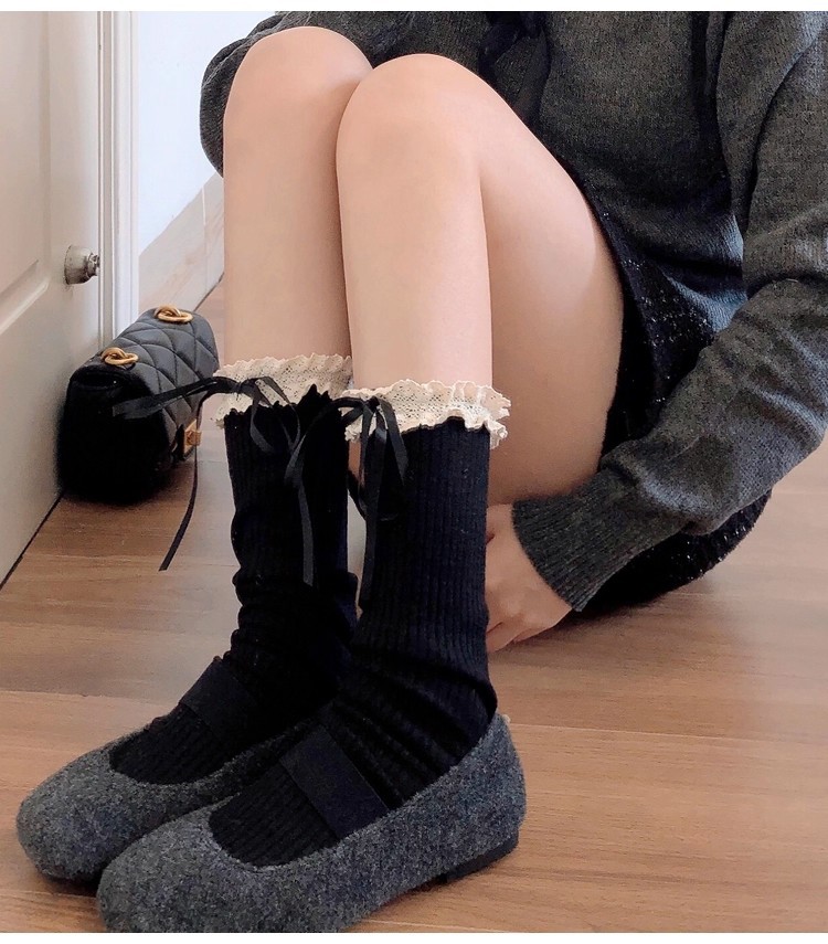 Calcetines de pantorrilla de encaje blanco para mujeres otoño y invierno gruesas calcetines de pila gris mediana calcetines de arco marrón