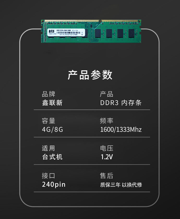 Xinlian nuevo nuevo ordenador de escritorio DDR3 memoria 8G única 1600MHz completa compatibilidad única