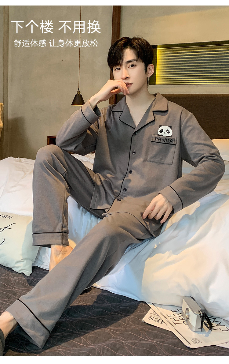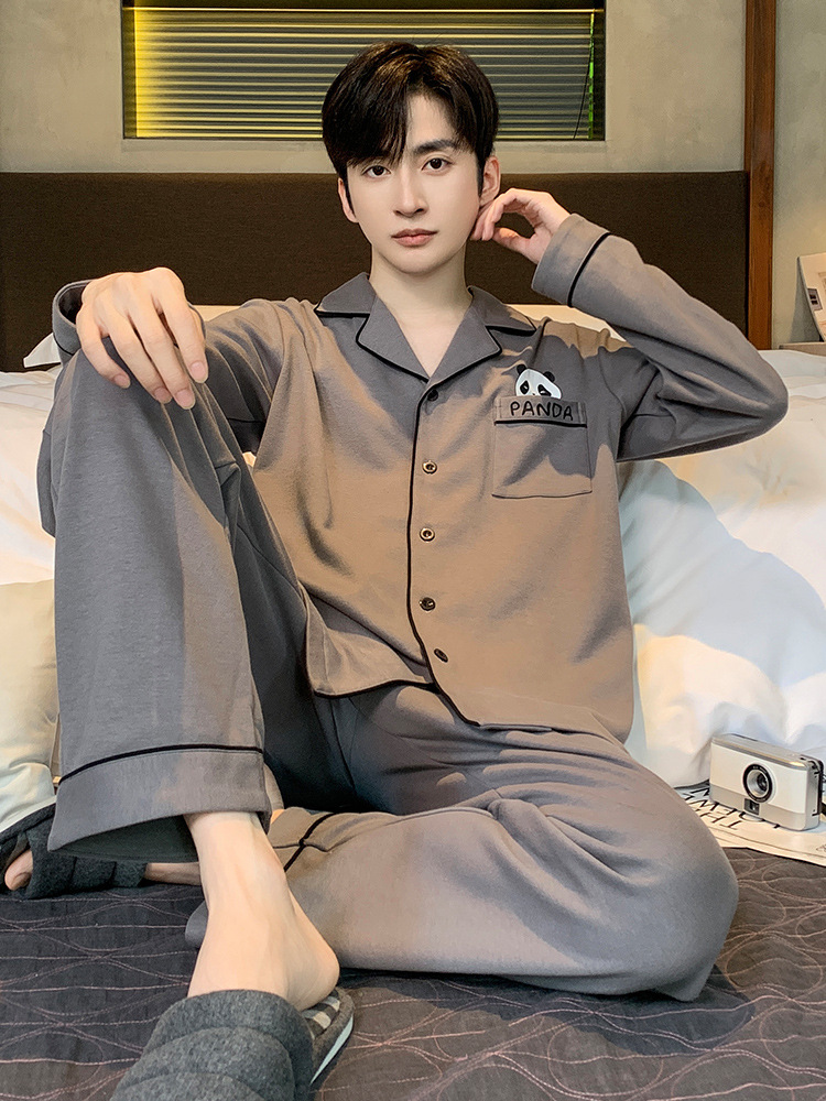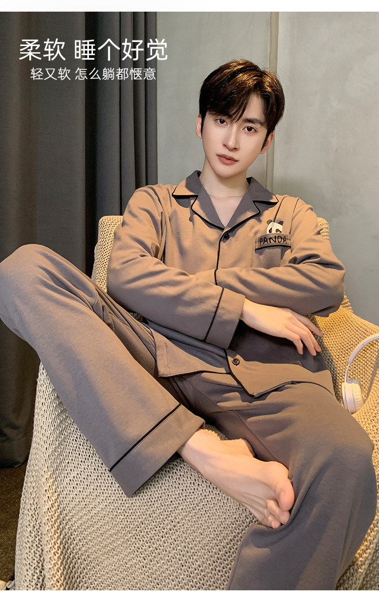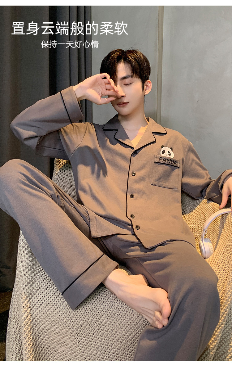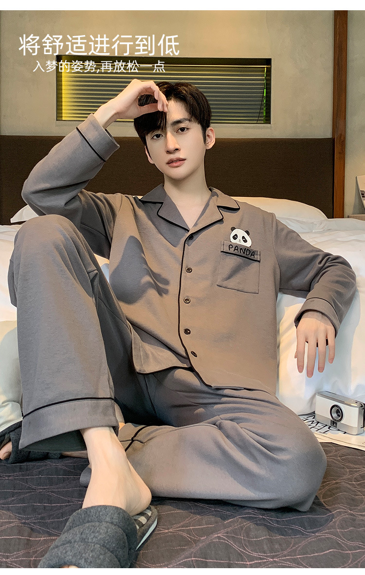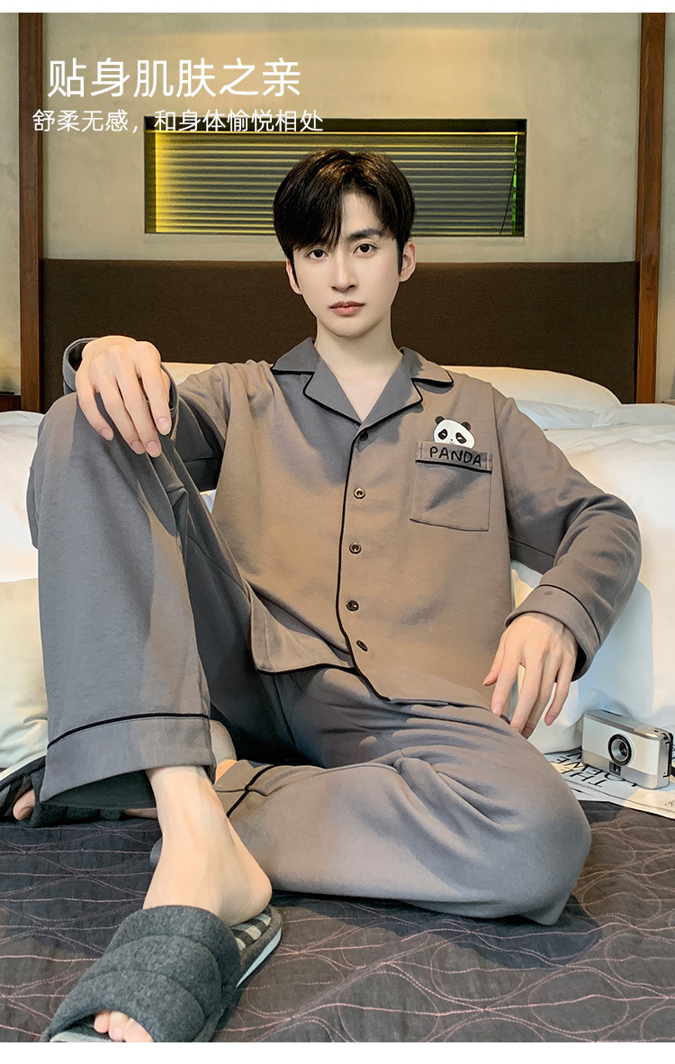 Pijamas de hombre cuidadosamente seleccionados, primavera y otoño, algodón puro, manga larga, nuevo estilo suelto, talla grande, los jóvenes pueden usar ropa de hogar