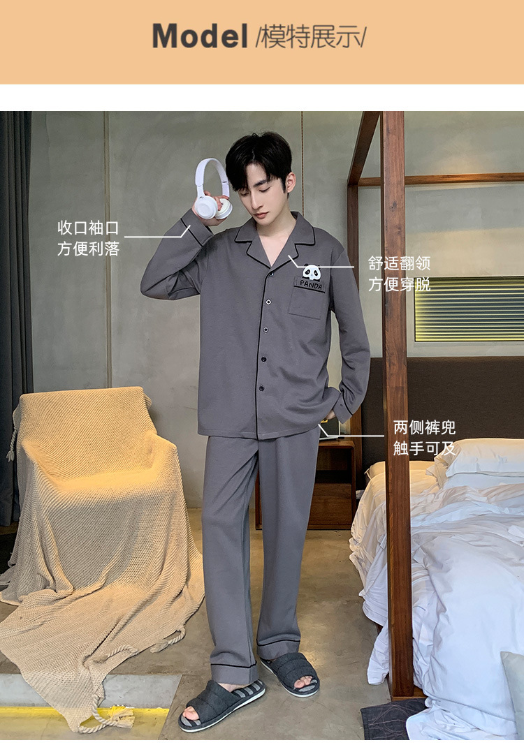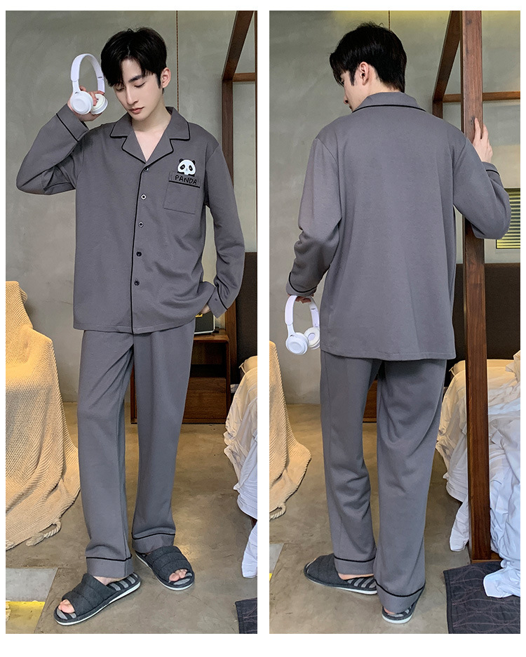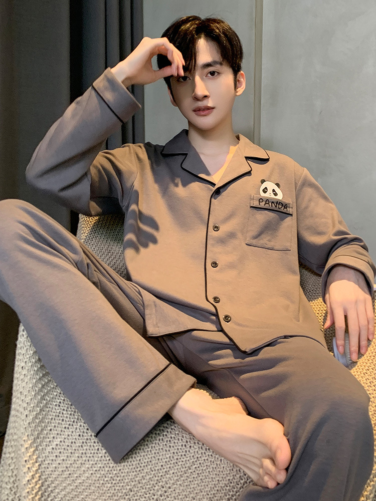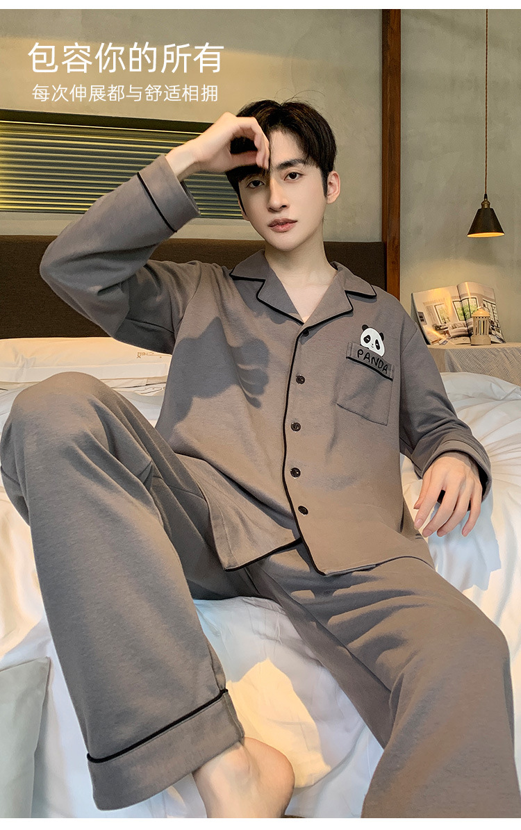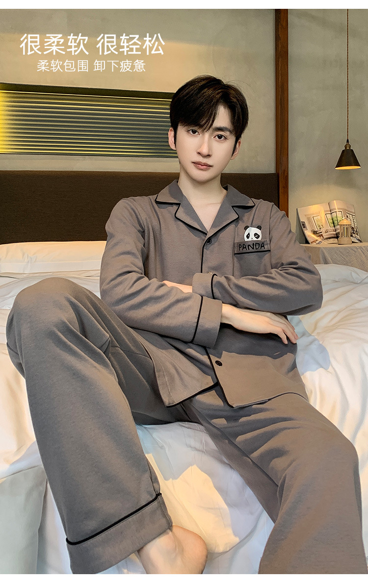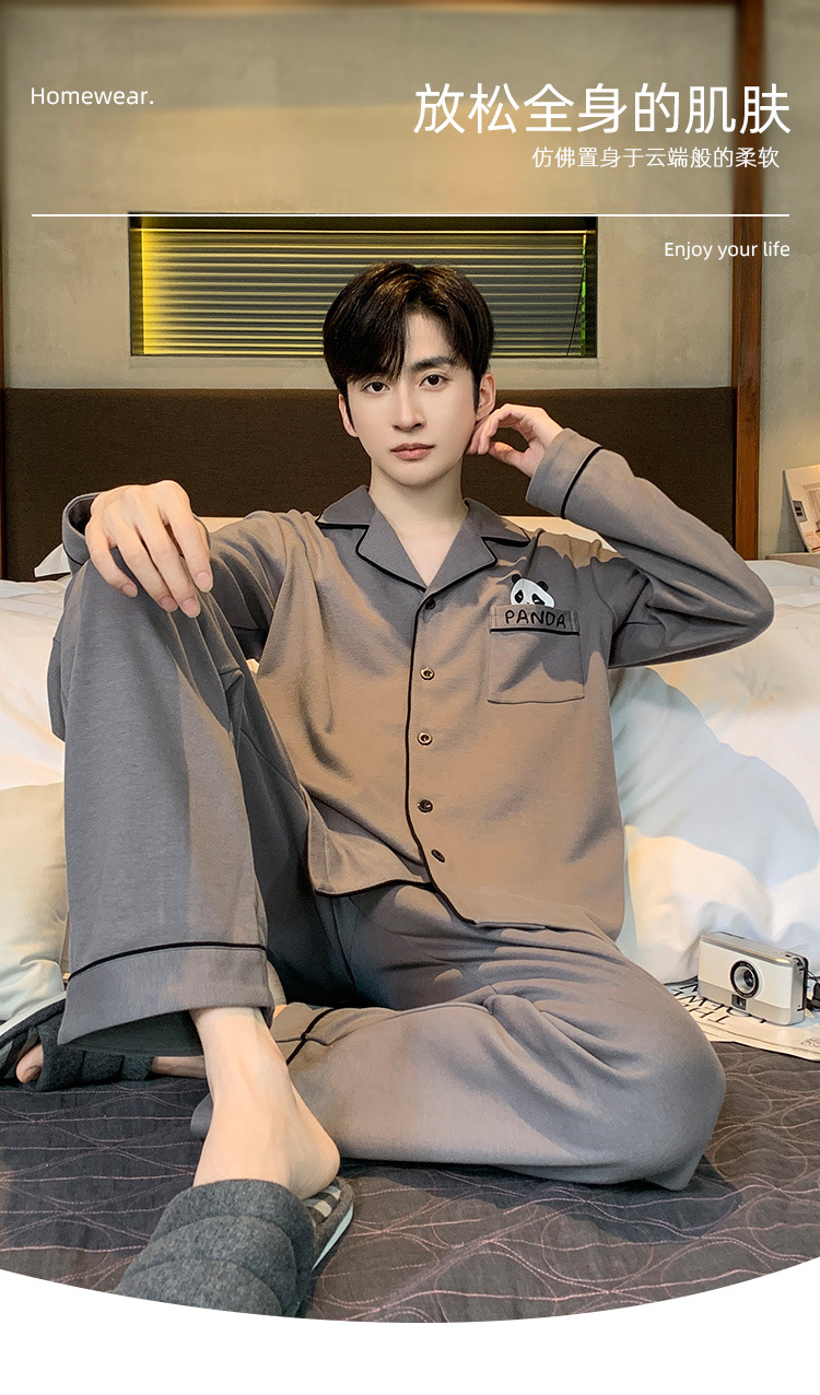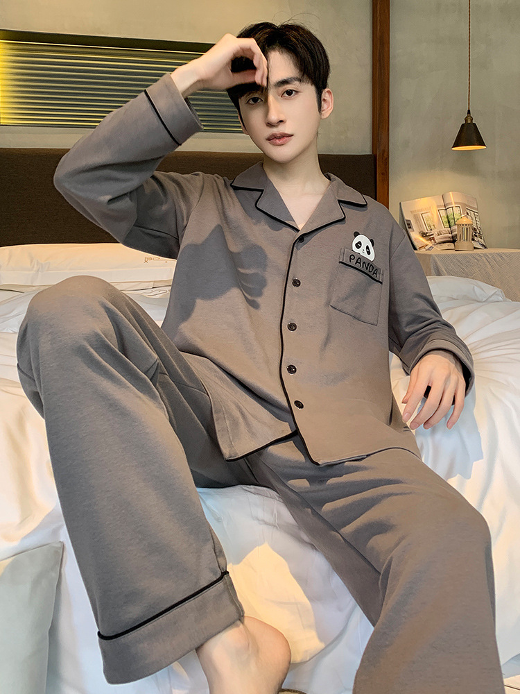 Pijamas de hombre cuidadosamente seleccionados, primavera y otoño, algodón puro, manga larga, nuevo estilo suelto, talla grande, los jóvenes pueden usar ropa de hogar