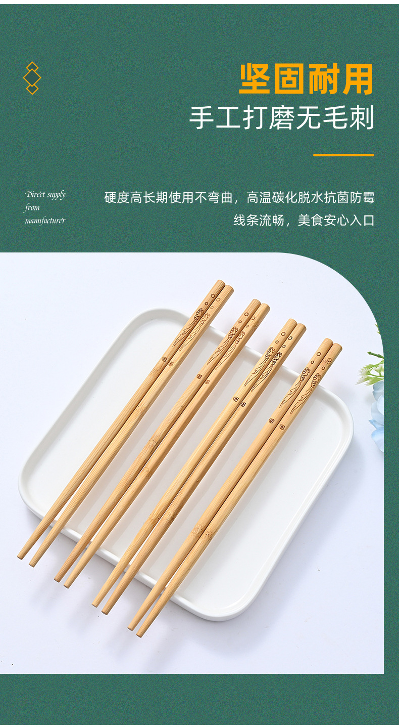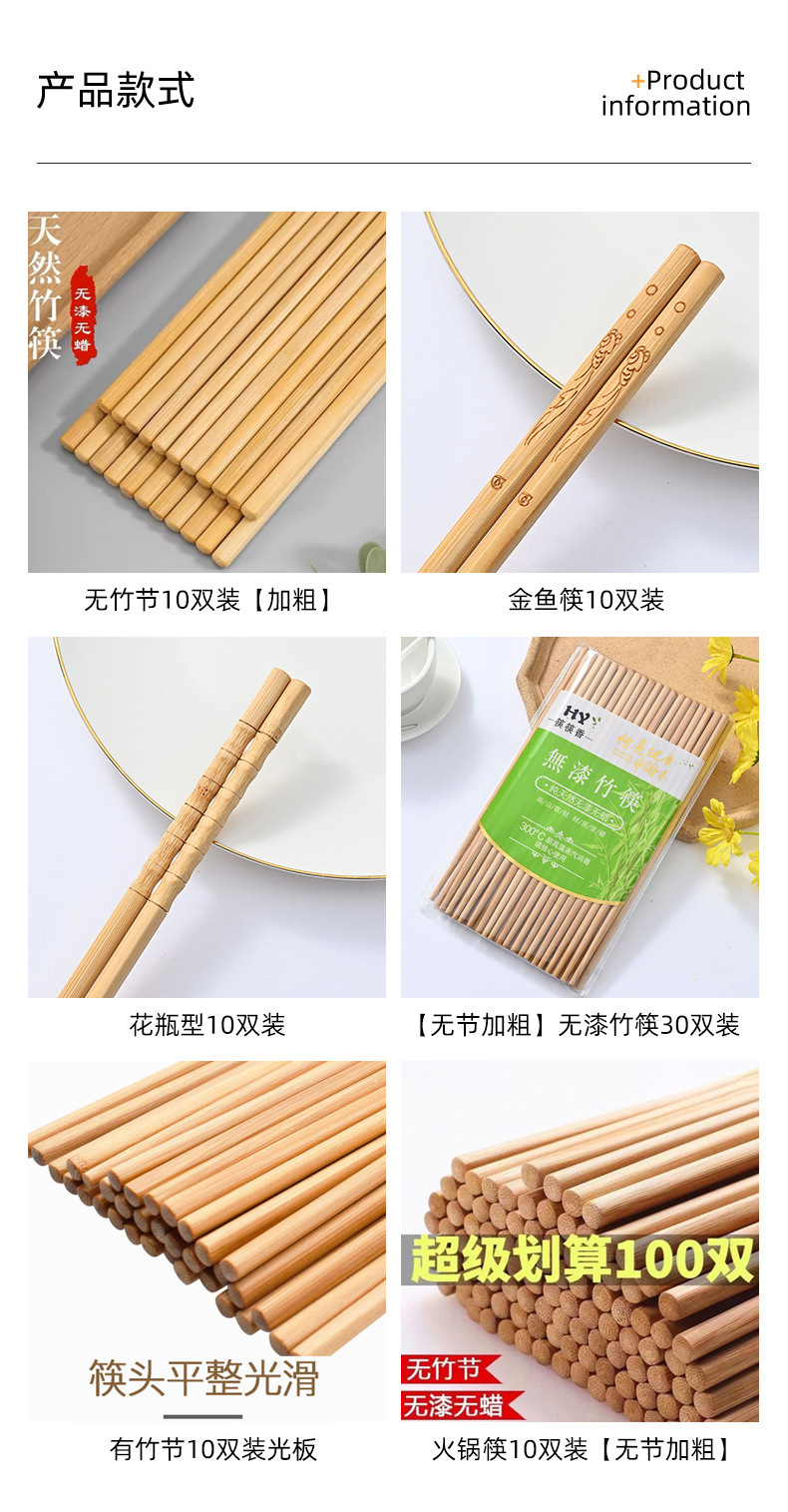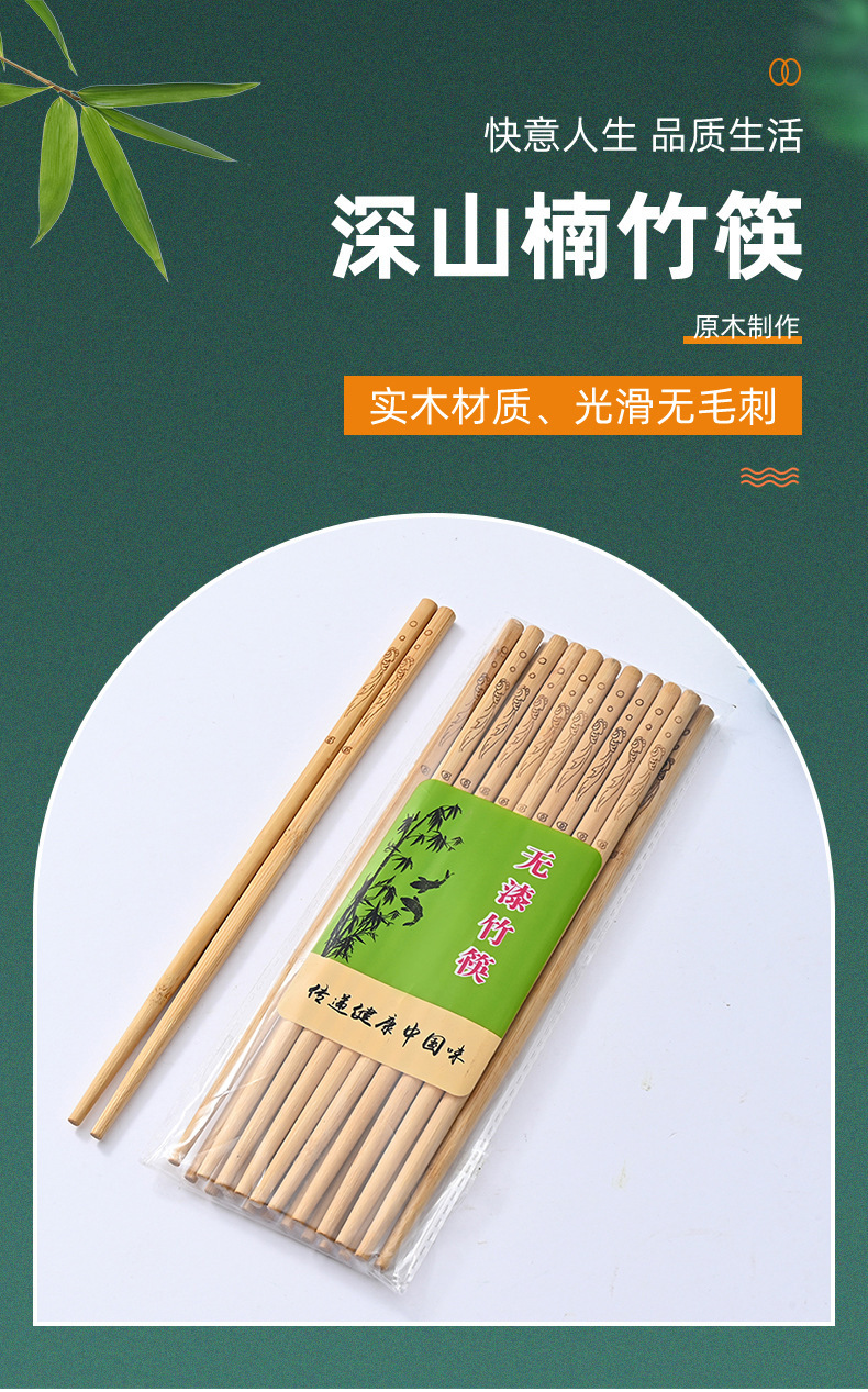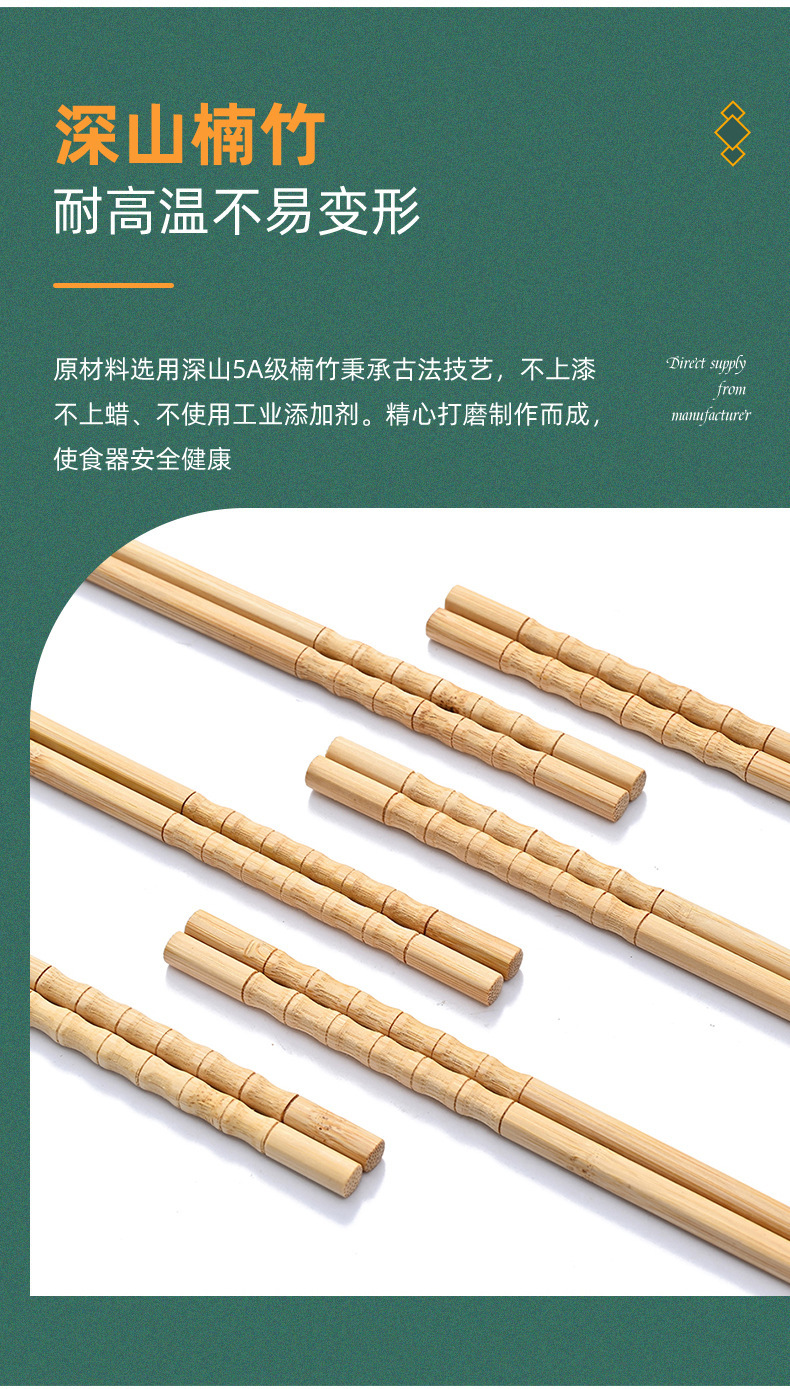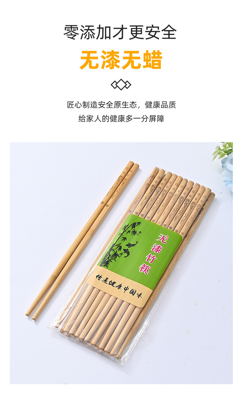 Palillos de bambú, palillos domésticos, vajilla antideslizante antimoho sin pintura, sin cera, palillos de bambú, una persona, 10 pares de alto valor
