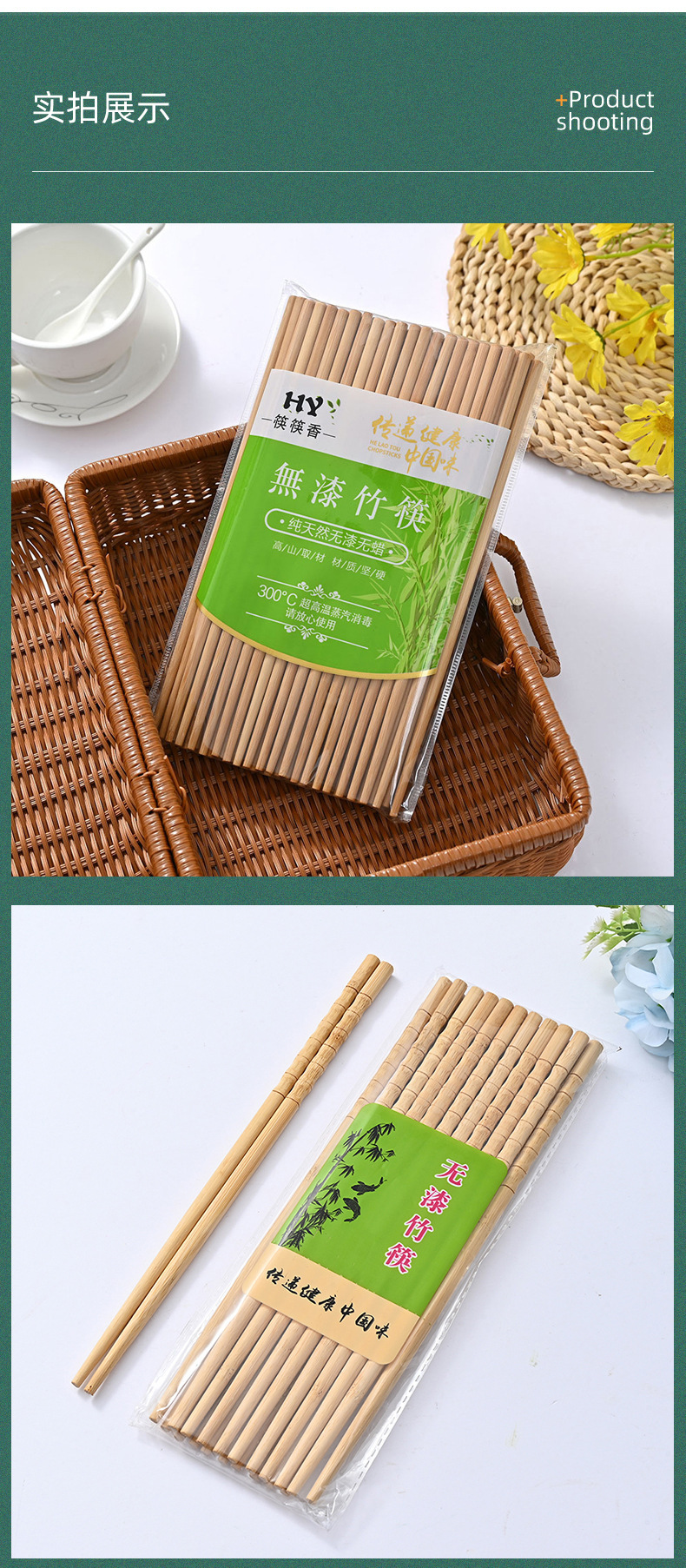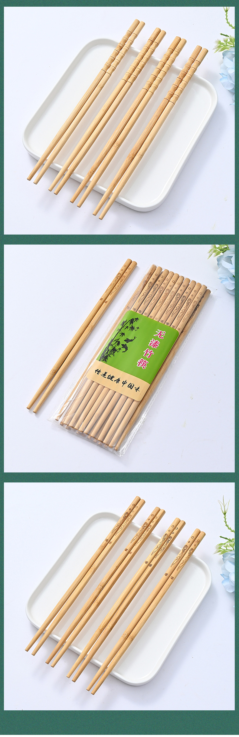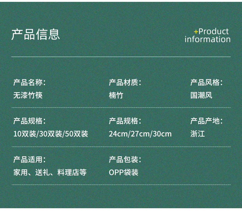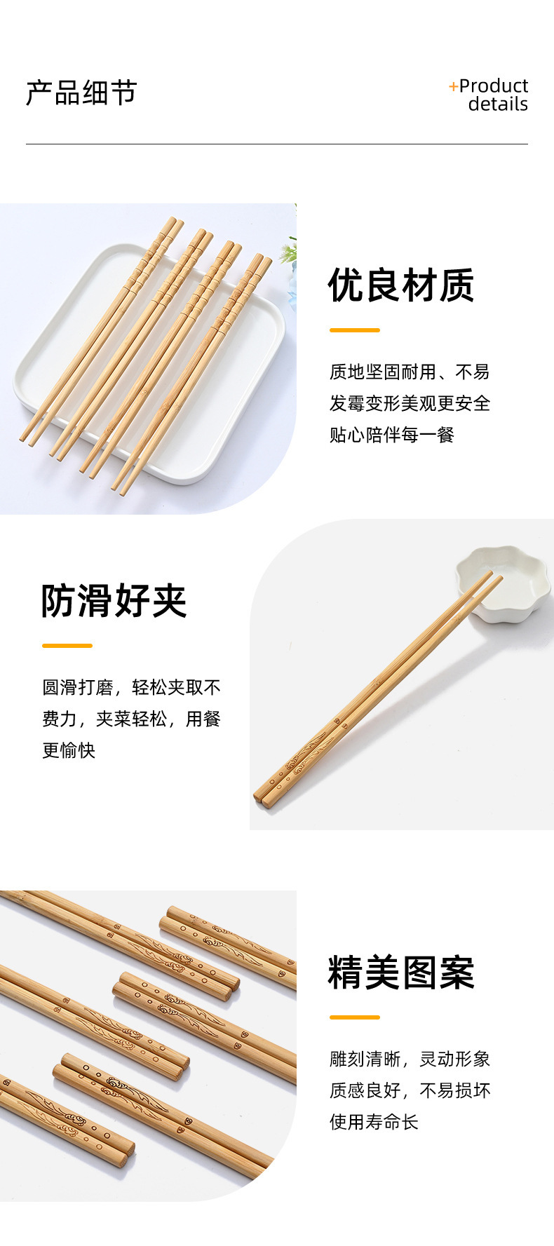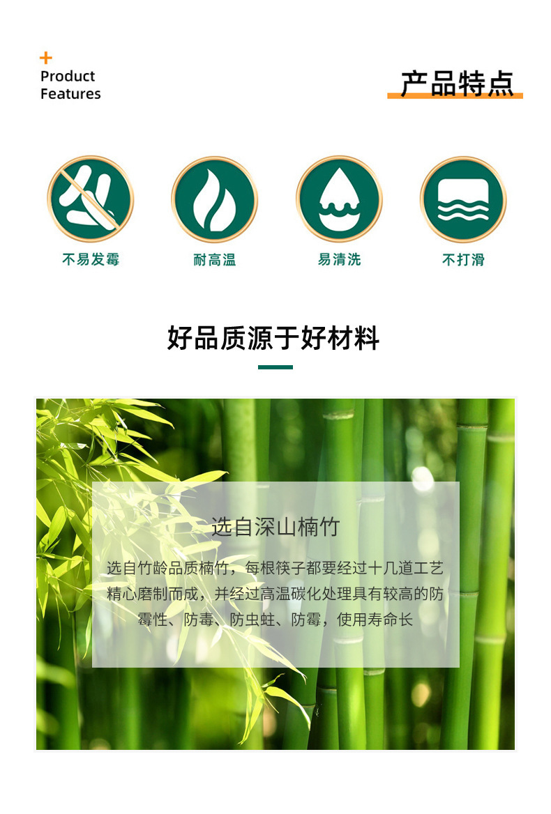 Palillos de bambú, palillos domésticos, vajilla antideslizante antimoho sin pintura, sin cera, palillos de bambú, una persona, 10 pares de alto valor